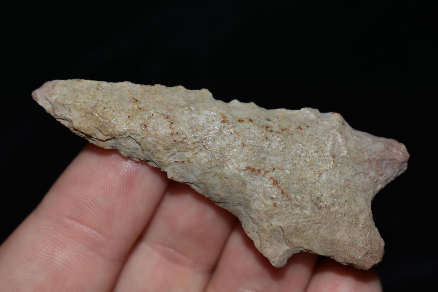 2 3/8" Serrated Stemmed Kirk Found in Mo Ex Emanuel, Authentic Native American Arrowhead