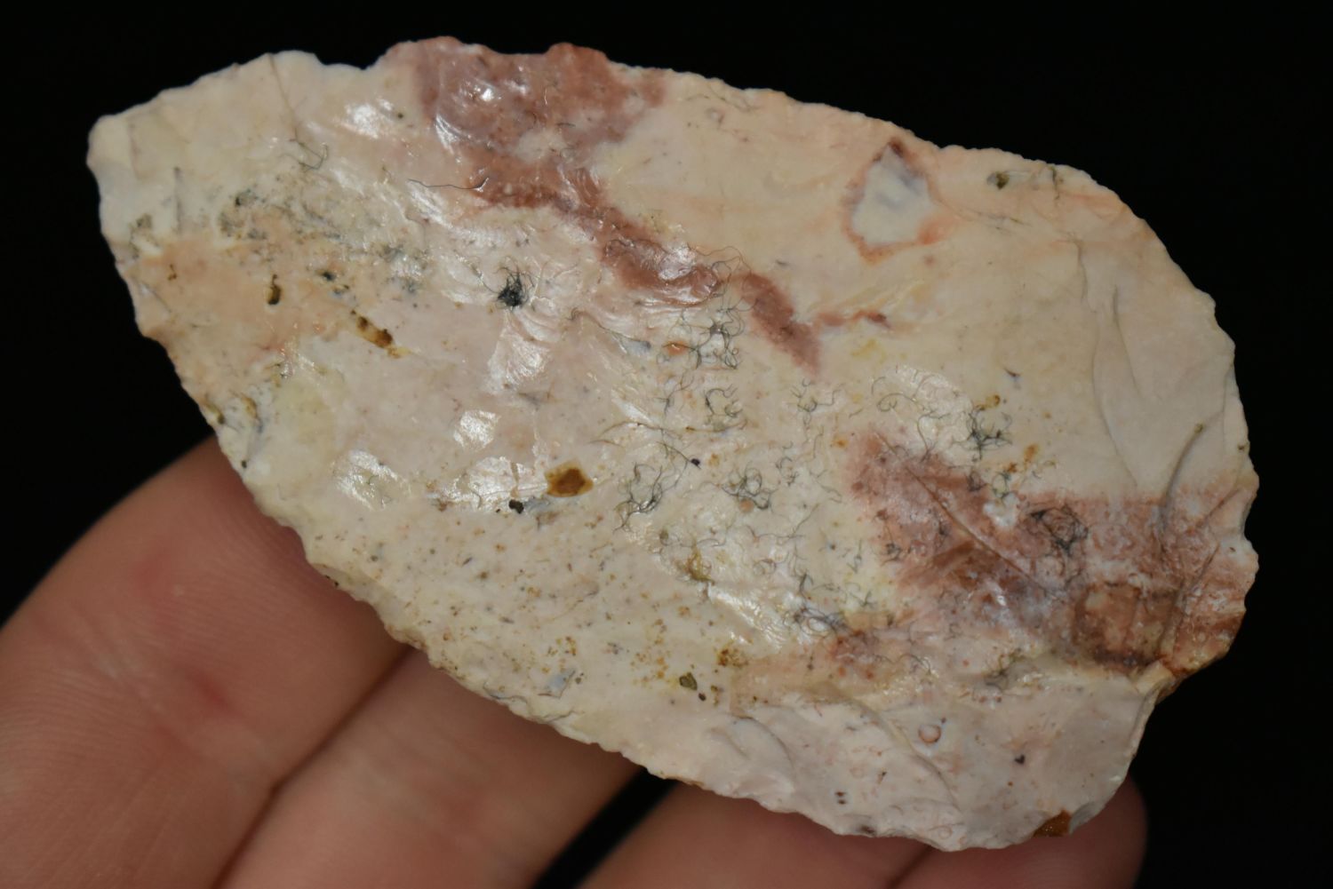 3 1/8" COLORFUL HOPEWELL NORTH BLADE FOUND IN LINCOLN COUNTY MISSOURI, INDIAN ARROWHEAD, ARTIFACT