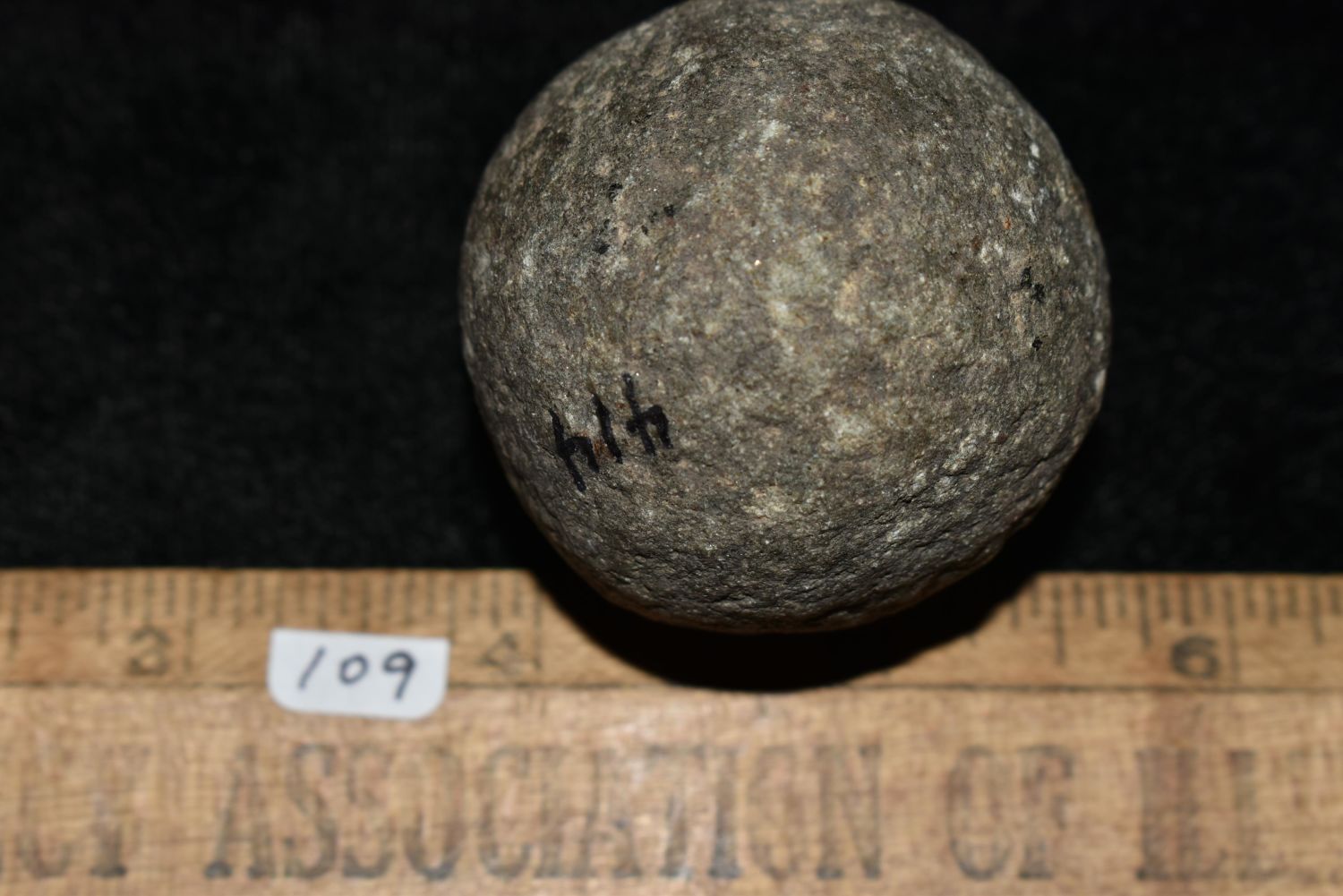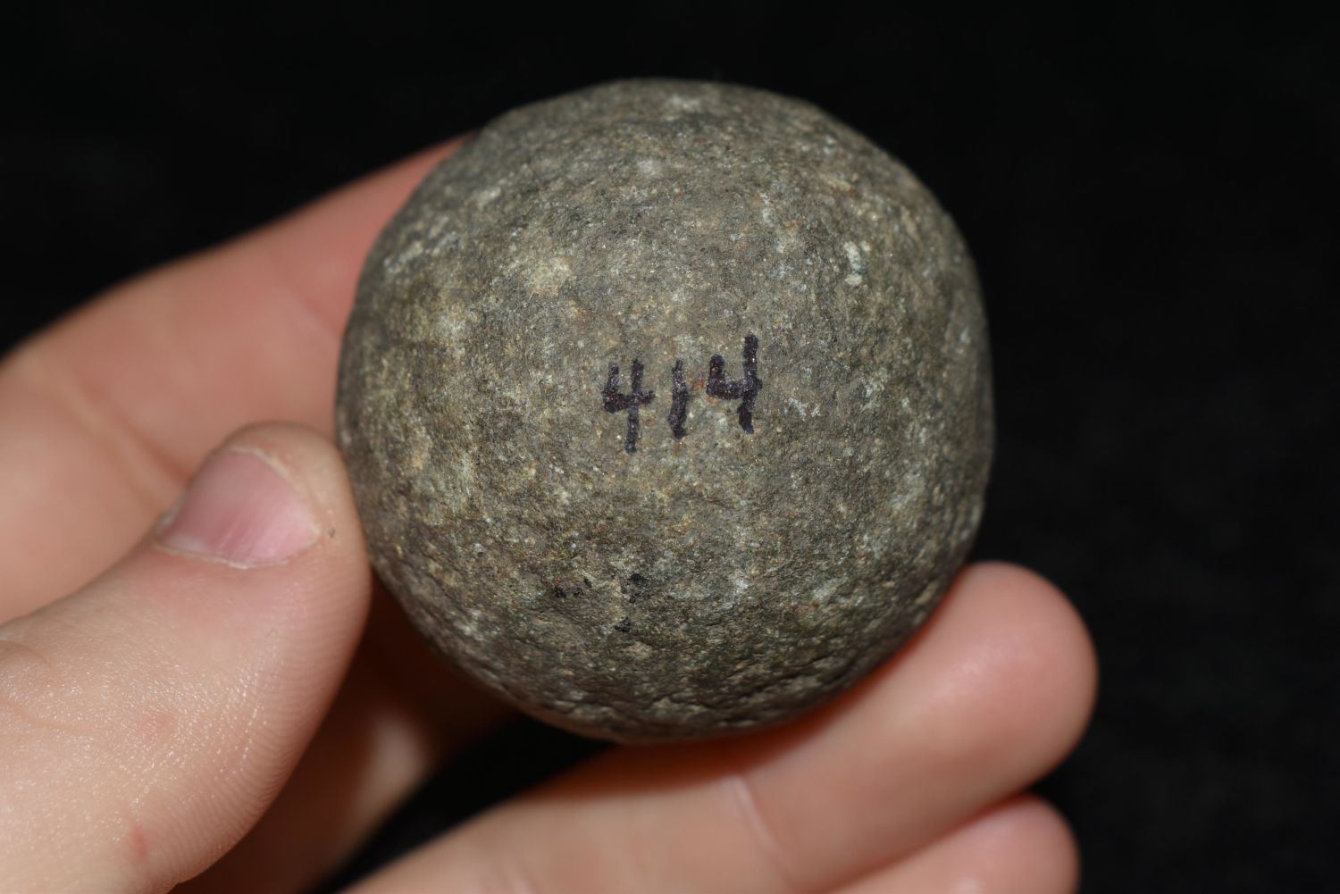 NICE HARDSTONE GAME BALL, 1 3/4" WIDE, VERY WELL SHAPED EXAMPLE, FOUND IN SOUTHERN MISSOURI