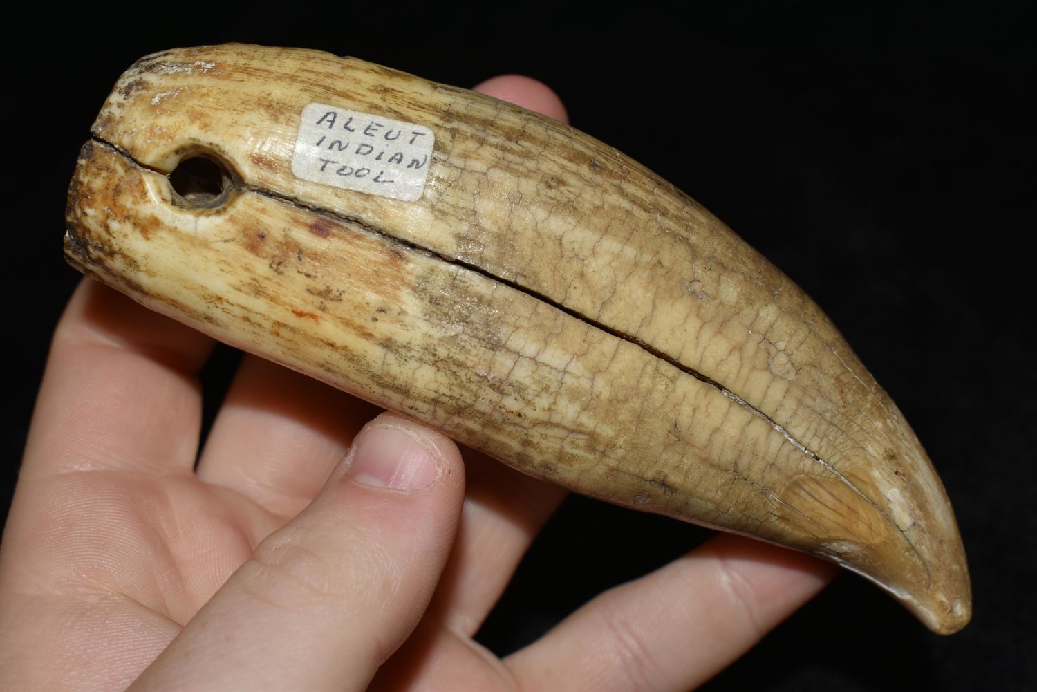 HUGE 5" WHALE TOOTH PENDANT FROM ALASKA, NICE POLISH AND PATINA