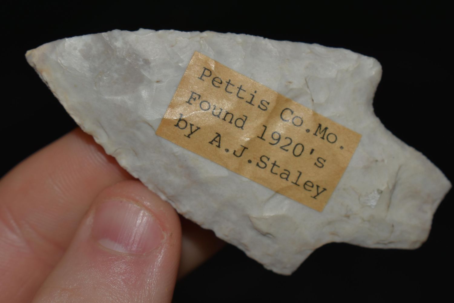 2 7/8" DICKSON, MOTLEY COA, FOUND BY A.J. STALEY IN PETTIS COUNTY MISSOURI IN THE 1920’S, NICE EXAMPLE