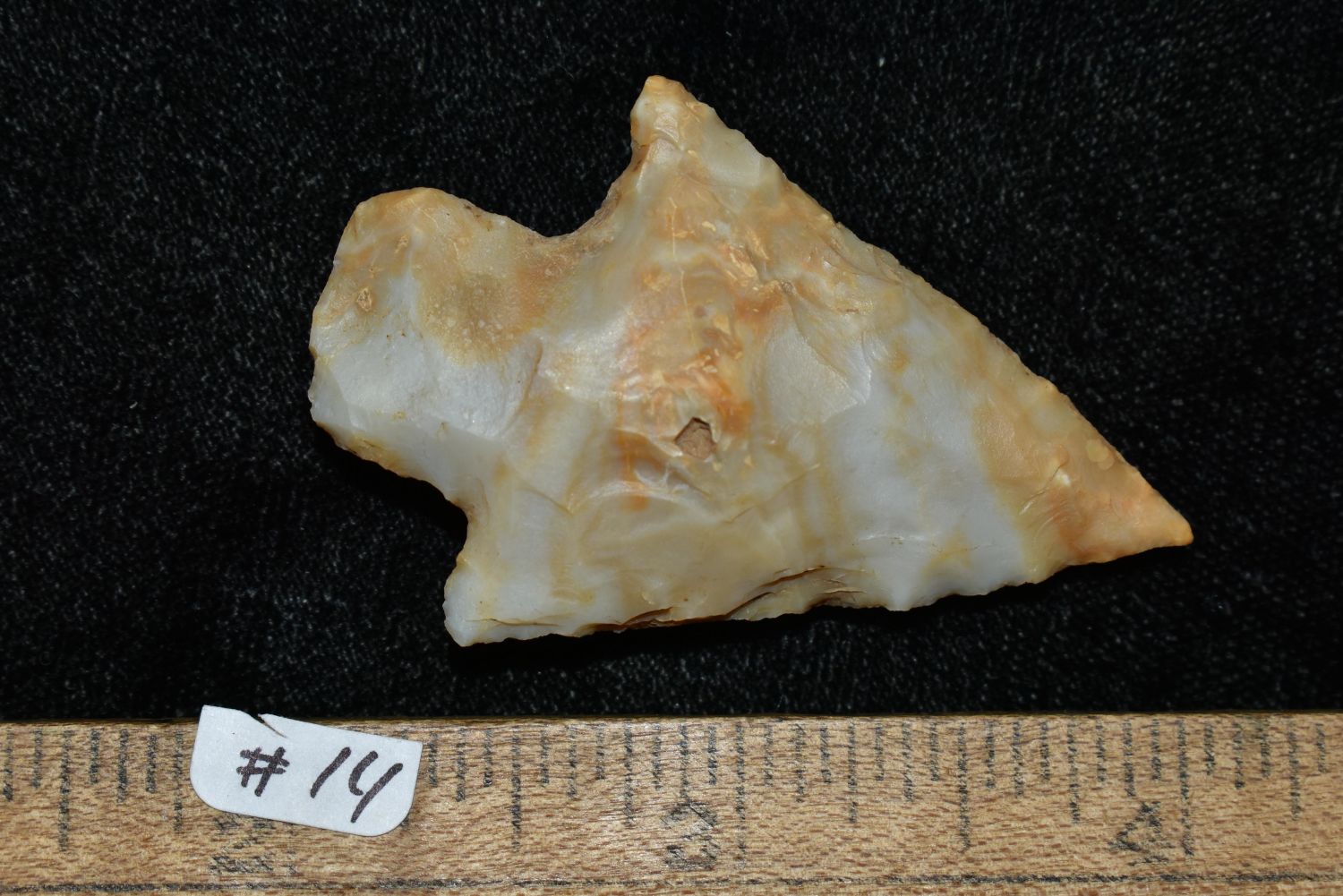 2" HIGHLY TRANSLUCENT ADENA FOUND IN LINCOLN COUNTY MISSOURI, INDIAN ARROWHEAD, ARTIFACT