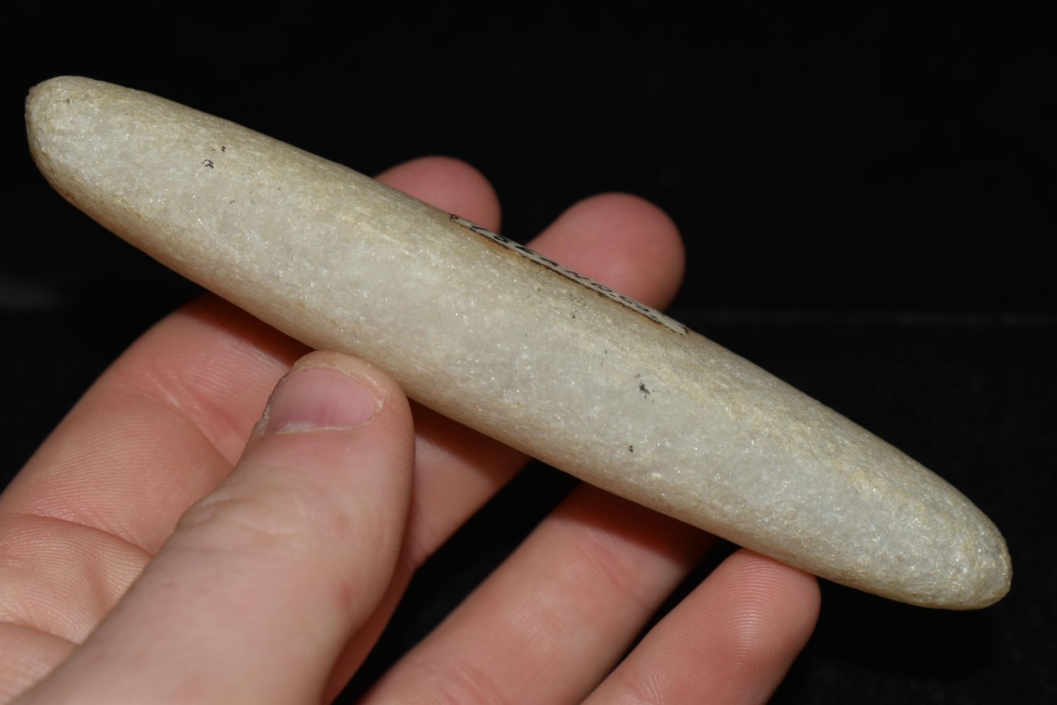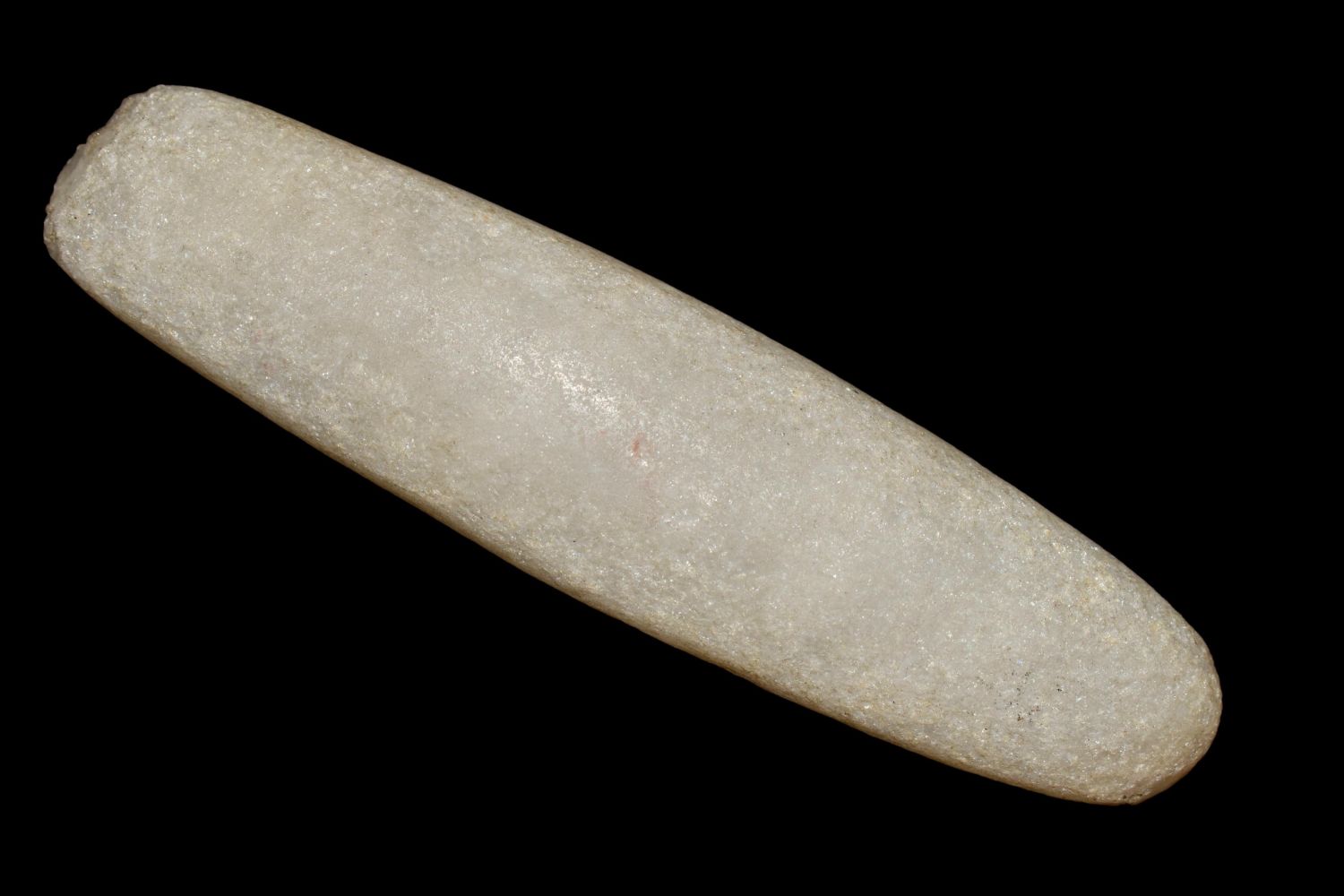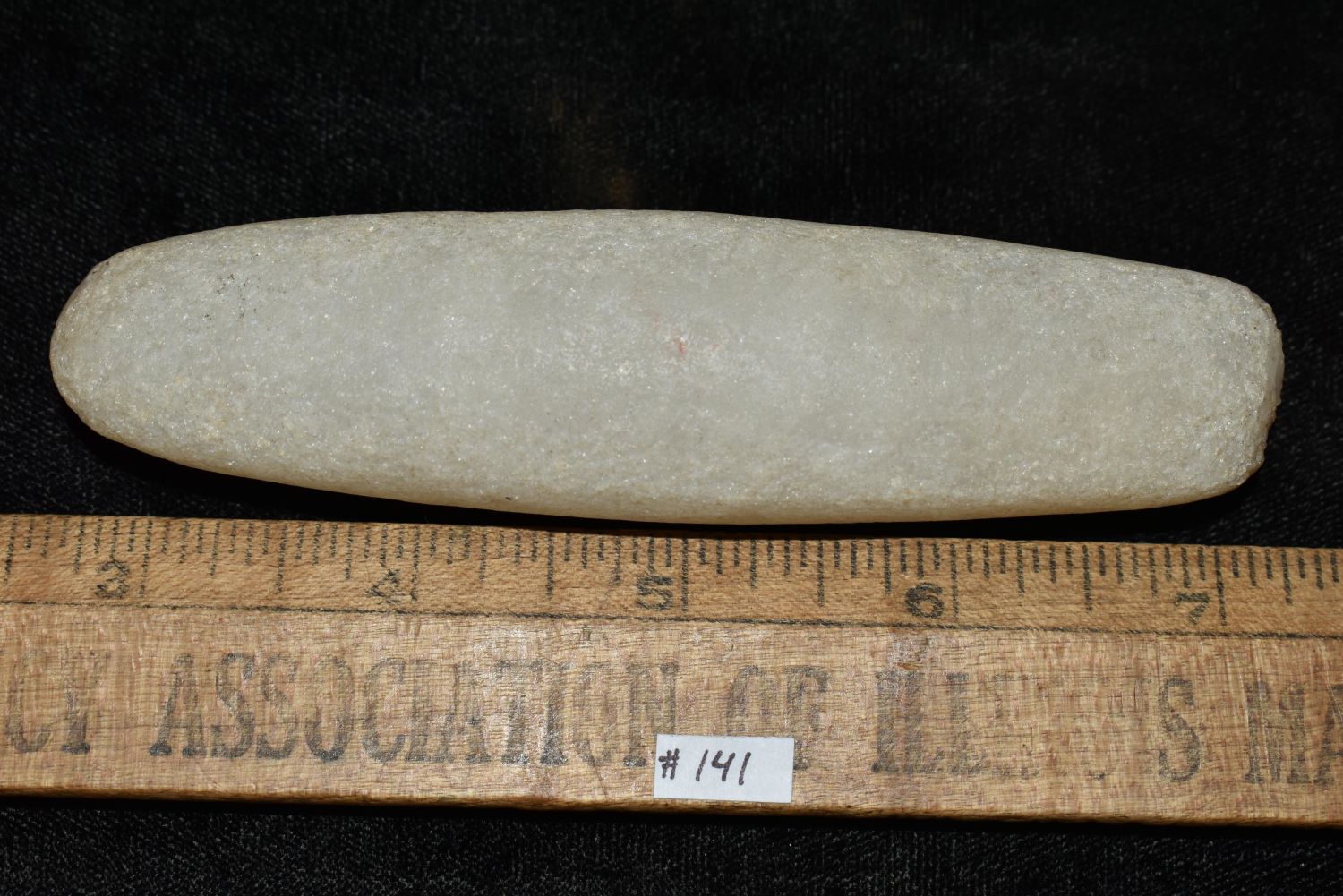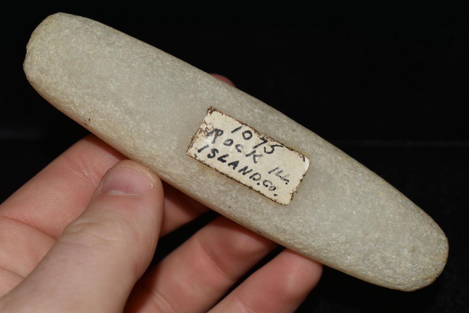 RARE QUARTZ BAR WEIGHT, DICKEY COA, FOUND IN ROCK ISLAND COUNTY ILLINOIS, 4 9/16" LONG, VERY WELL SHAPED AND NICELY POLISHED
