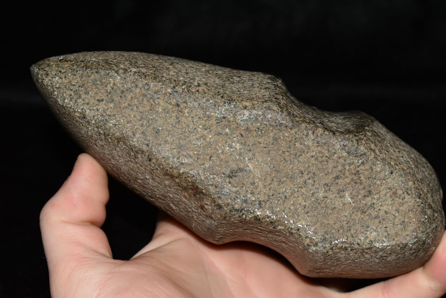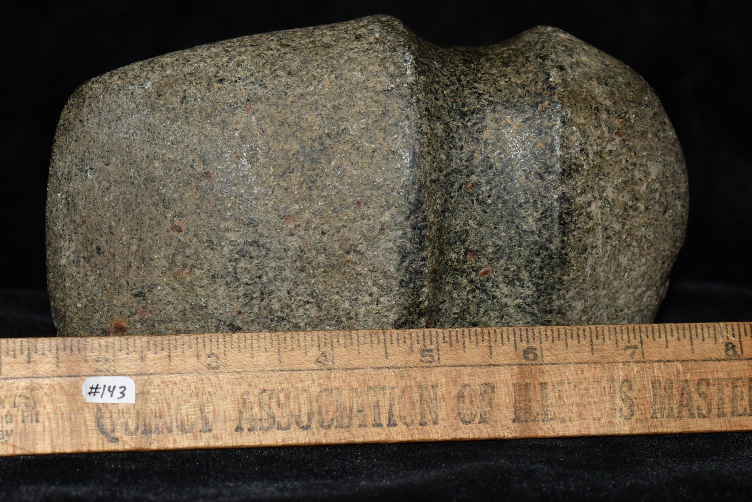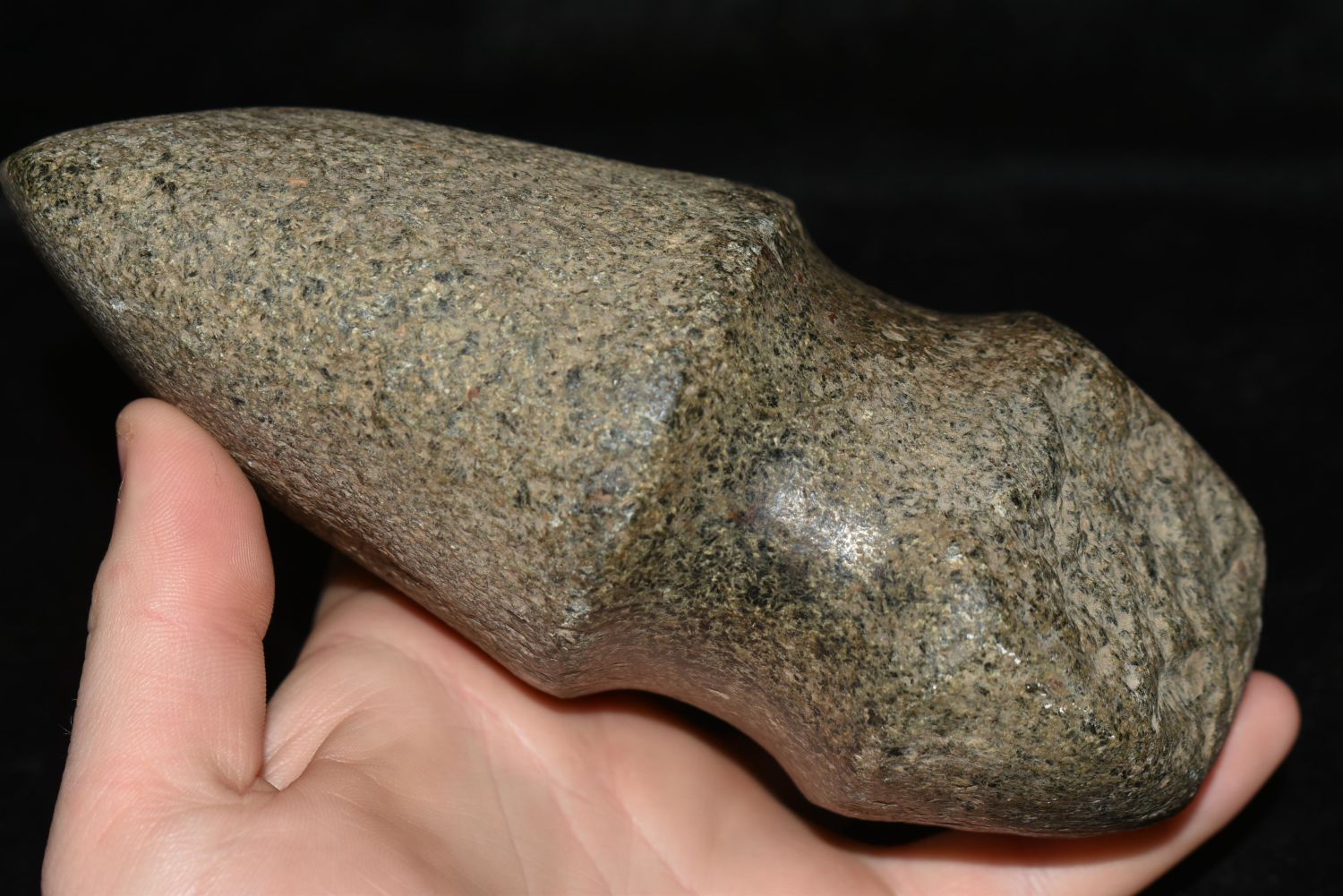 6 1/2" LONG 3/4 GROOVE AXE FOUND IN BROWN COUNTY ILLINOIS, STANDS UP NICELY, OLD POLISHED OUT USE WEAR ON POLE
