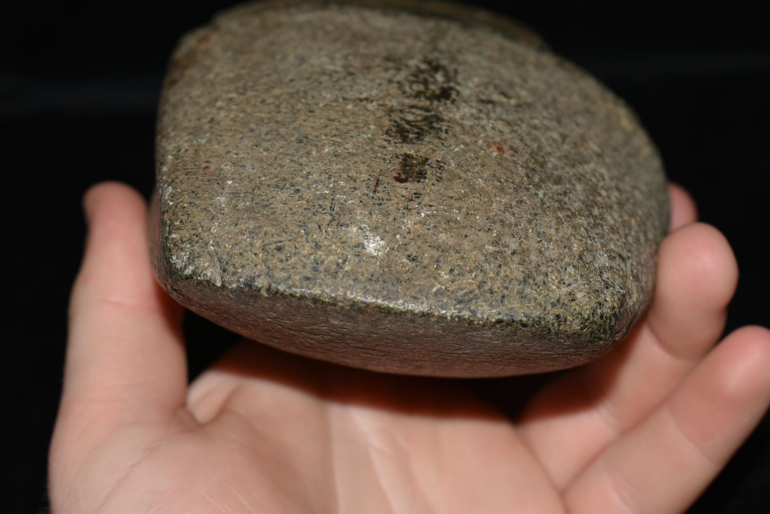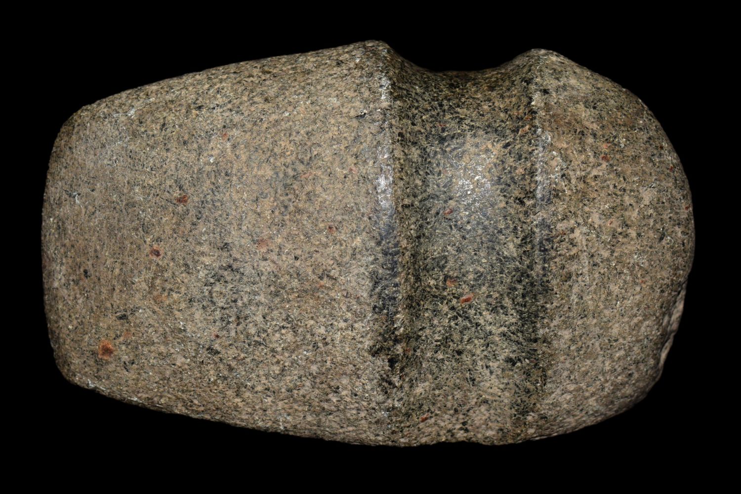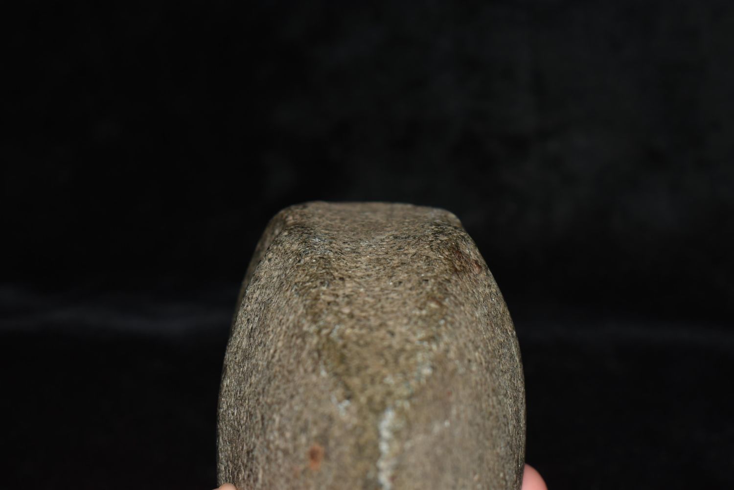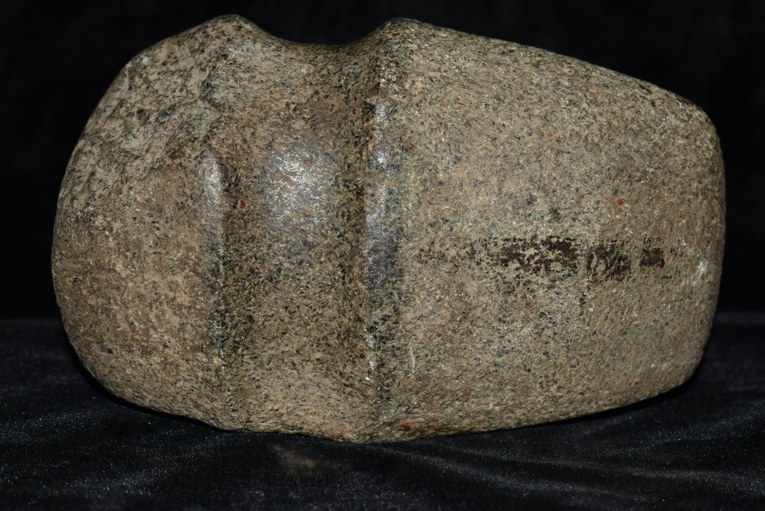 6 1/2" LONG 3/4 GROOVE AXE FOUND IN BROWN COUNTY ILLINOIS, STANDS UP NICELY, OLD POLISHED OUT USE WEAR ON POLE
