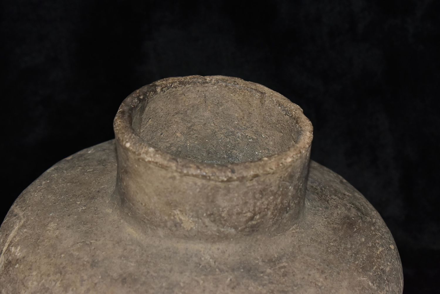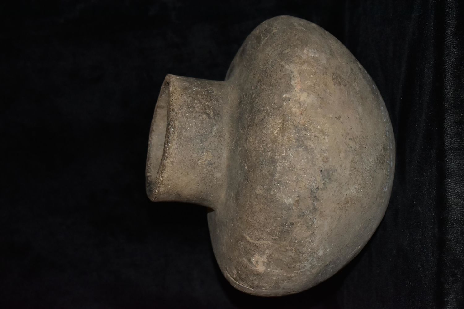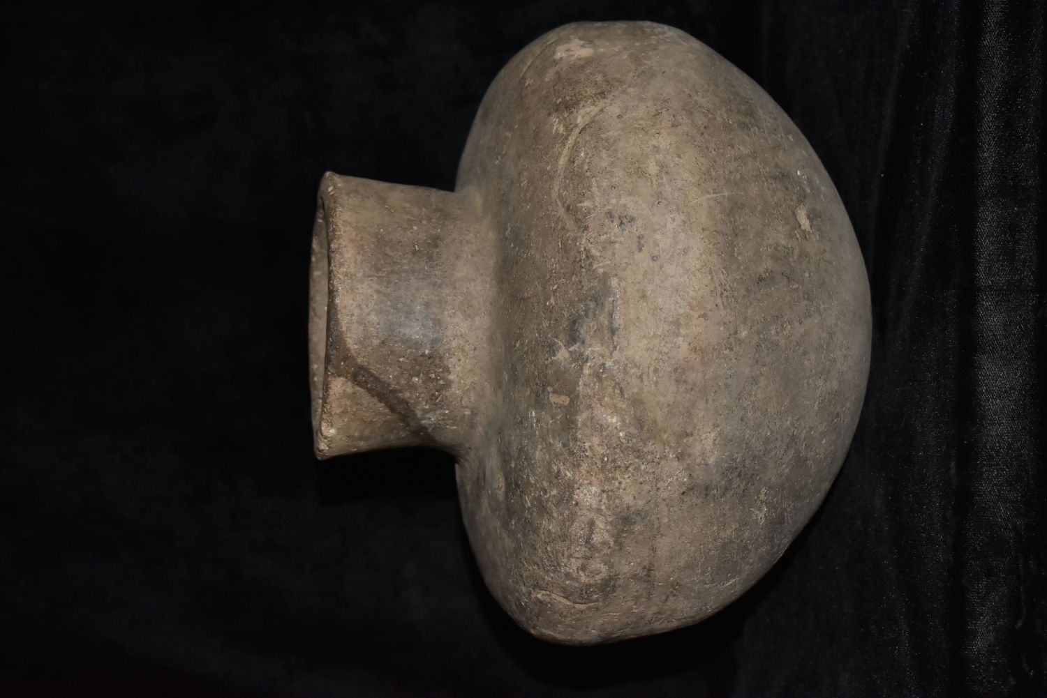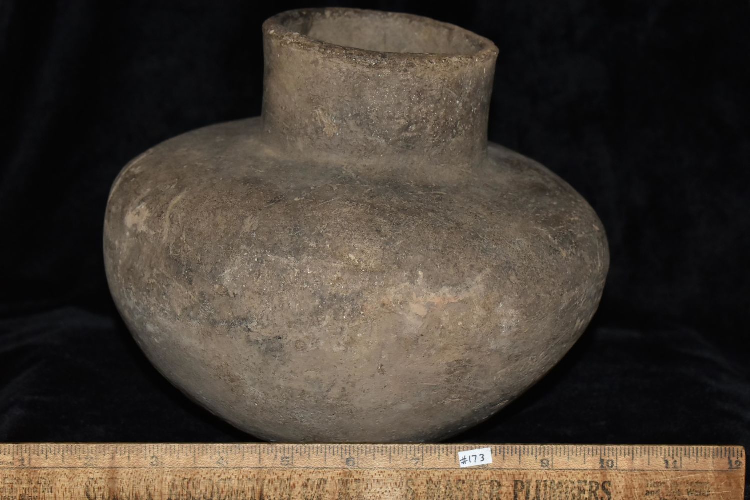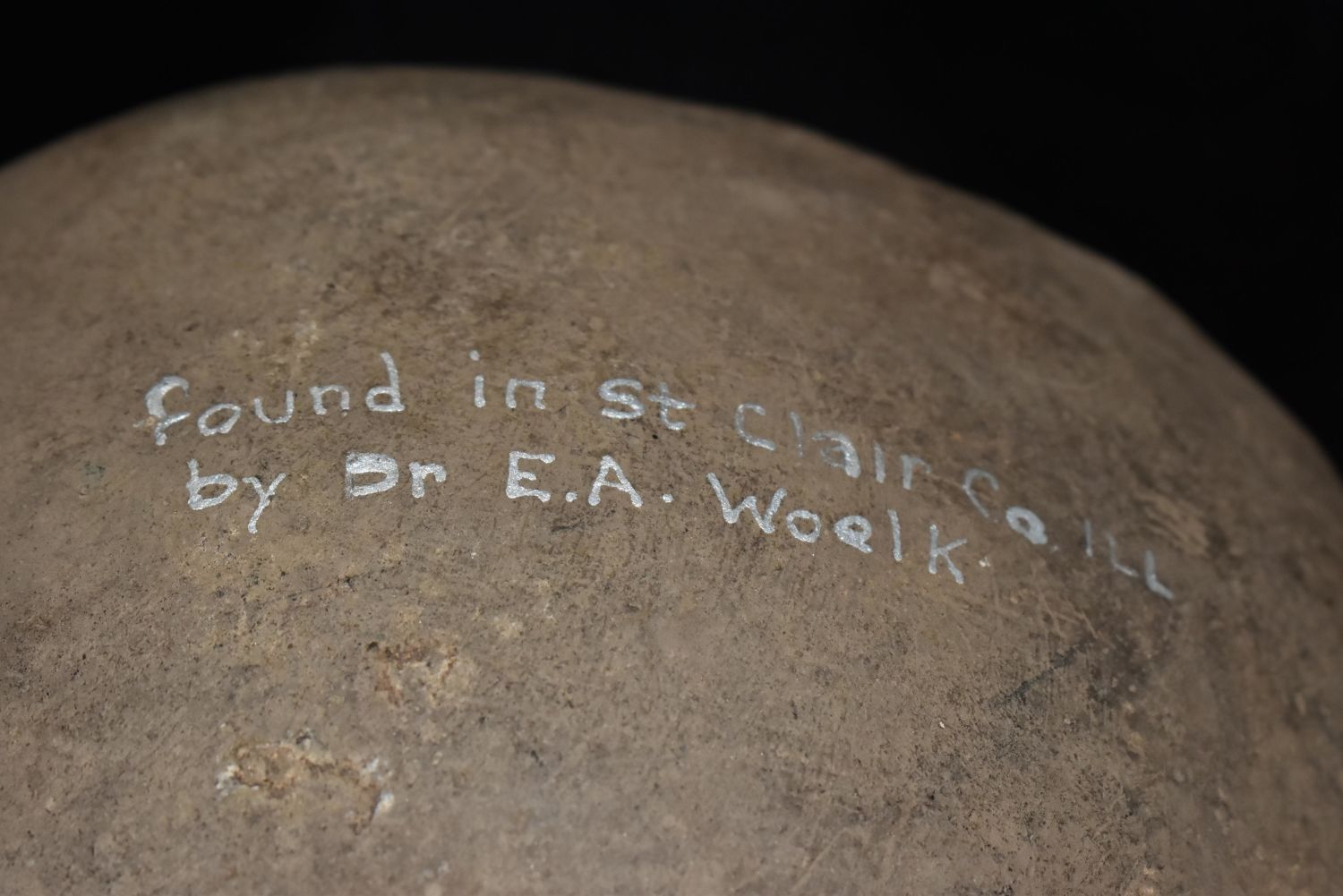 PERFECT CAHOKIA POTTERY BOTTLE FOUND IN ST CLAIR COUNTY ILLINOIS BY DR E.A. WEOLK, MEASURES 7" BY 8", SOLID WITH NO DAMAGE OR REPAIRS