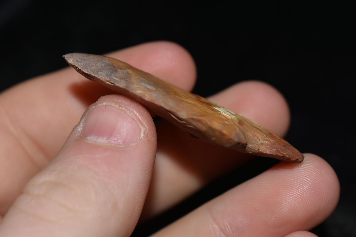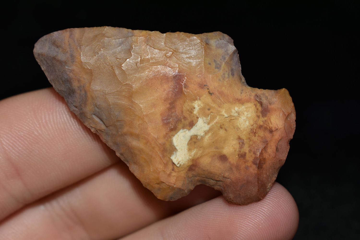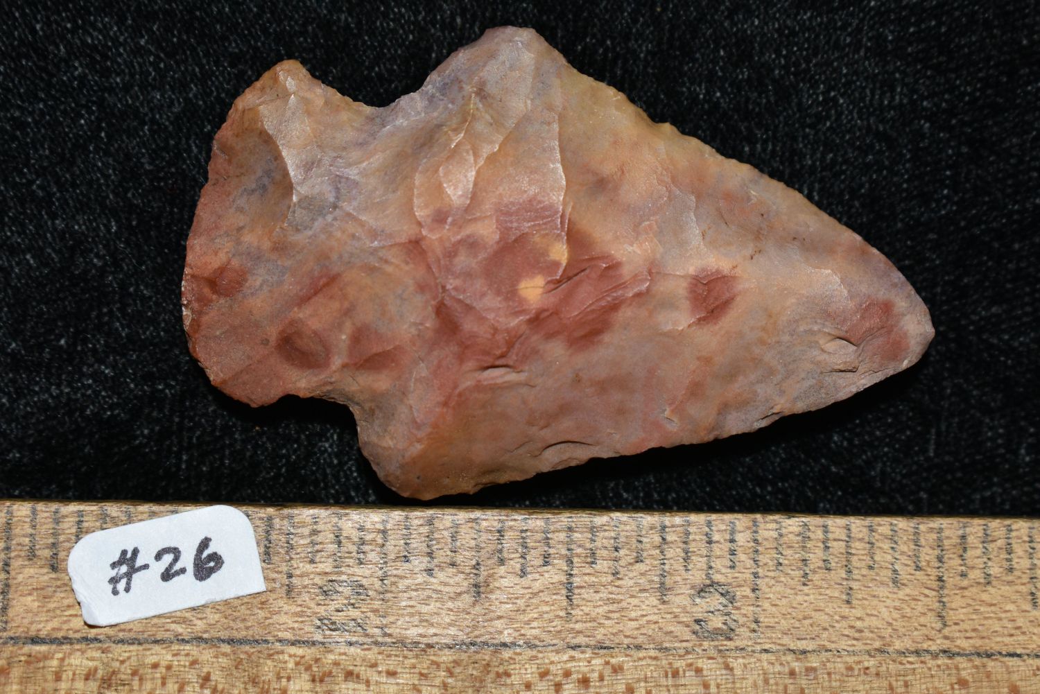 VERY COLORFUL 2" HOPEWELL SNYDERS FOUND IN LINCOLN COUNTY MISSOURI, INDIAN ARROWHEAD, ARTIFACT
