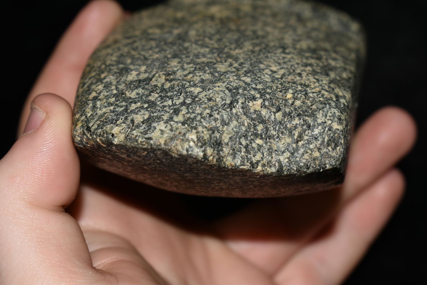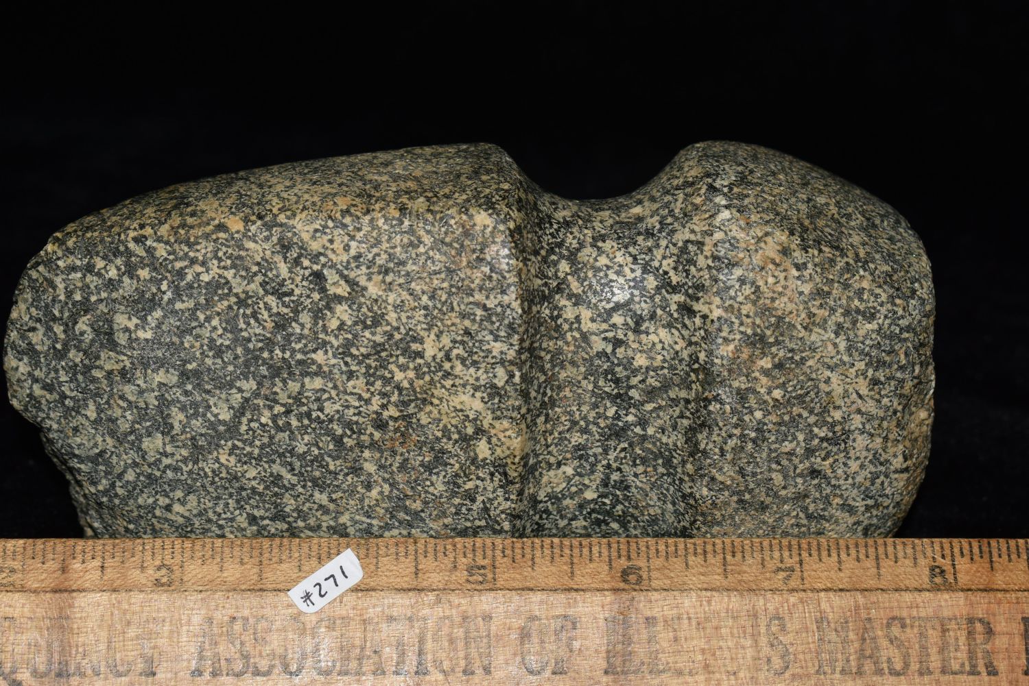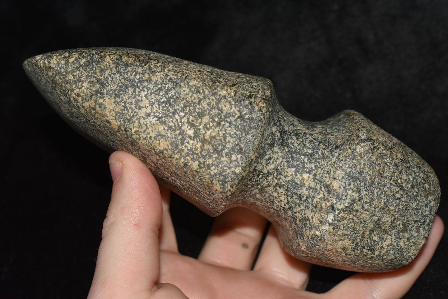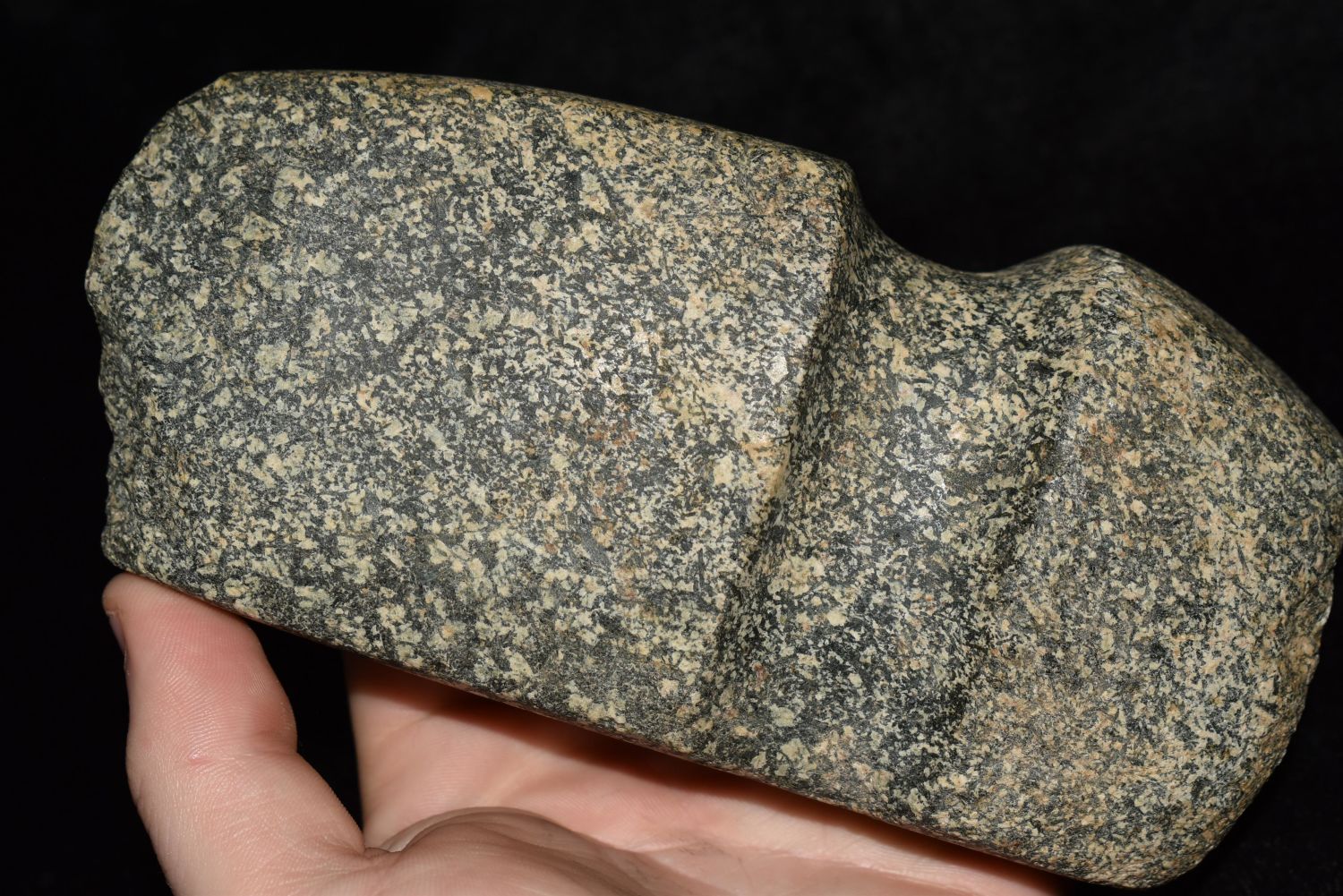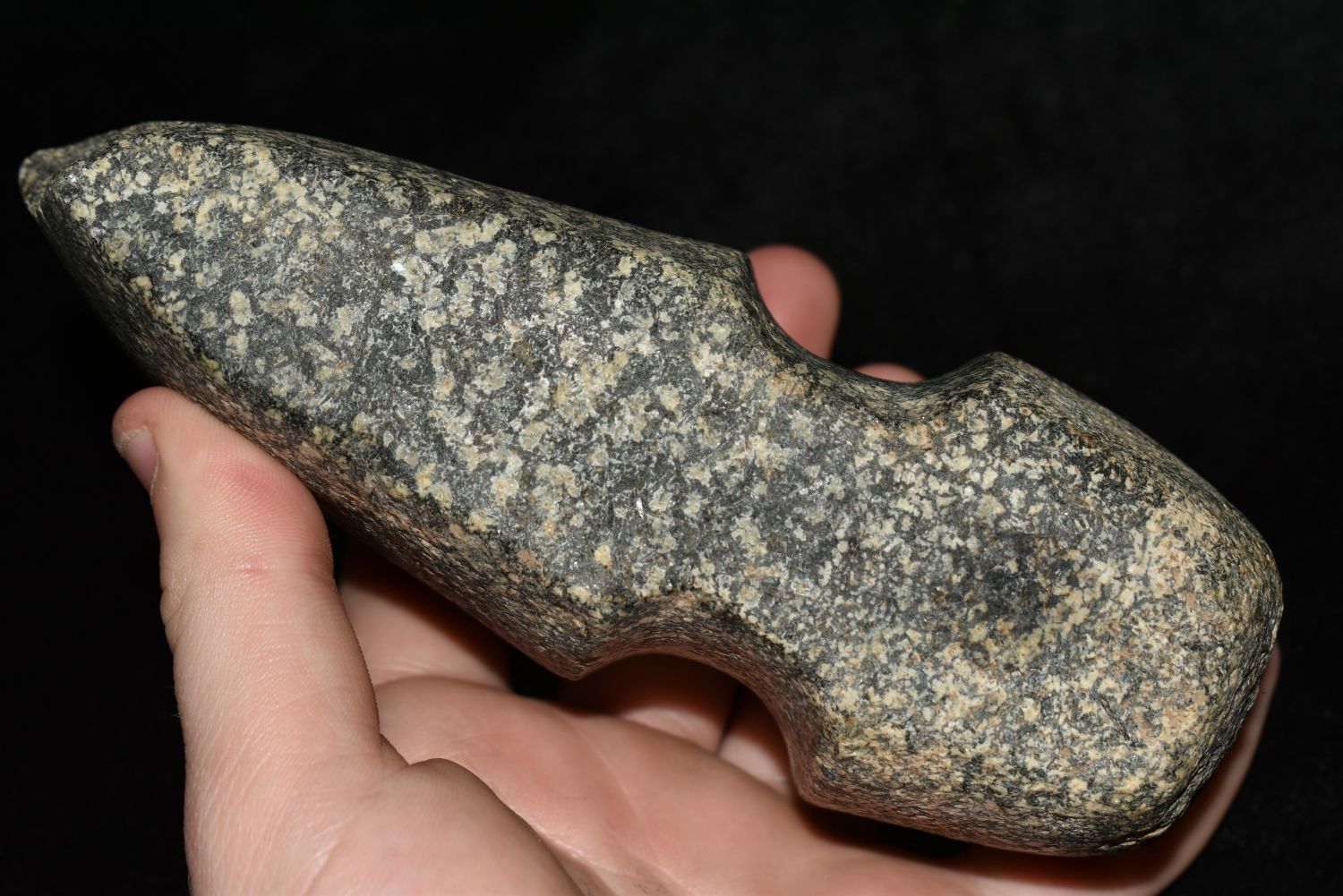6 1/4" LONG 3/4 GROOVE AXE FOUND IN LINCOLN COUNTY MISSOURI, GREAT FORM, COLORFUL MATERIAL, AMAZING POLISH, STANDS UP WELL