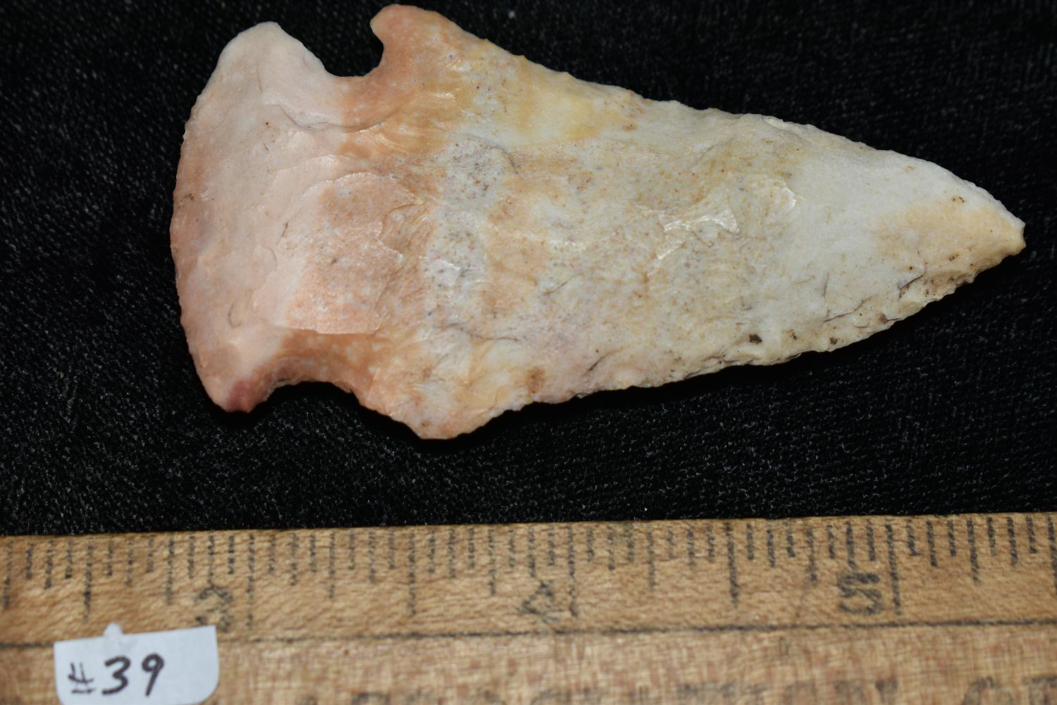 2 3/4" COLORFUL HOPEWELL FOUND IN LINCOLN COUNTY MISSOURI, INDIAN ARROWHEAD, ARTIFACT