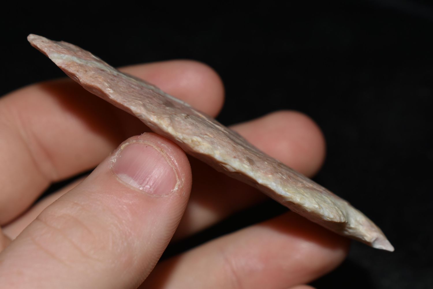 3 1/8" COLORFUL TABLE ROCK FOUND IN LINCOLN COUNTY MISSOURI, INDIAN ARROWHEAD, ARTIFACT