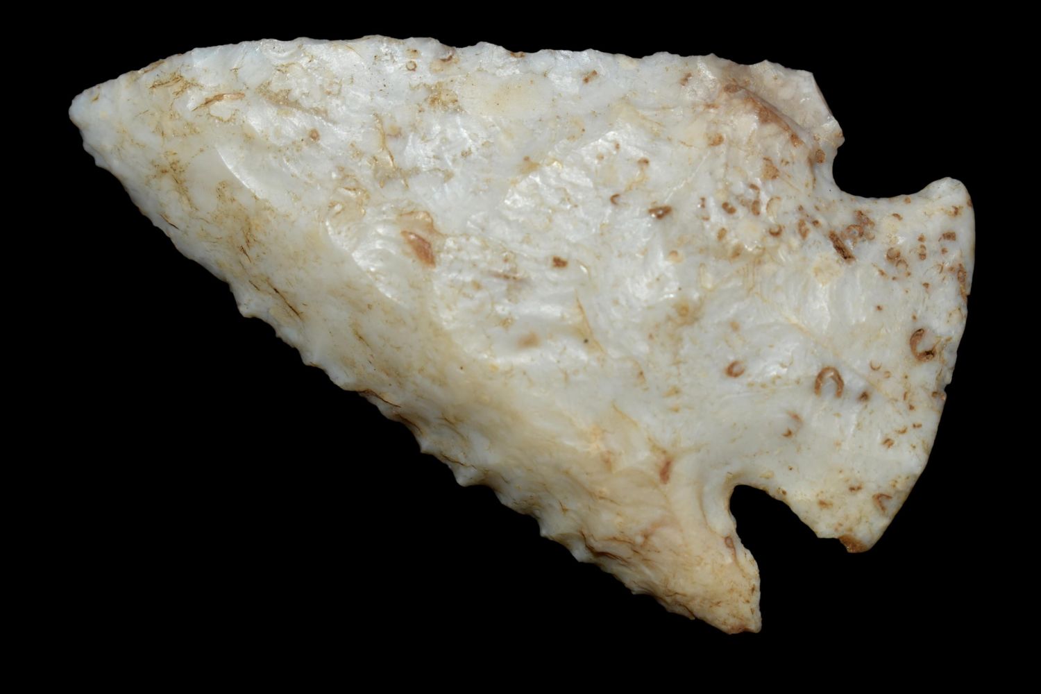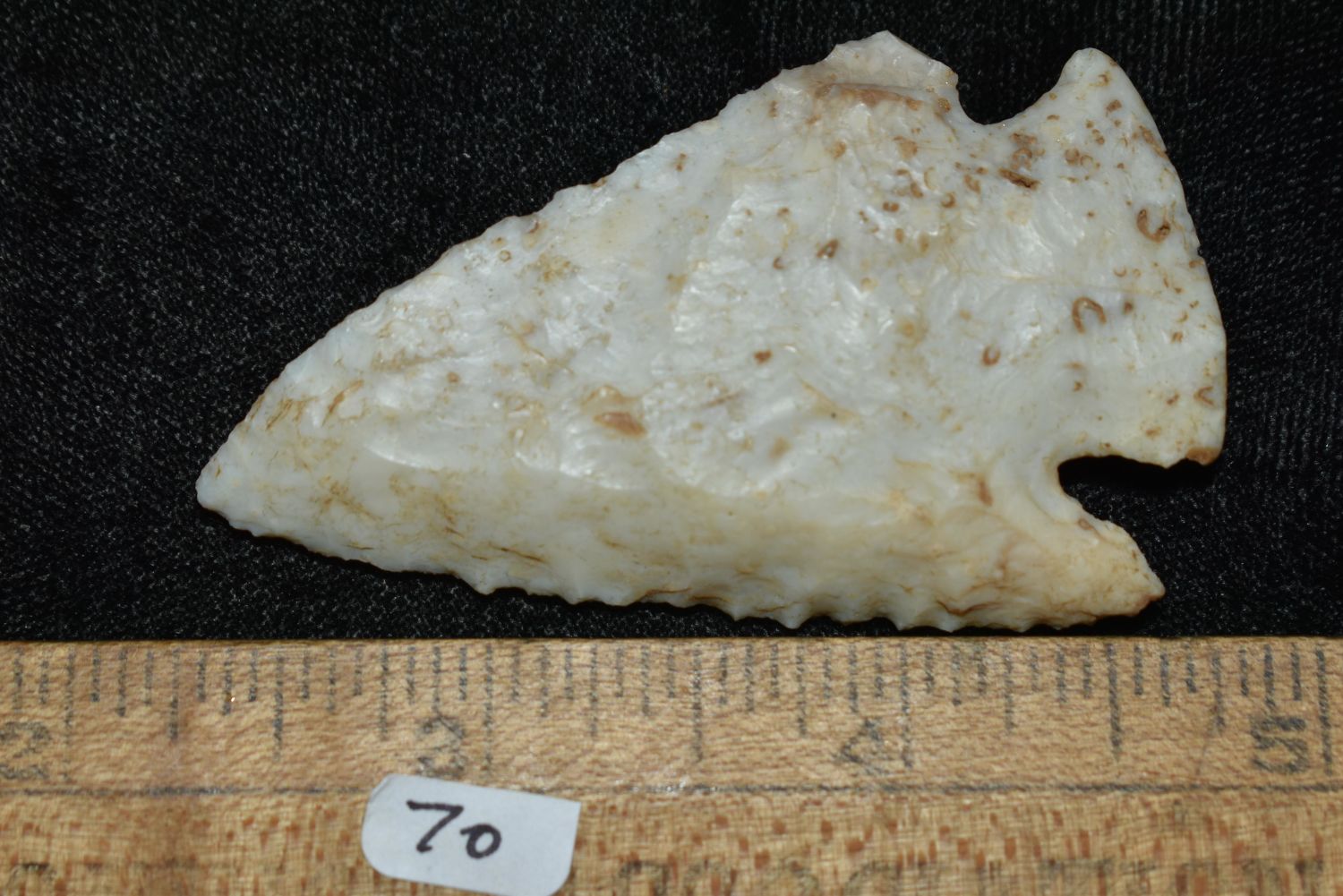 2 1/2" TRANSLUCENT KAOLIN LOST LAKE FOUND IN JACKSON COUNTY ILLINOIS, INDIAN ARROWHEAD, ARTIFACT