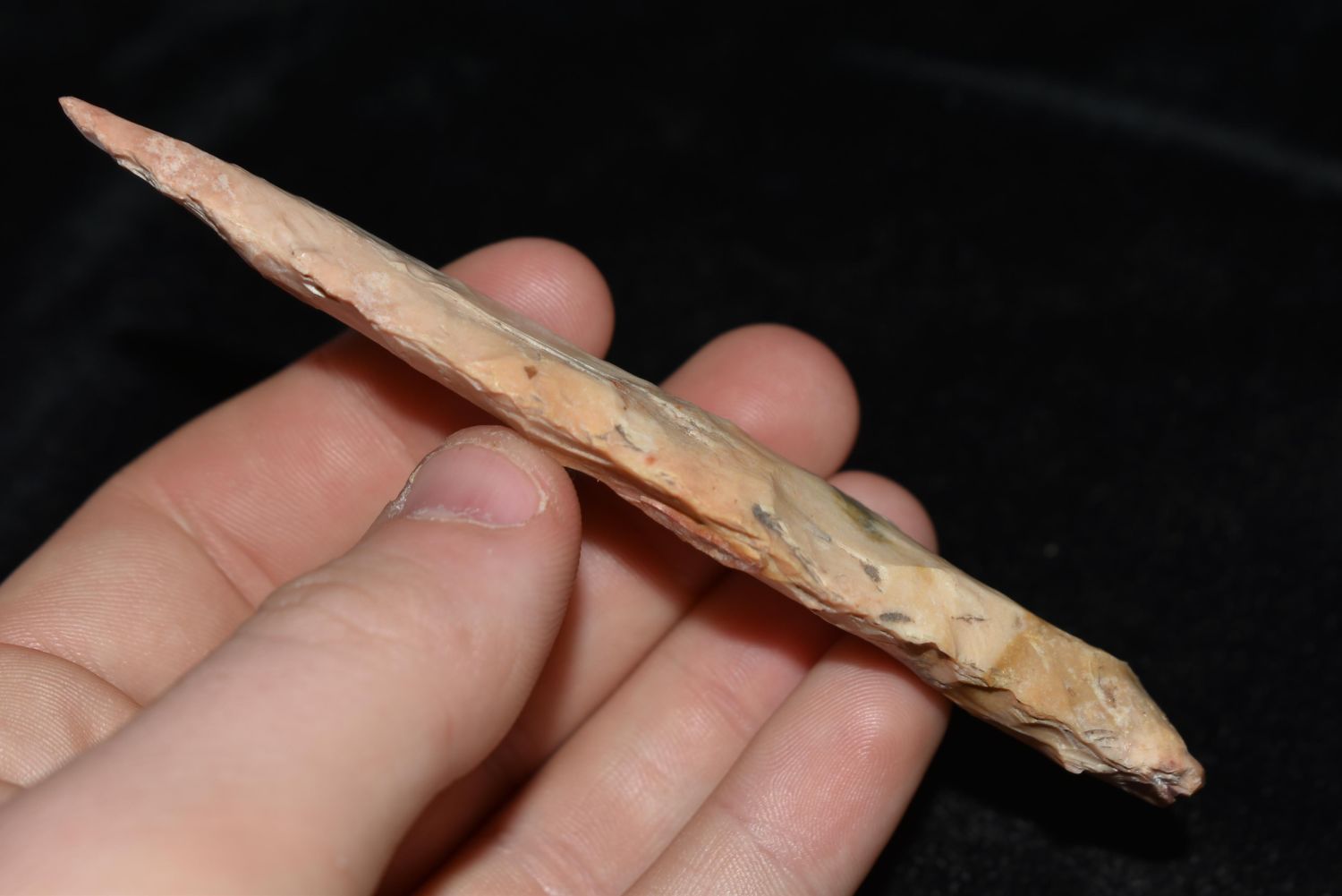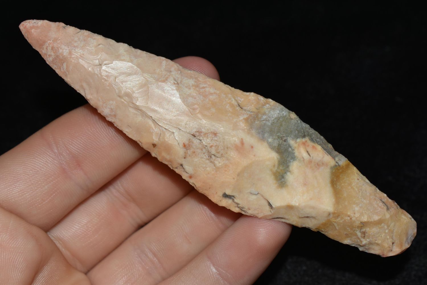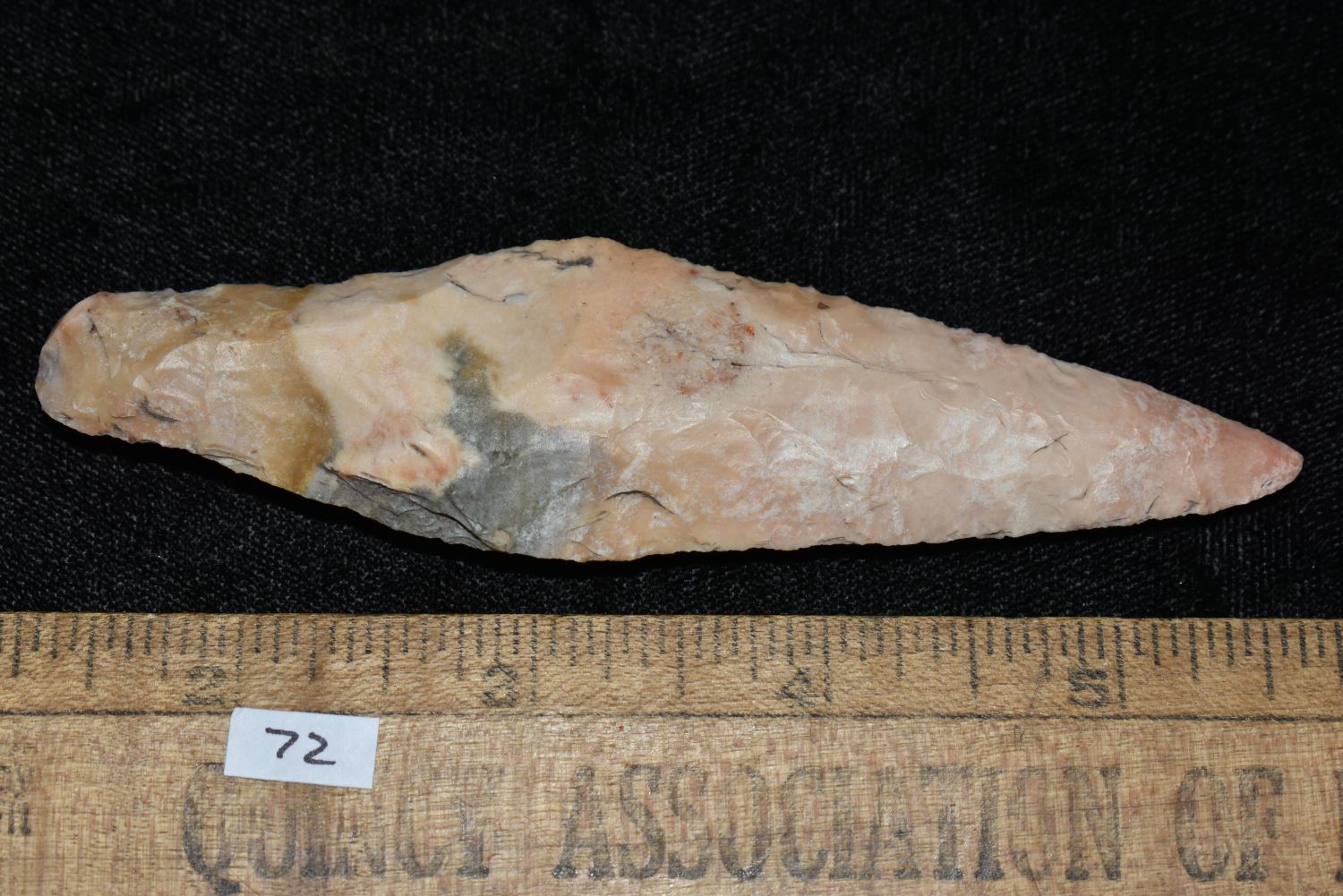 4 3/8" COLORFUL LERMA BLADE FOUND IN LINCOLN COUNTY MISSOURI, INDIAN ARROWHEAD, ARTIFACT