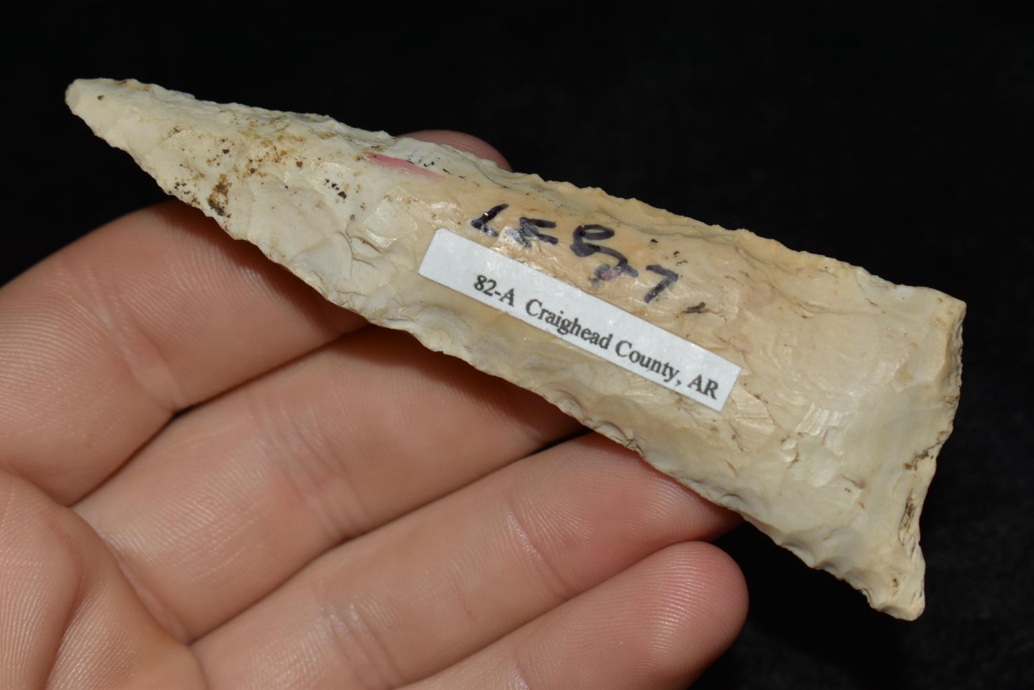 3 3/4" DALTON FROM CRAIGHEAD COUNTY ARKANSAS, EX DUB LYERLY, INDIAN ARROWHEAD, ARTIFACT