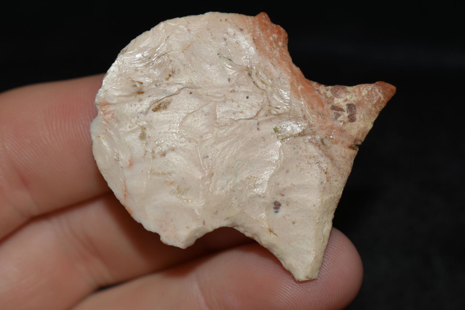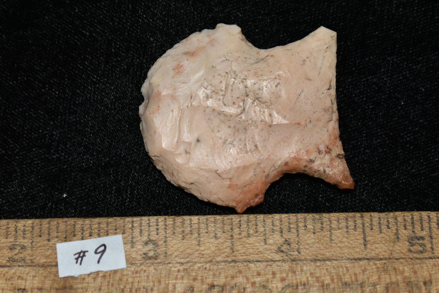 1 5/8" COLORFUL HOPEWELL BLUNT / HAFTED SCRAPER FOUND IN LINCOLN COUNTY MISSOURI, INDIAN ARROWHEAD, ARTIFACT