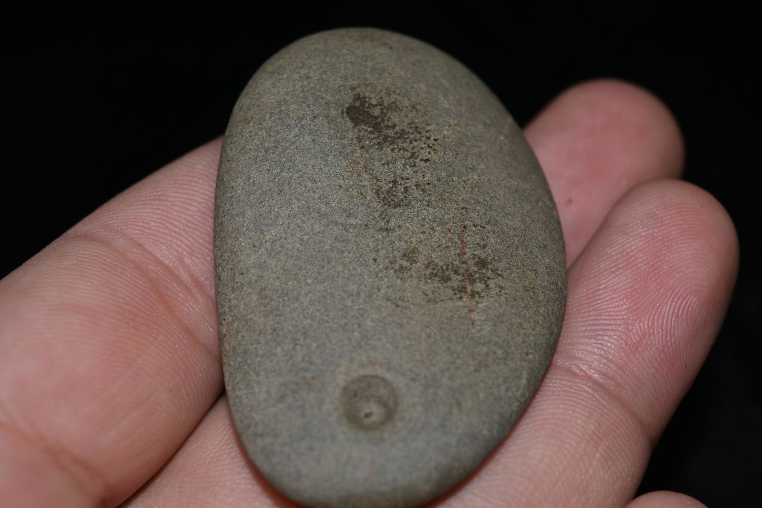 2 1/8" Pendant preform. This collection contains the personally found relics of Steve Koch, Winchester Illinois. Steve hunted relics his entire life with family and friends. He mainly hunted in the Scott Co., Illinois area, and the majority of his finds came from the Illinois River Valley.