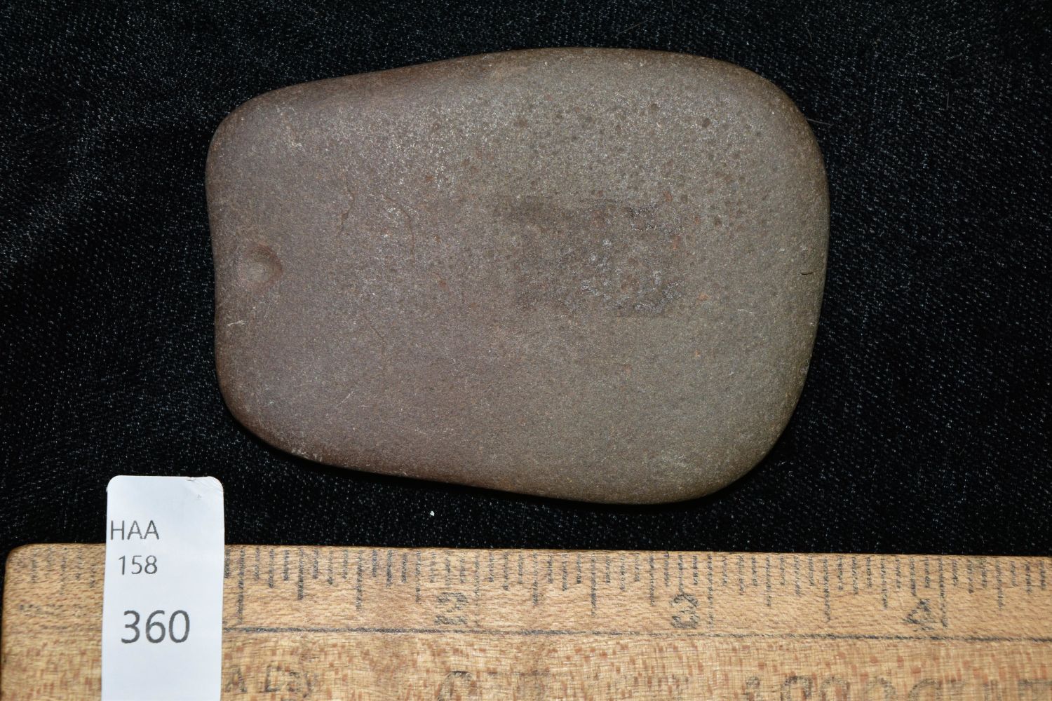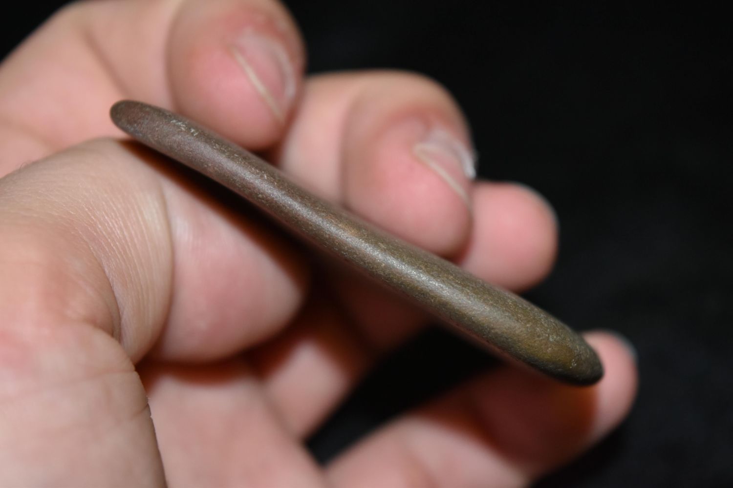 2 5/8" Pendant preform. This collection contains the personally found relics of Steve Koch, Winchester Illinois. Steve hunted relics his entire life with family and friends. He mainly hunted in the Scott Co., Illinois area, and the majority of his finds came from the Illinois River Valley.