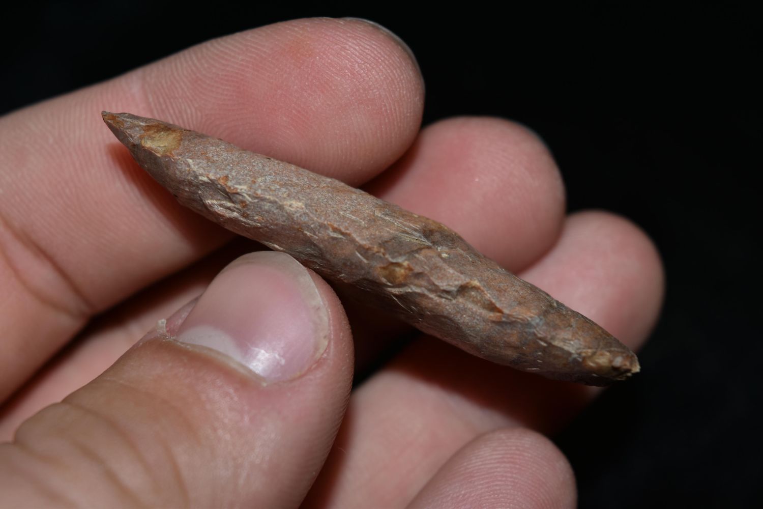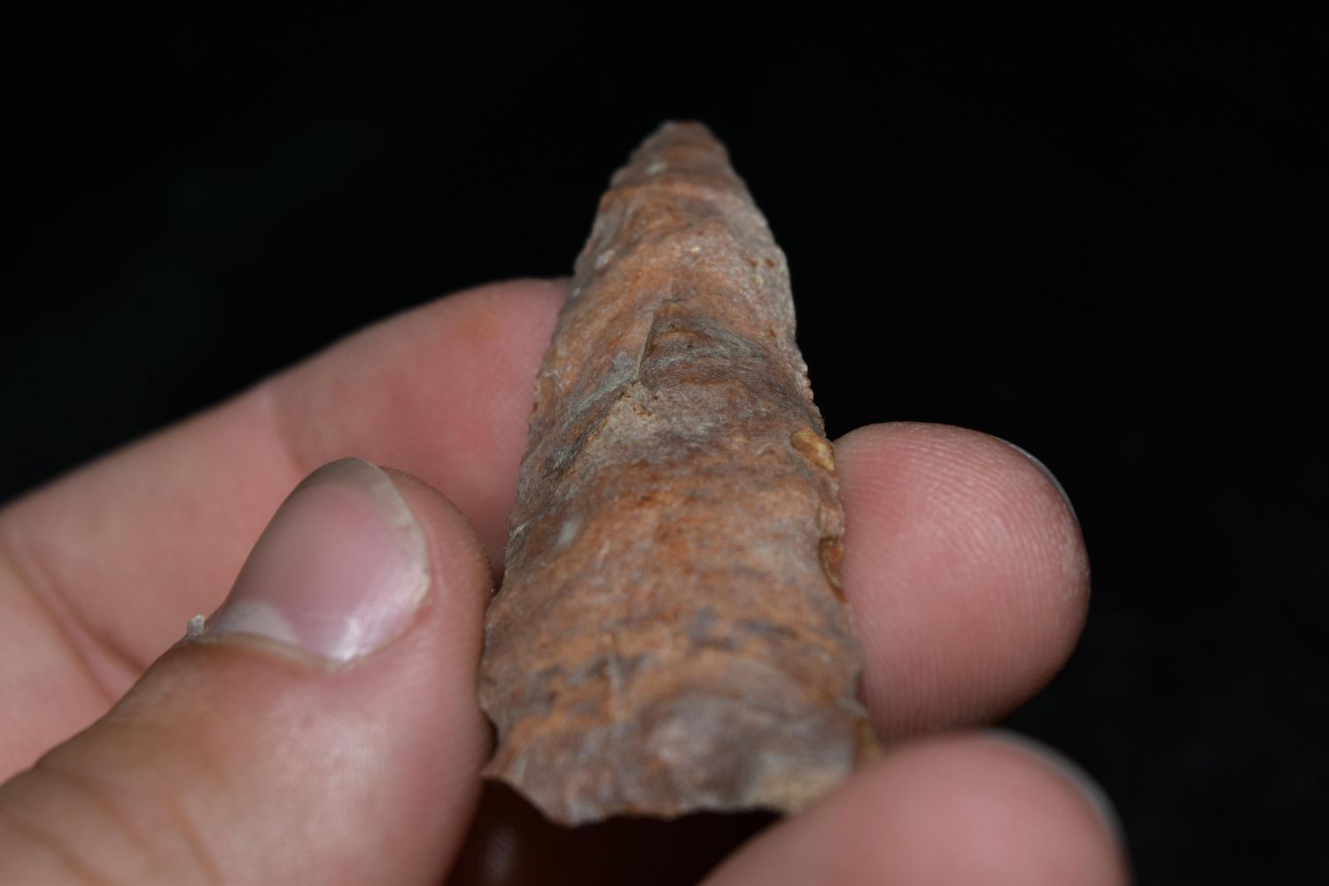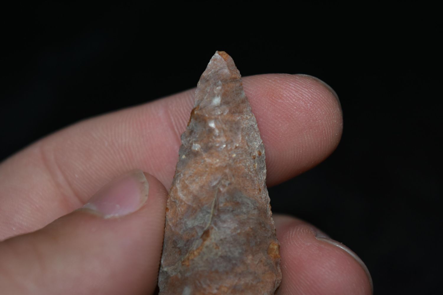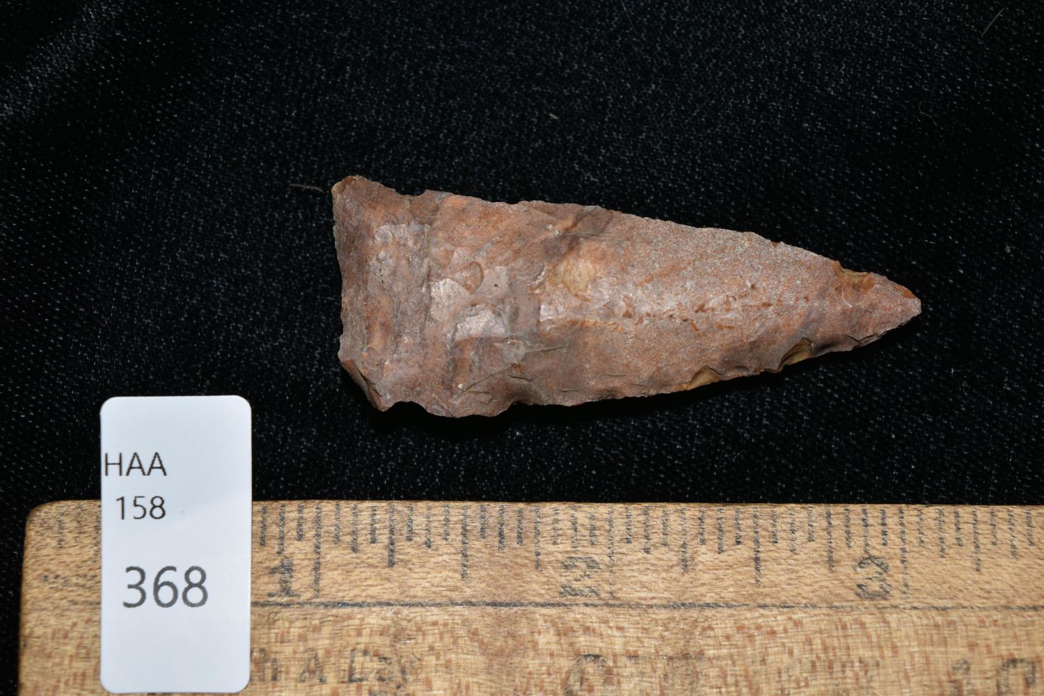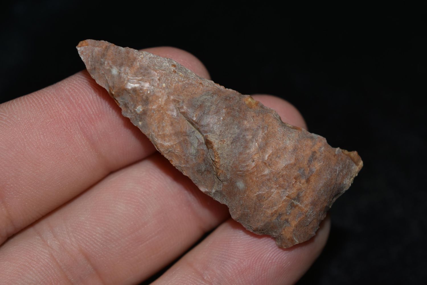 2 3/8" Woodland Point. This collection contains the personally found relics of Steve Koch, Winchester Illinois. Steve hunted relics his entire life with family and friends. He mainly hunted in the Scott Co., Illinois area, and the majority of his finds came from the Illinois River Valley.