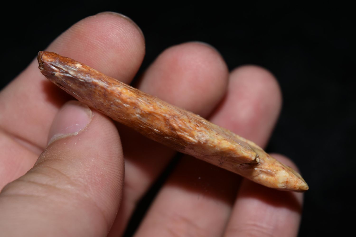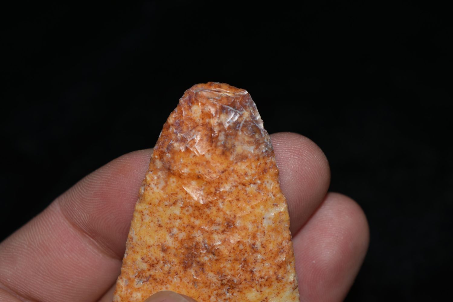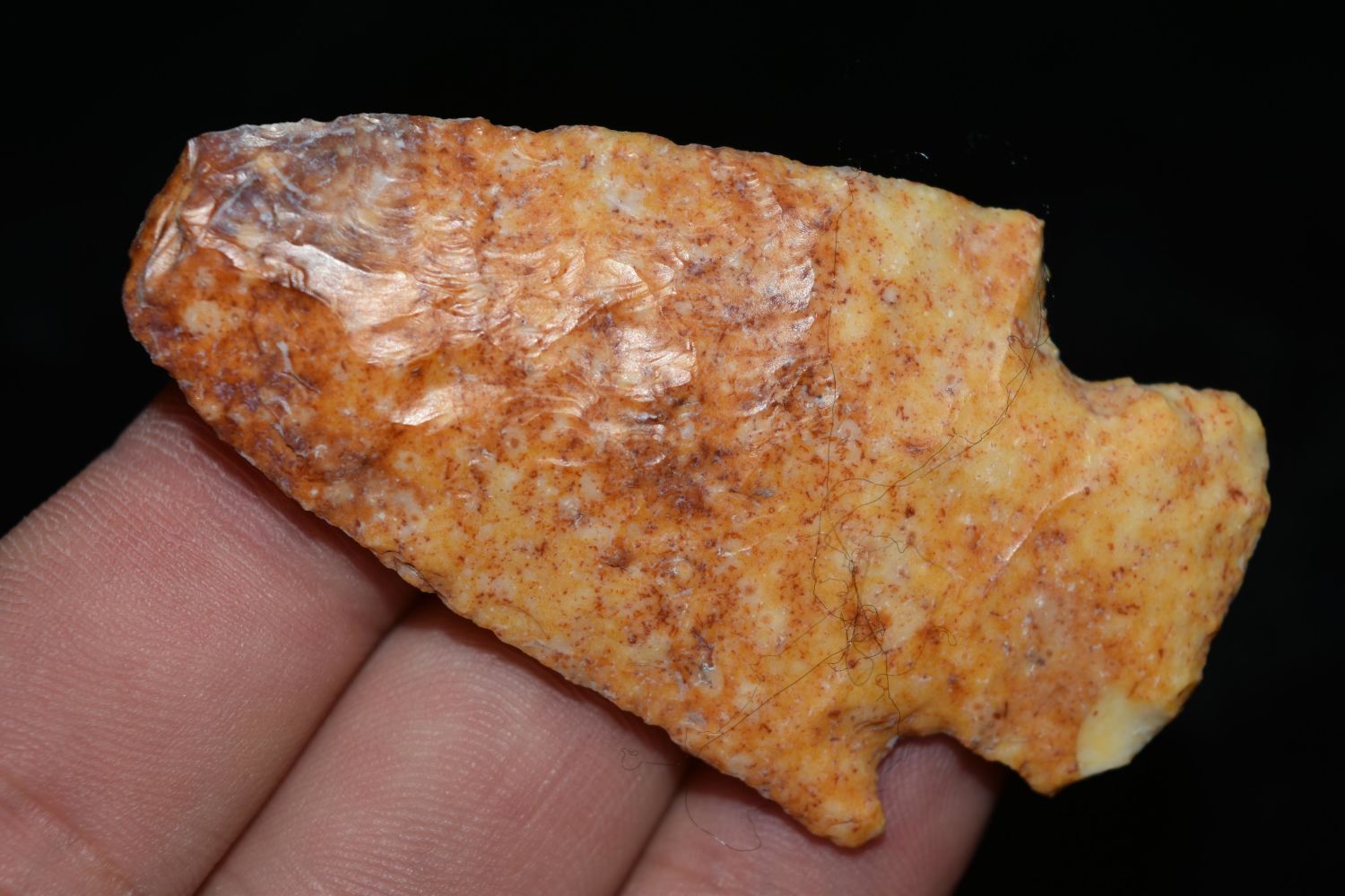 2 1/2" River Stained Kampsville. This collection contains the personally found relics of Steve Koch, Winchester Illinois. Steve hunted relics his entire life with family and friends. He mainly hunted in the Scott Co., Illinois area, and the majority of his finds came from the Illinois River Valley.