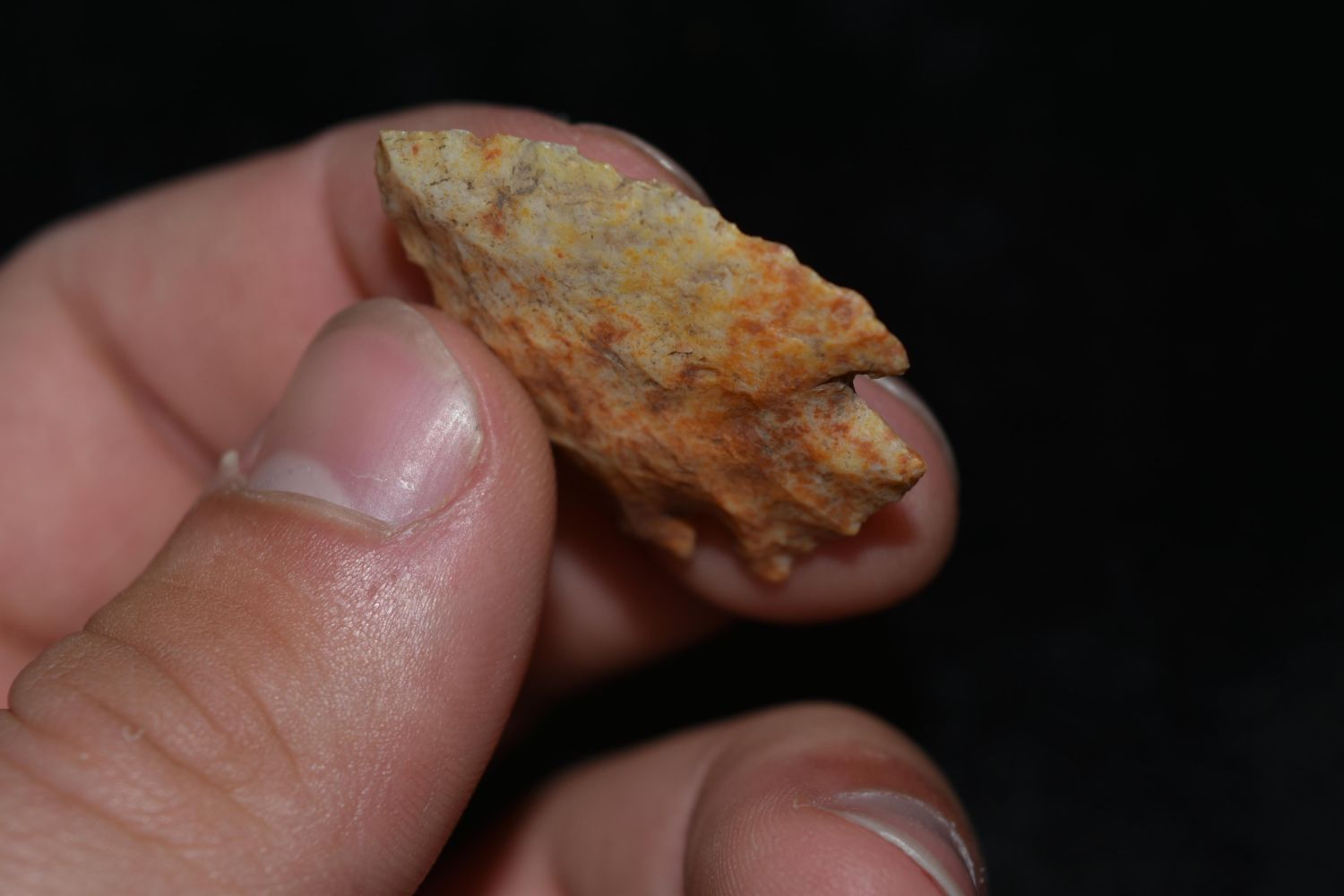 1 1/4" River Stained Pelican Lake. This collection contains the personally found relics of Steve Koch, Winchester Illinois. Steve hunted relics his entire life with family and friends. He mainly hunted in the Scott Co., Illinois area, and the majority of his finds came from the Illinois River Valley.
