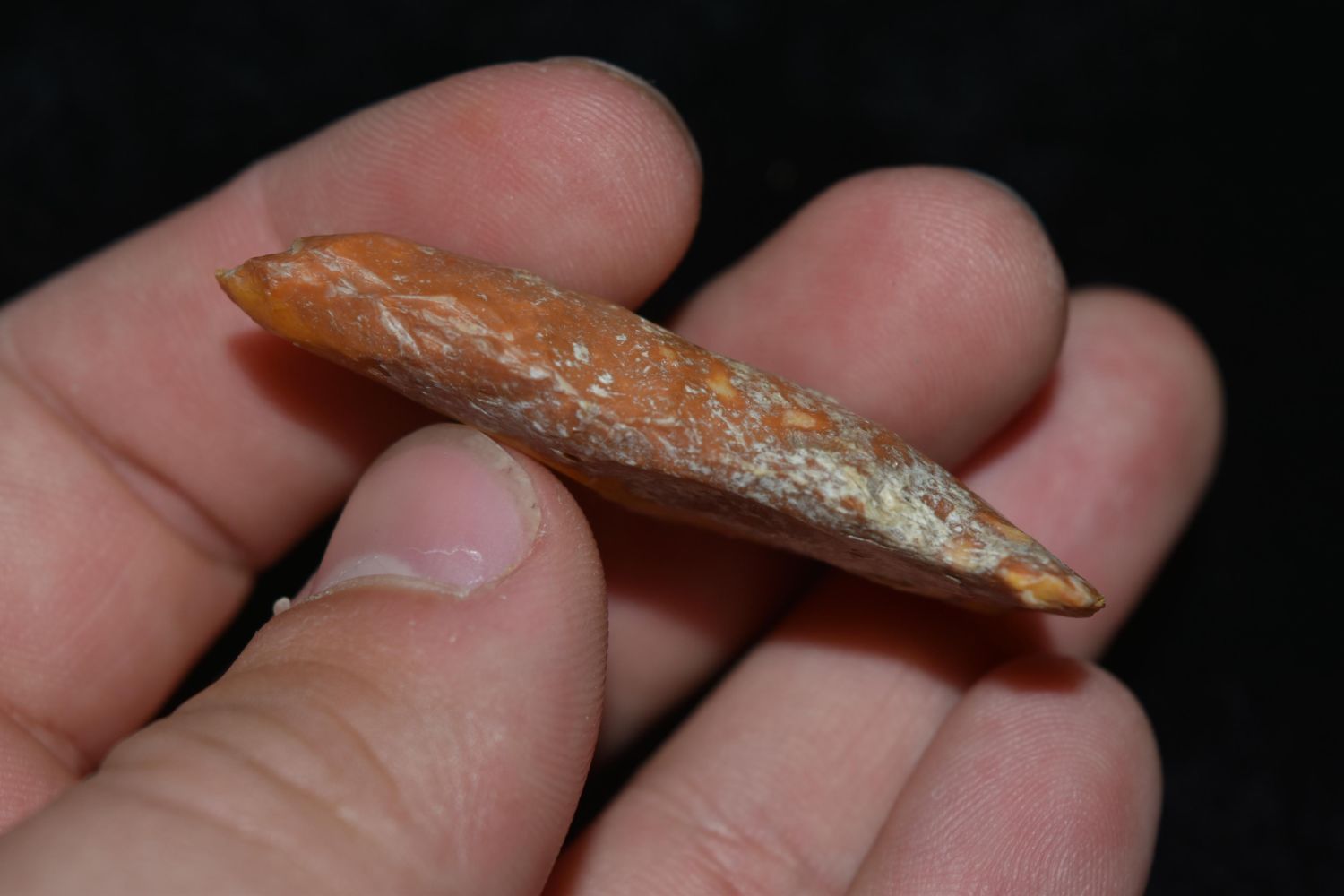 2 1/8" River Stained Godar. This collection contains the personally found relics of Steve Koch, Winchester Illinois. Steve hunted relics his entire life with family and friends. He mainly hunted in the Scott Co., Illinois area, and the majority of his finds came from the Illinois River Valley.