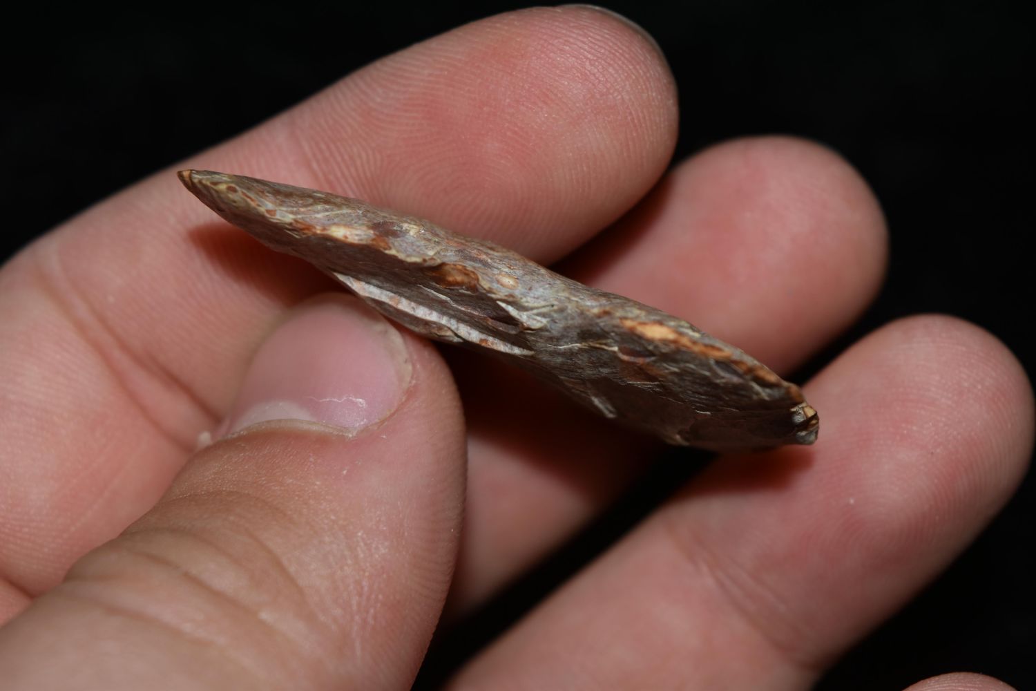 1 7/8" River Stained Fox Valley. This collection contains the personally found relics of Steve Koch, Winchester Illinois. Steve hunted relics his entire life with family and friends. He mainly hunted in the Scott Co., Illinois area, and the majority of his finds came from the Illinois River Valley.
