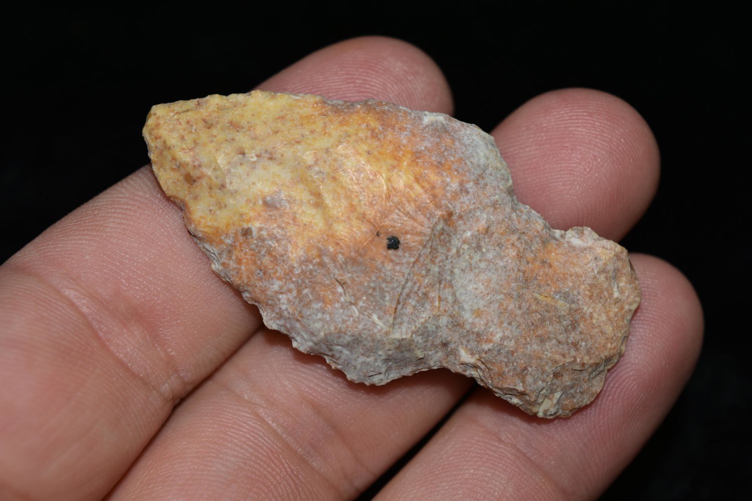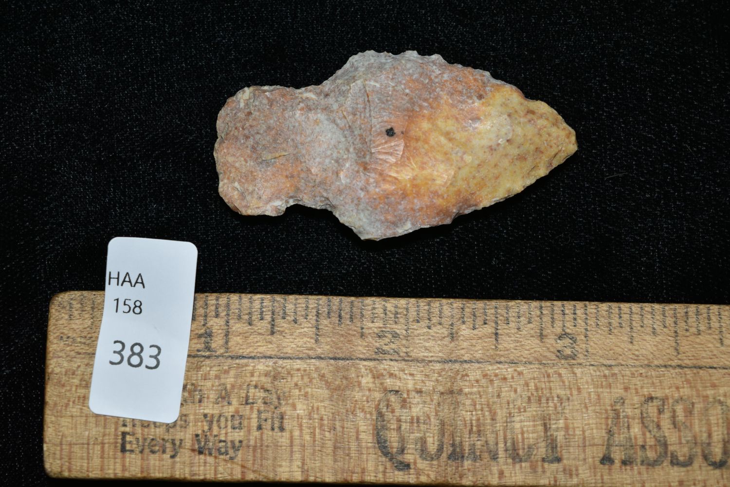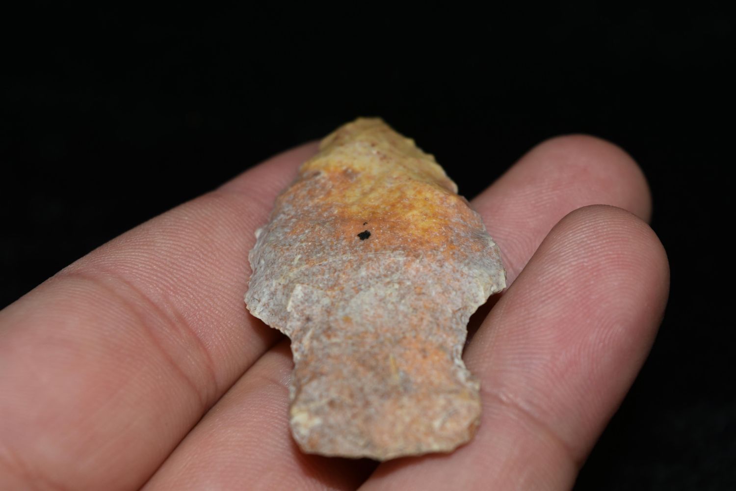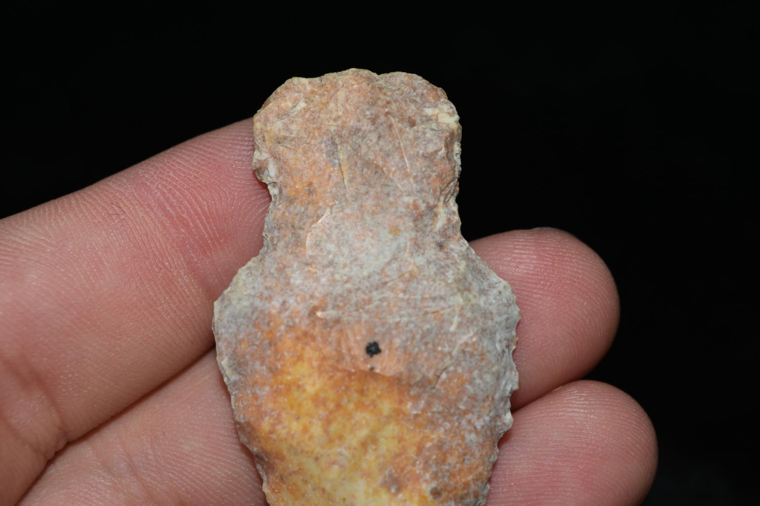 2" Stemmed Point. This collection contains the personally found relics of Steve Koch, Winchester Illinois. Steve hunted relics his entire life with family and friends. He mainly hunted in the Scott Co., Illinois area, and the majority of his finds came from the Illinois River Valley.