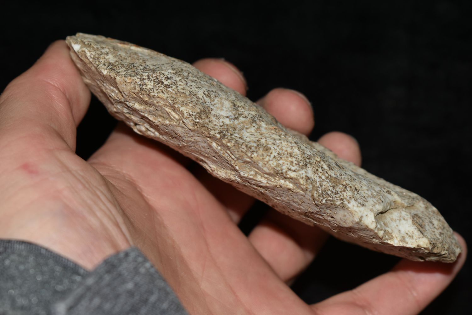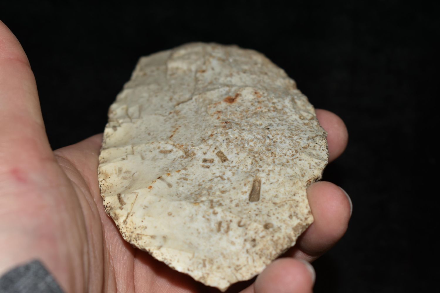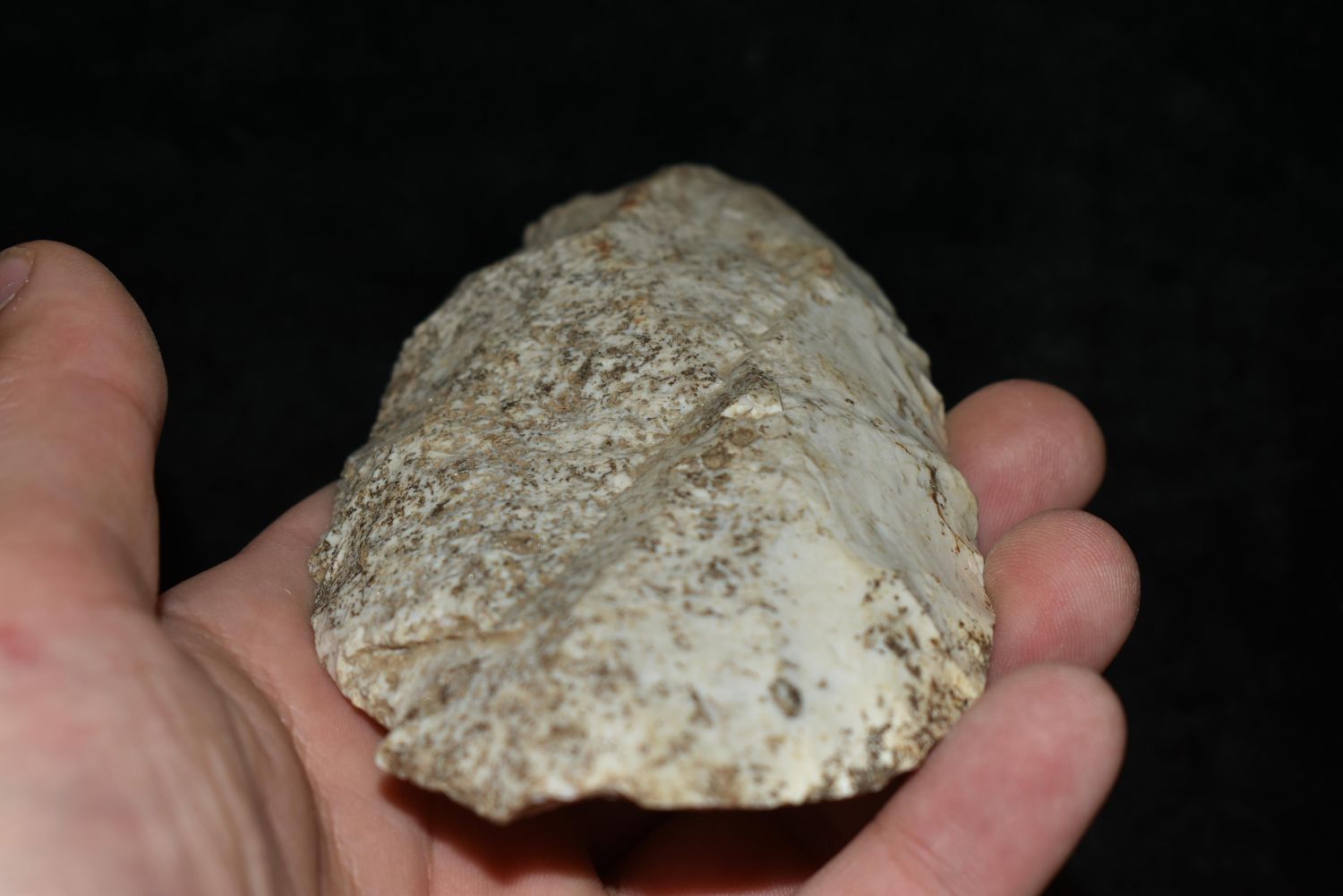 5 1/8" Flint Digger. This collection contains the personally found relics of Steve Koch, Winchester Illinois. Steve hunted relics his entire life with family and friends. He mainly hunted in the Scott Co., Illinois area, and the majority of his finds came