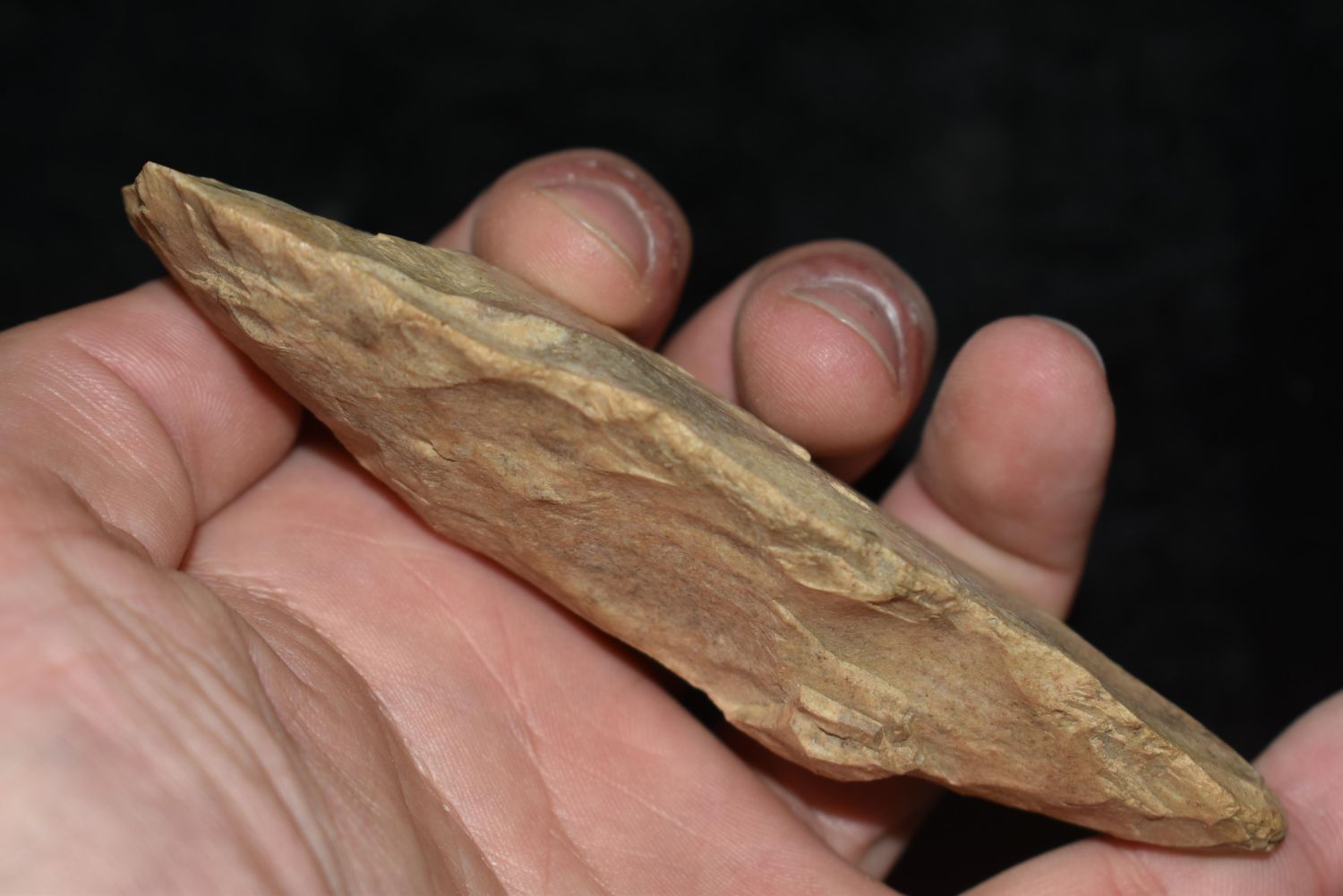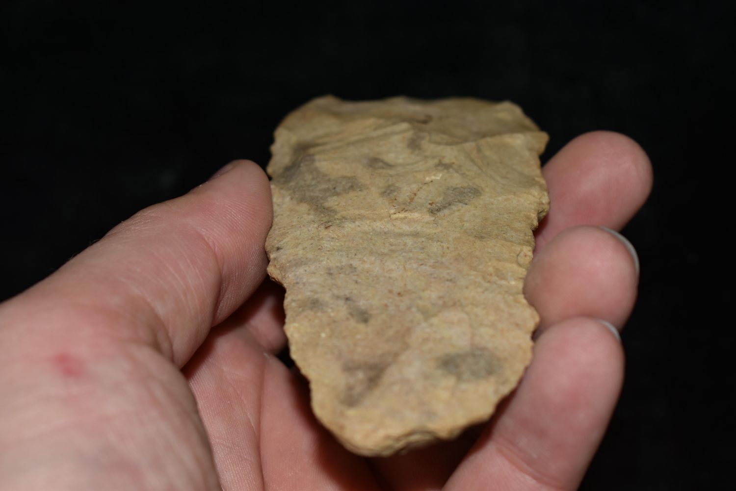 4 1/2" Flint Digger. This collection contains the personally found relics of Steve Koch, Winchester Illinois. Steve hunted relics his entire life with family and friends. He mainly hunted in the Scott Co., Illinois area, and the majority of his finds came from the Illinois River Valley.