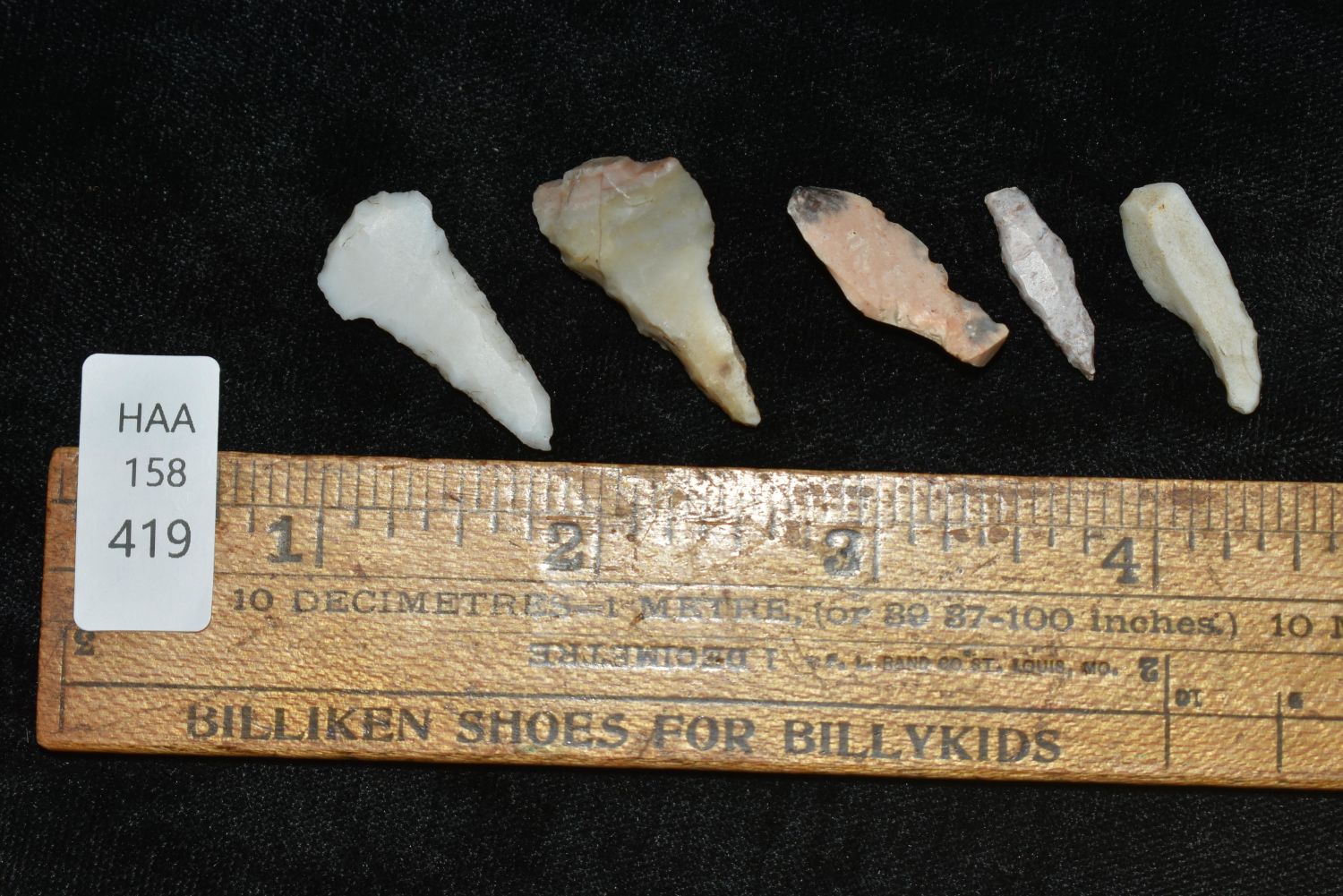 Lot of 5 Drills. This collection contains the personally found relics of Steve Koch, Winchester Illinois. Steve hunted relics his entire life with family and friends. He mainly hunted in the Scott Co., Illinois area, and the majority of his finds came from the Illinois River Valley.