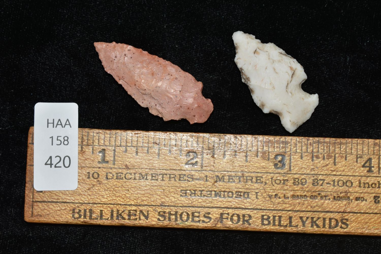 Lot of 2 Arrowheads. This collection contains the personally found relics of Steve Koch, Winchester Illinois. Steve hunted relics his entire life with family and friends. He mainly hunted in the Scott Co., Illinois area, and the majority of his finds came from the Illinois River Valley.