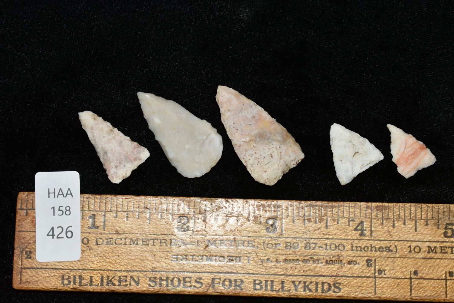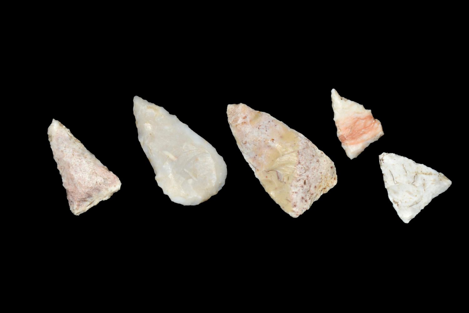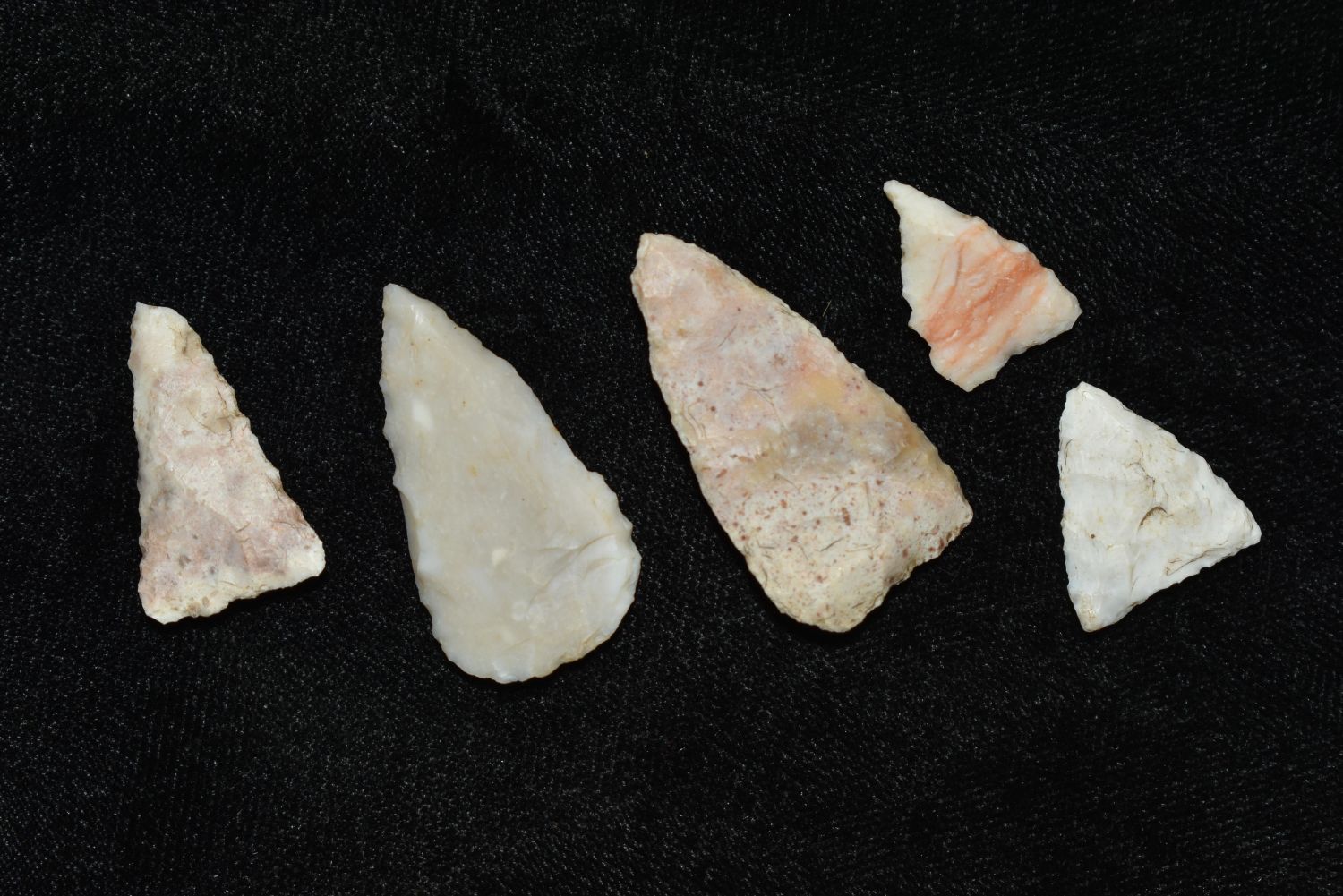 Lot of 5 Madison Points. This collection contains the personally found relics of Steve Koch, Winchester Illinois. Steve hunted relics his entire life with family and friends. He mainly hunted in the Scott Co., Illinois area, and the majority of his finds came from the Illinois River Valley.