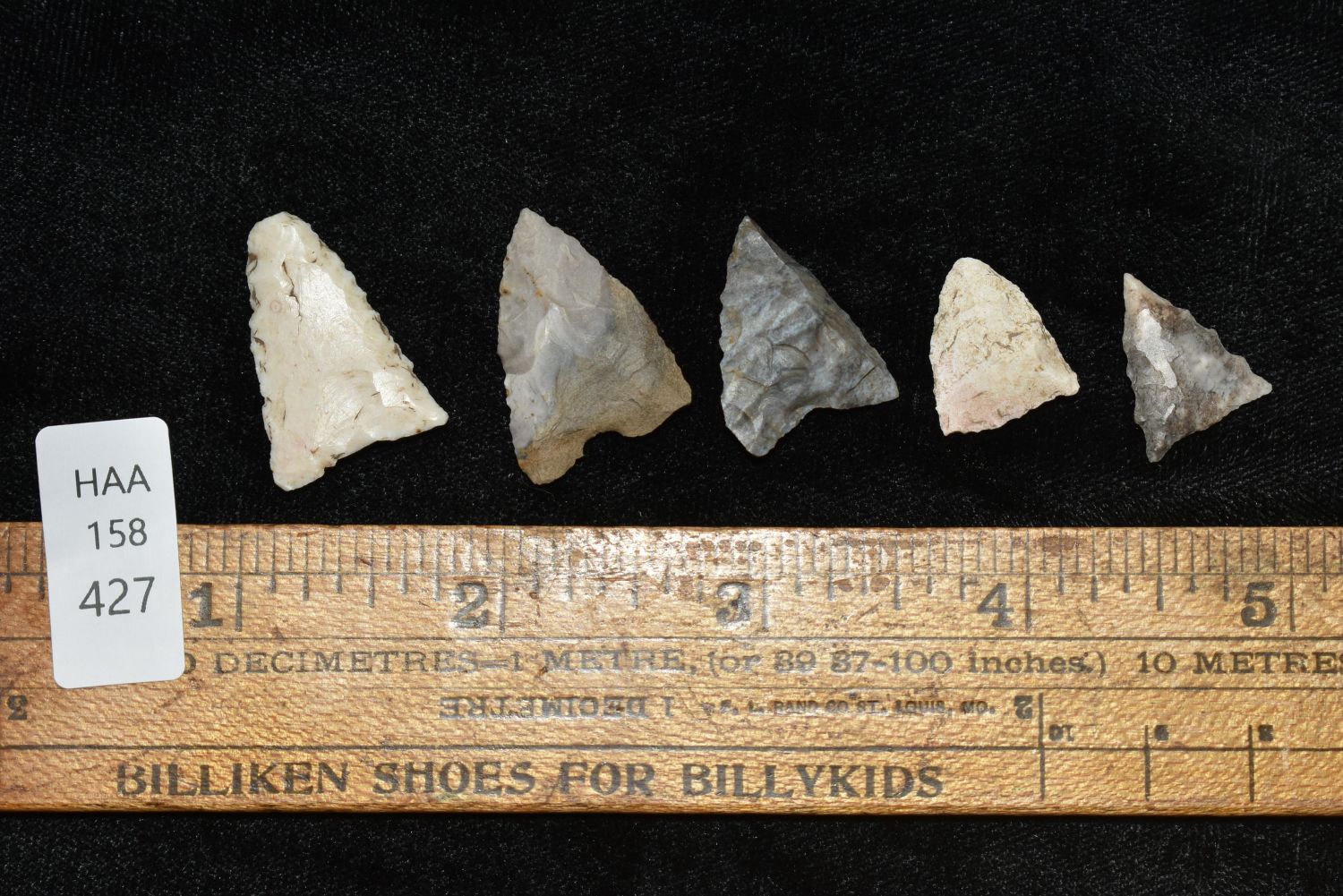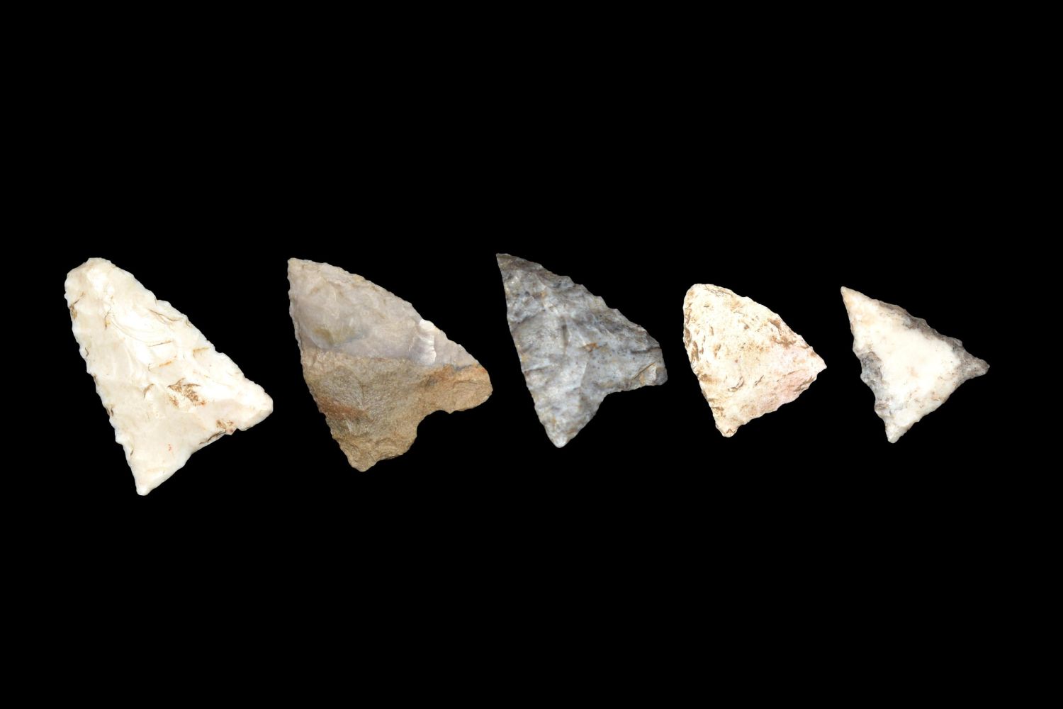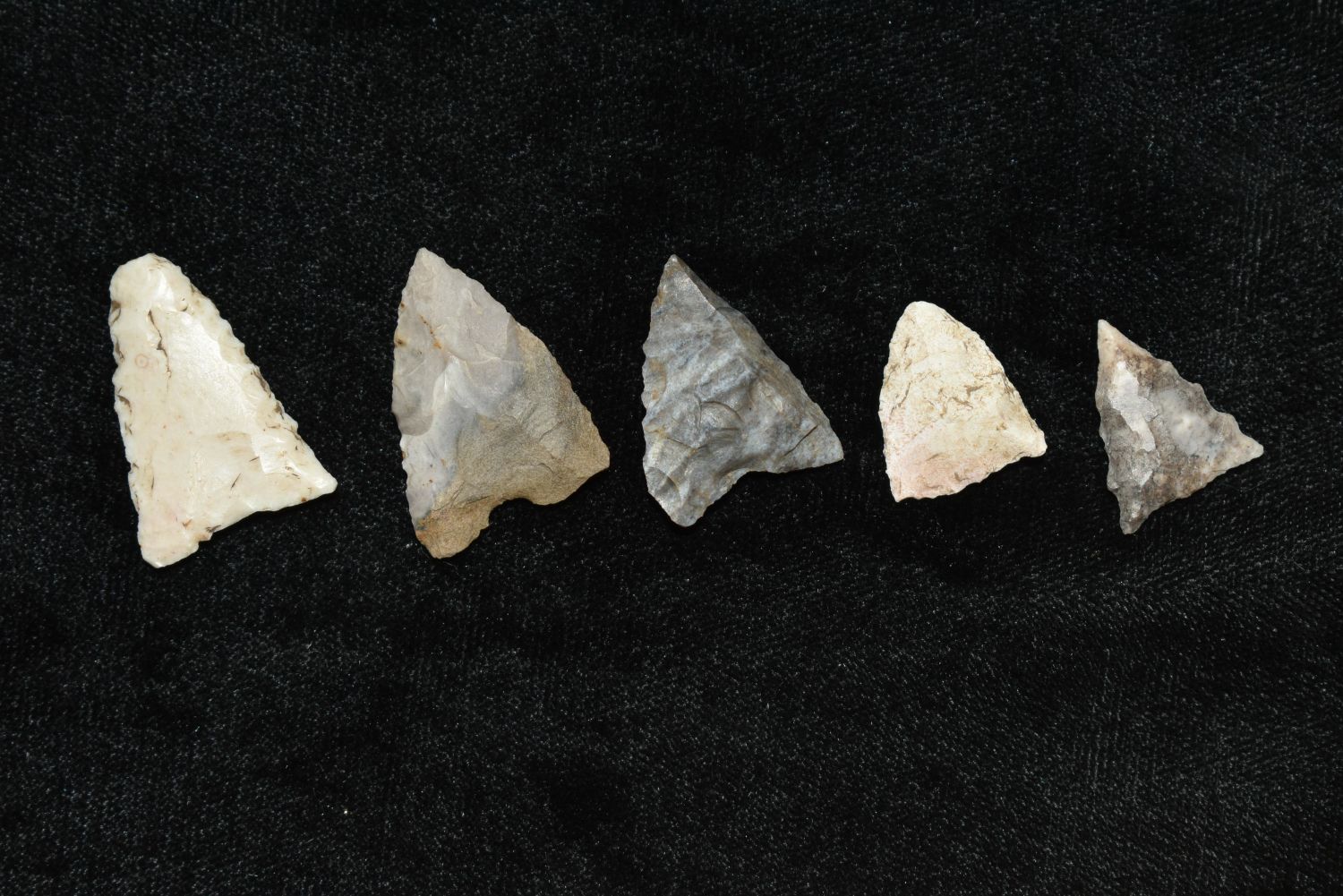 Lot of 5 Madison Points. This collection contains the personally found relics of Steve Koch, Winchester Illinois. Steve hunted relics his entire life with family and friends. He mainly hunted in the Scott Co., Illinois area, and the majority of his finds came from the Illinois River Valley.