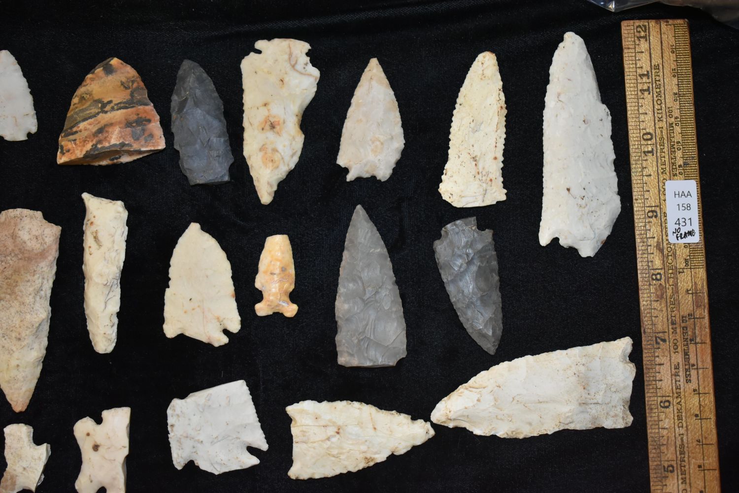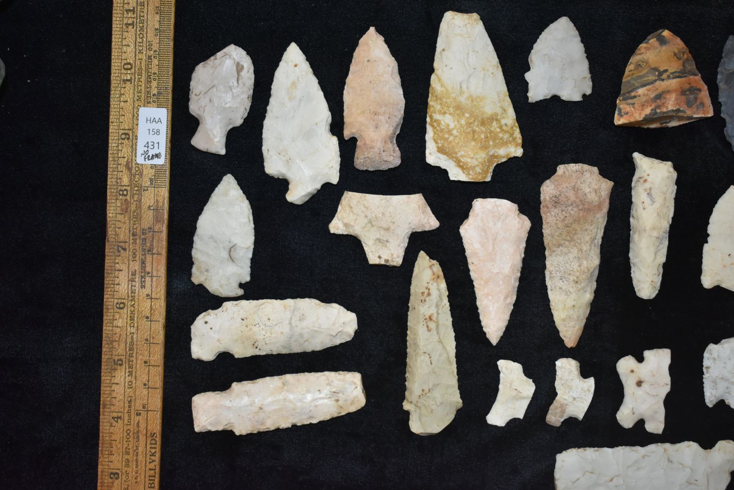 Lot of 31 Heartbreaker Arrowheads. This collection contains the personally found relics of Steve Koch, Winchester Illinois. Steve hunted relics his entire life with family and friends. He mainly hunted in the Scott Co., Illinois area, and the majority of his finds came from the Illinois River Valley.