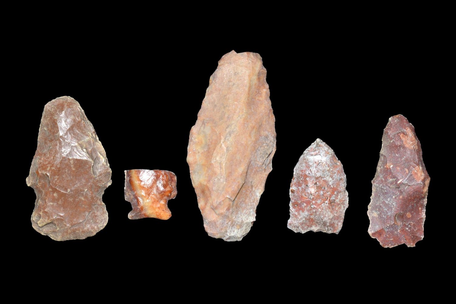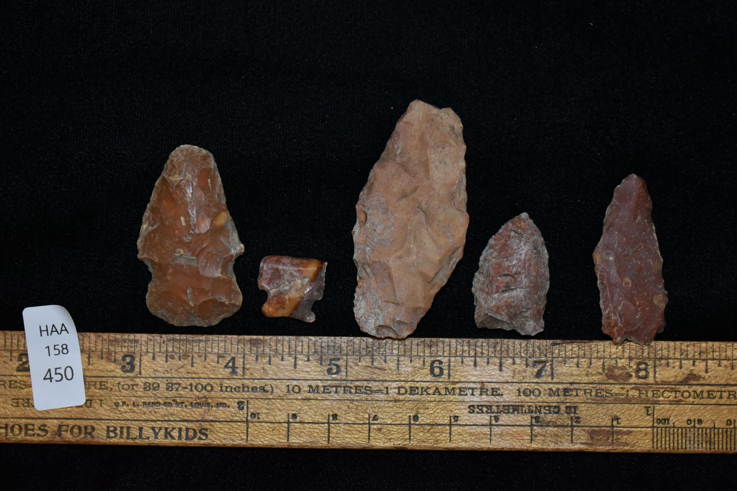 Lot of 5 Arrowheads. This collection contains the personally found relics of Steve Koch, Winchester Illinois. Steve hunted relics his entire life with family and friends. He mainly hunted in the Scott Co., Illinois area, and the majority of his finds came from the Illinois River Valley.