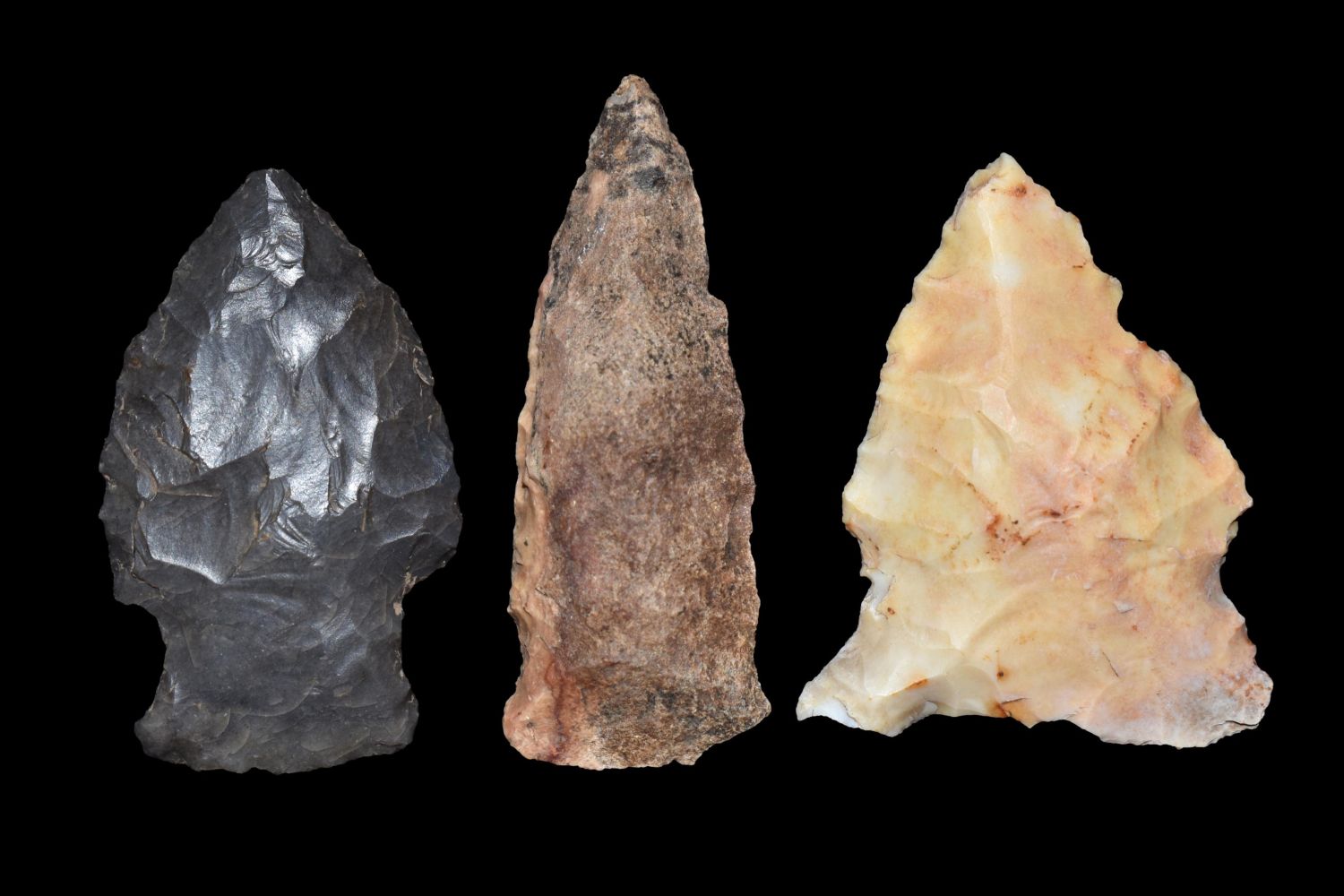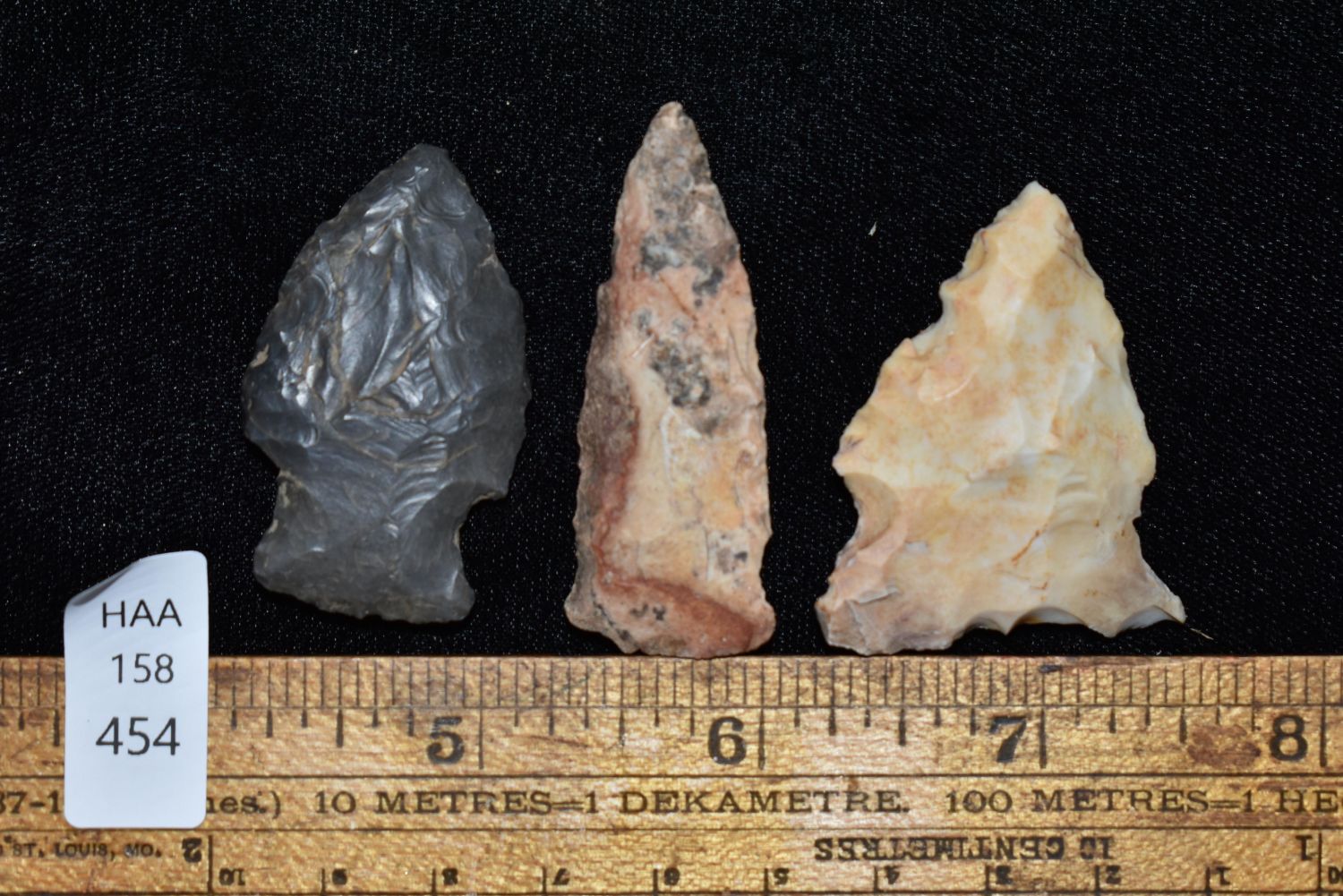 Lot of 3 Arrowheads. This collection contains the personally found relics of Steve Koch, Winchester Illinois. Steve hunted relics his entire life with family and friends. He mainly hunted in the Scott Co., Illinois area, and the majority of his finds came from the Illinois River Valley.