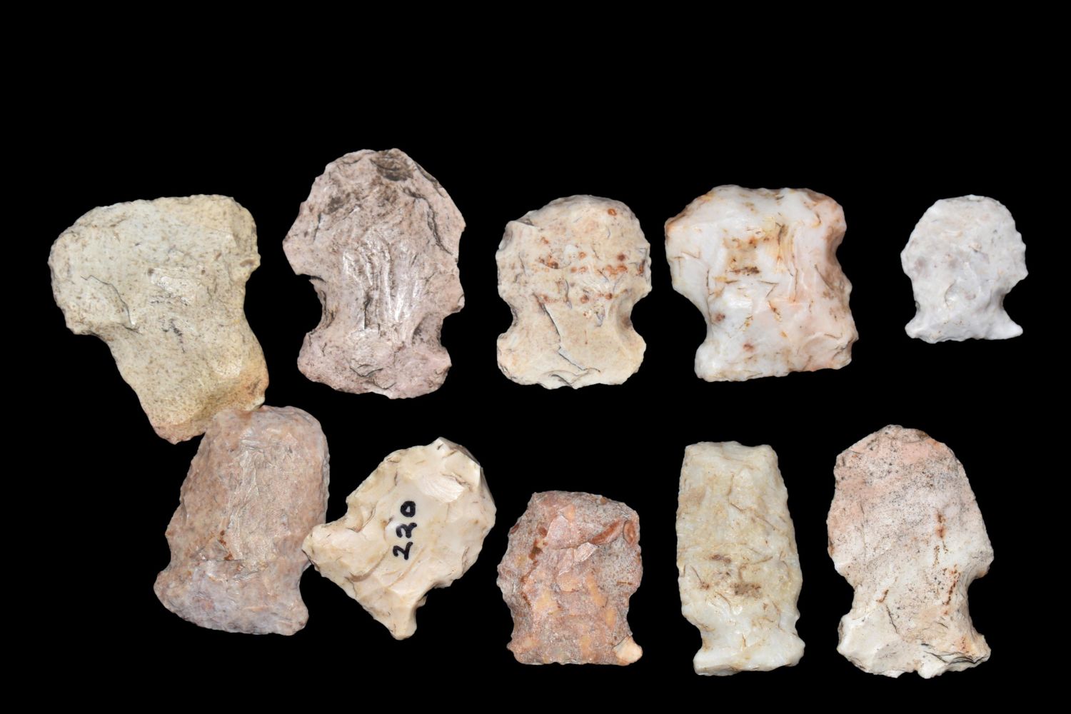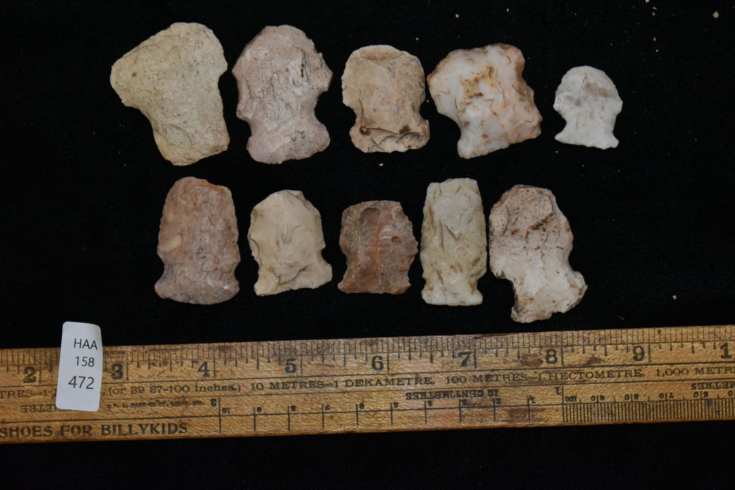 Lot of 10 Hafted Scrapers. This collection contains the personally found relics of Steve Koch, Winchester Illinois. Steve hunted relics his entire life with family and friends. He mainly hunted in the Scott Co., Illinois area, and the majority of his finds came from the Illinois River Valley.