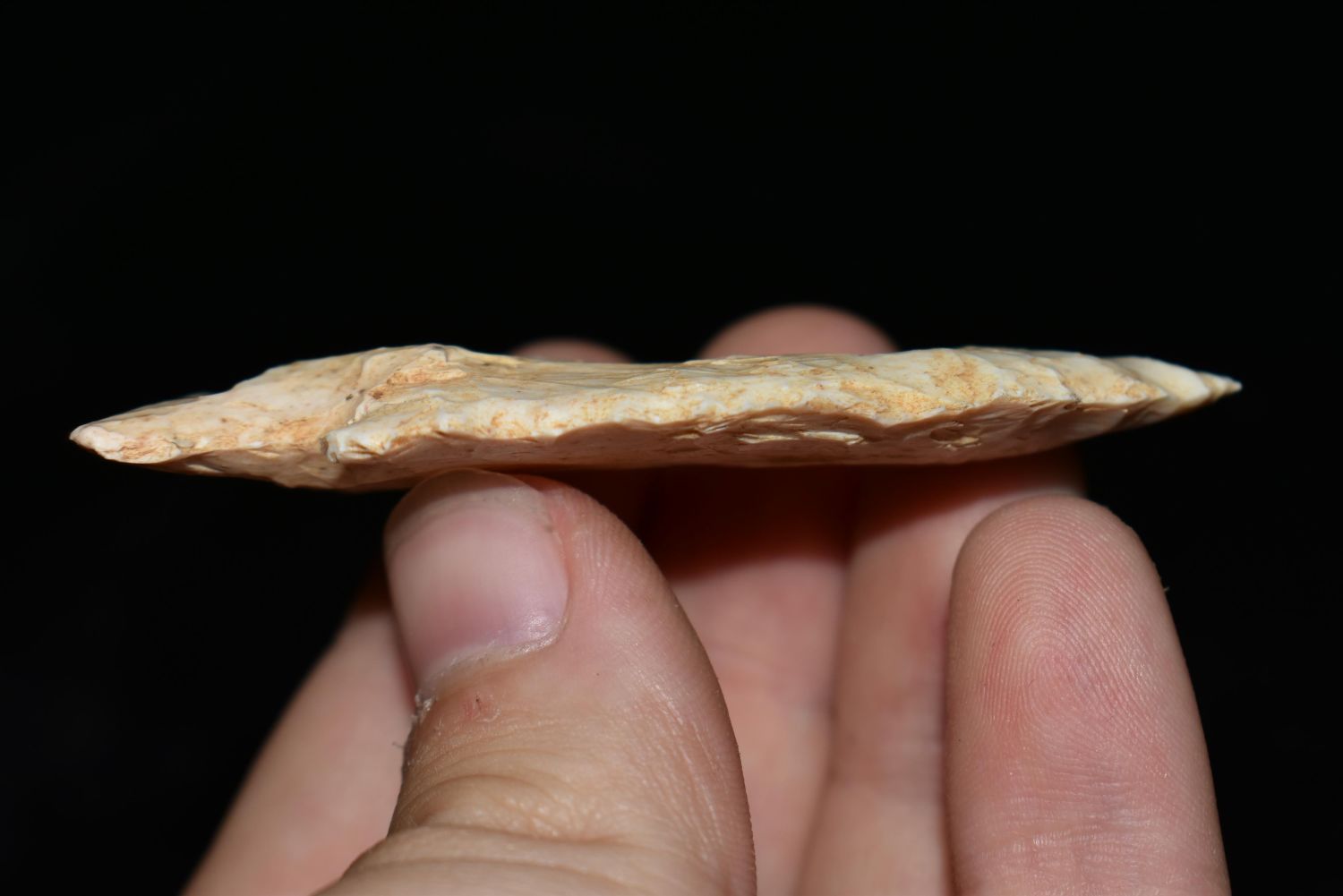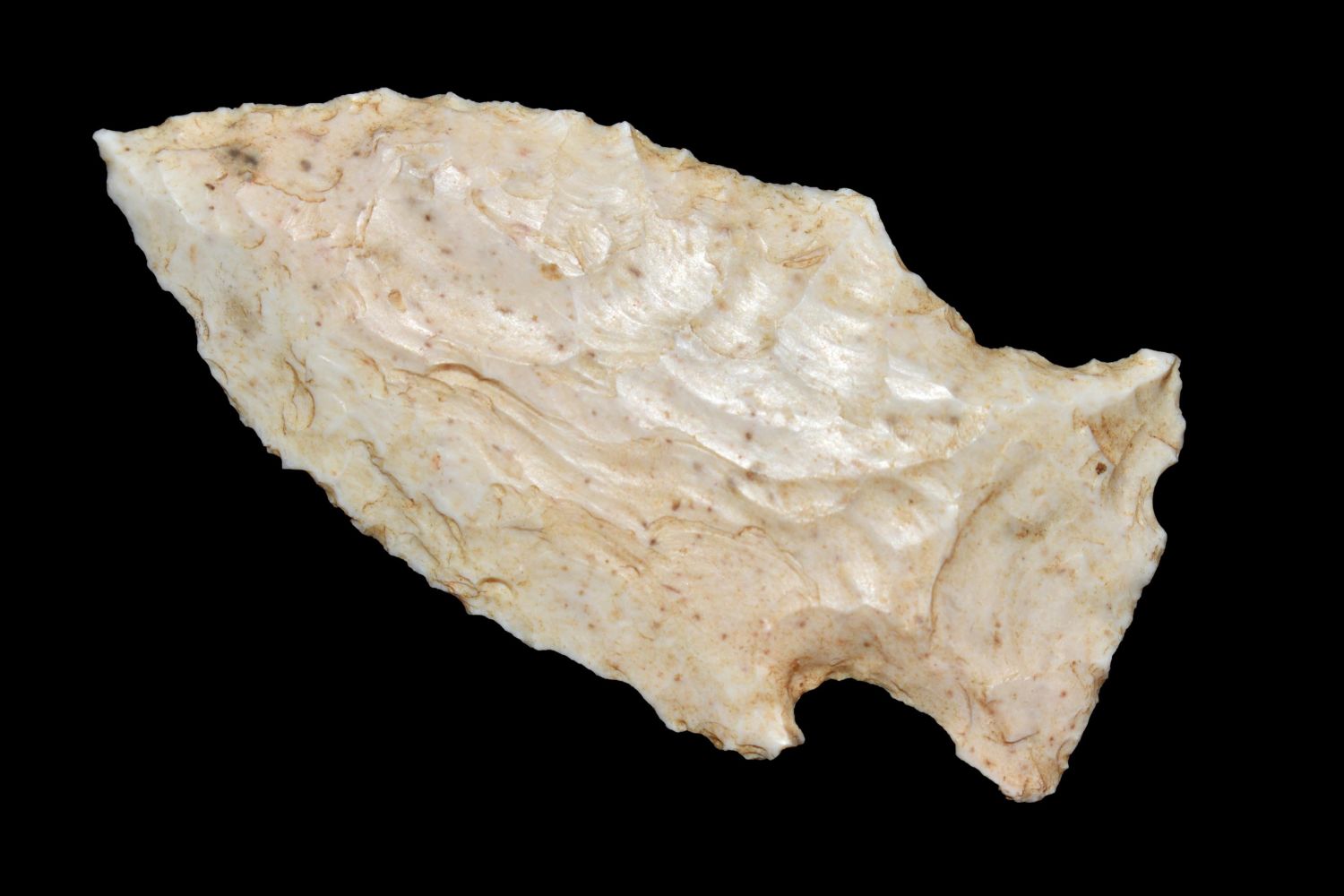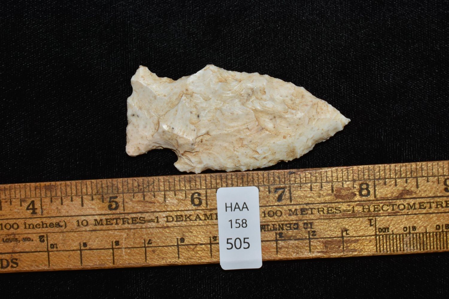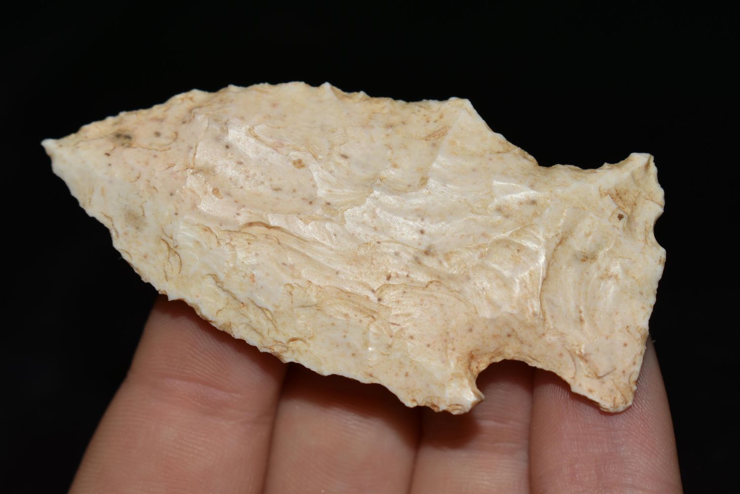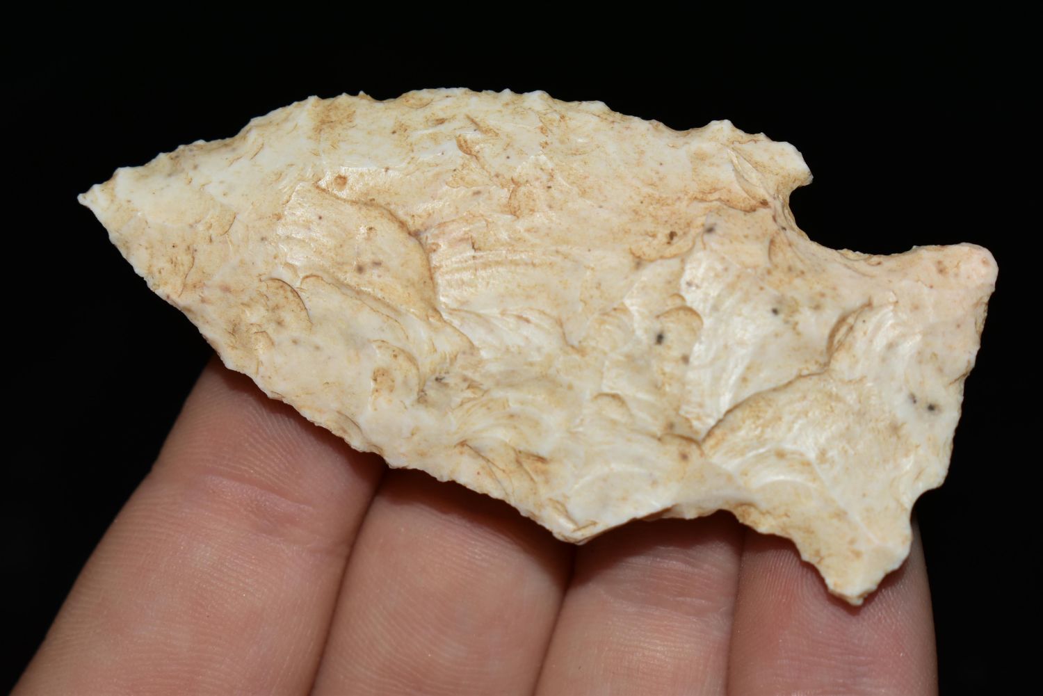 2 3/4" Woodland Point. This collection contains the personally found relics of Steve Koch, Winchester Illinois. Steve hunted relics his entire life with family and friends. He mainly hunted in the Scott Co., Illinois area, and the majority of his finds came from the Illinois River Valley.