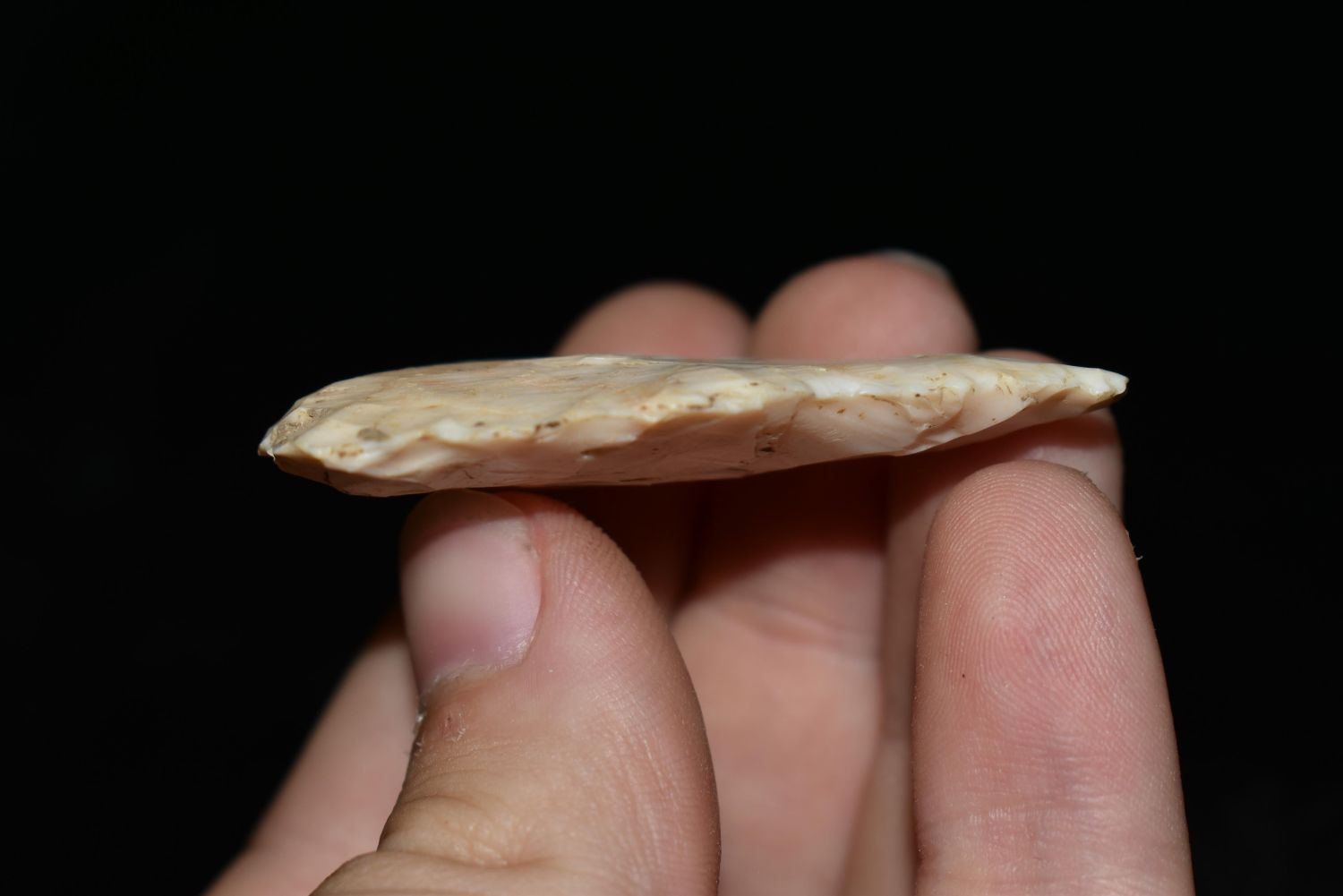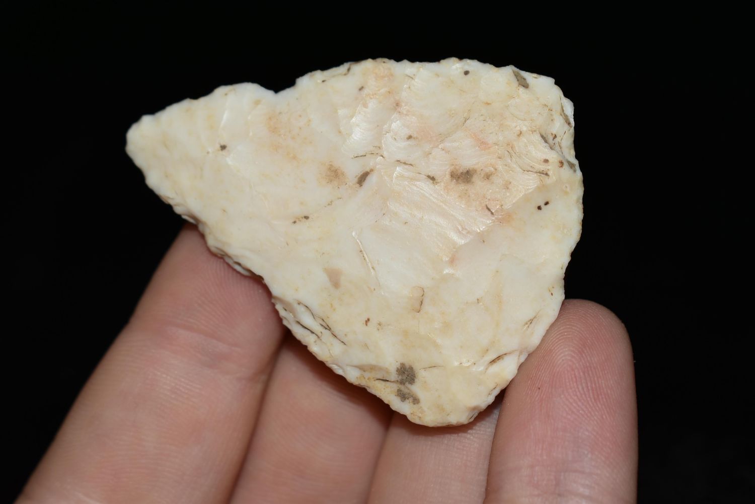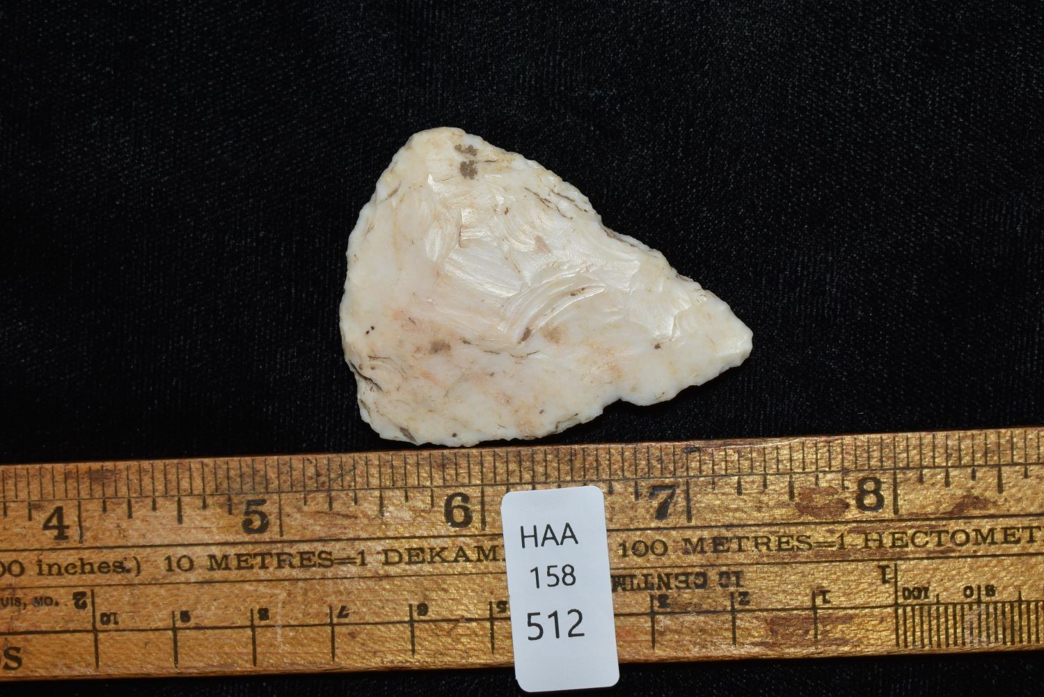 2 1/16" Cobbs Blade. This collection contains the personally found relics of Steve Koch, Winchester Illinois. Steve hunted relics his entire life with family and friends. He mainly hunted in the Scott Co., Illinois area, and the majority of his finds came from the Illinois River Valley.
