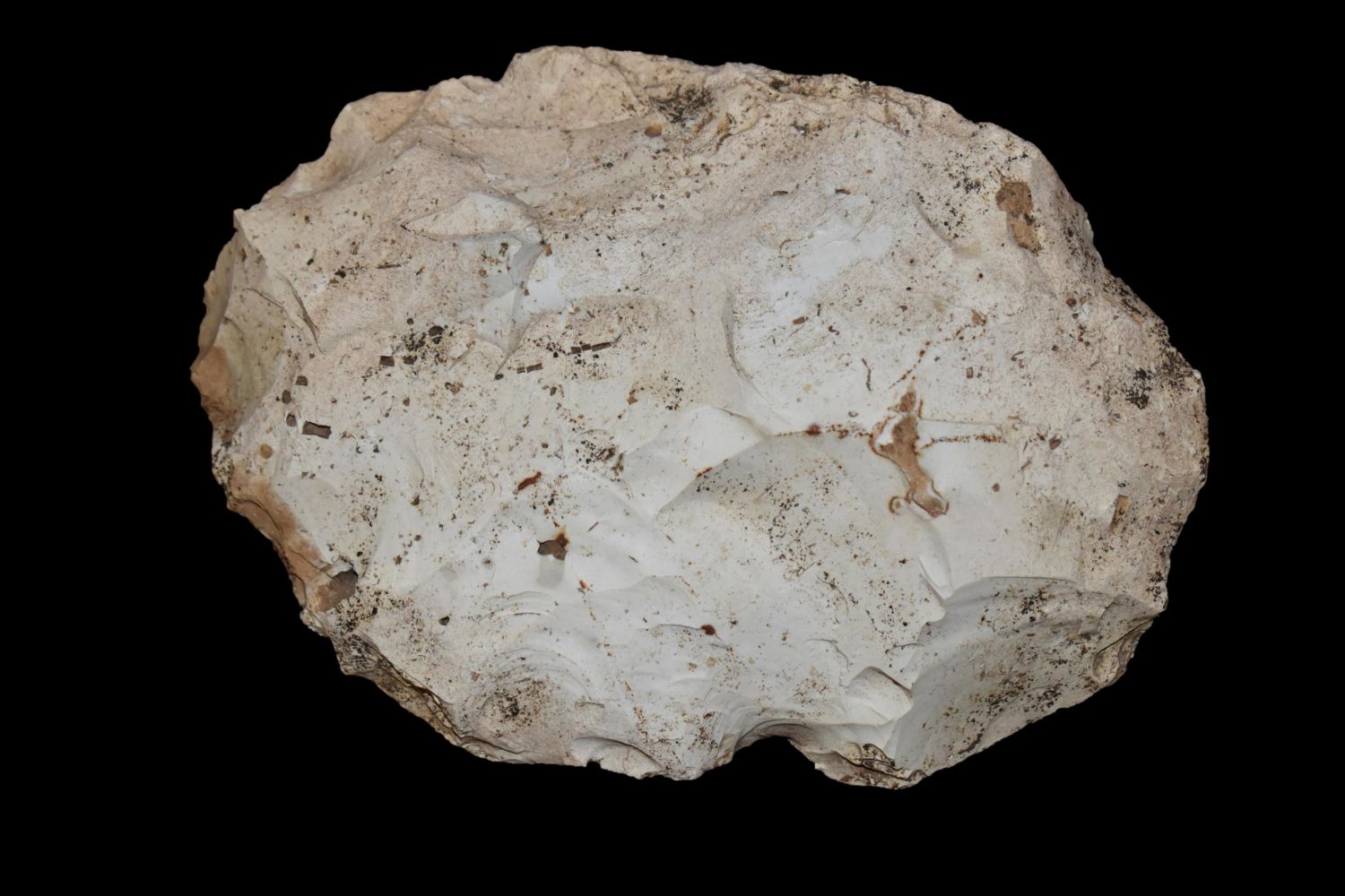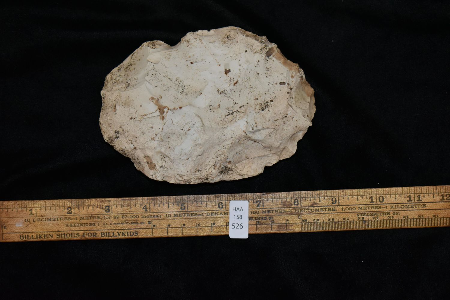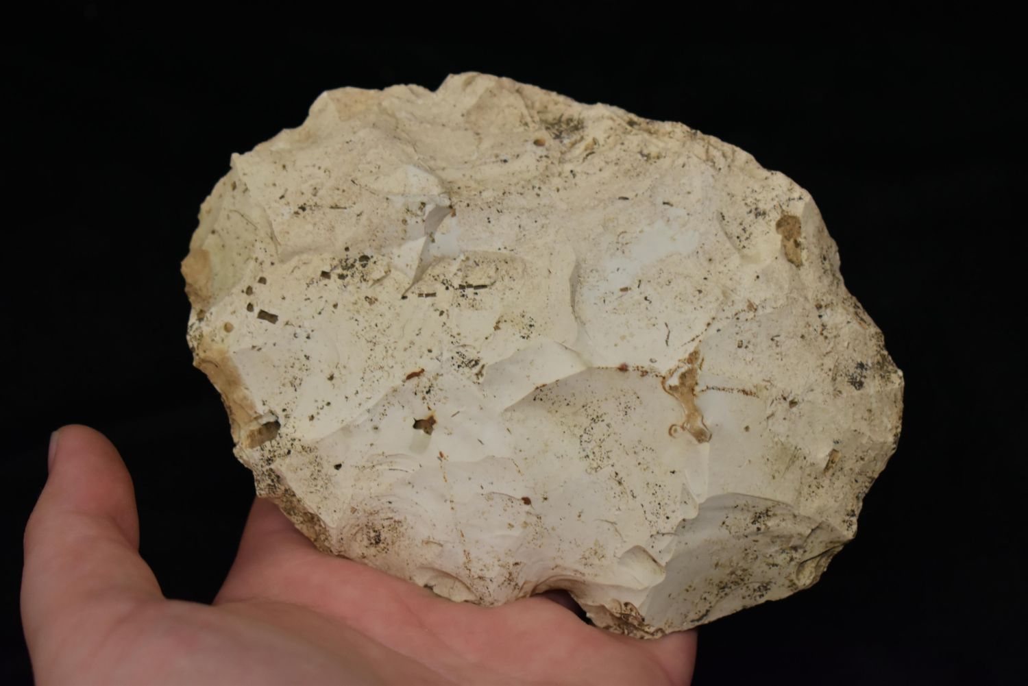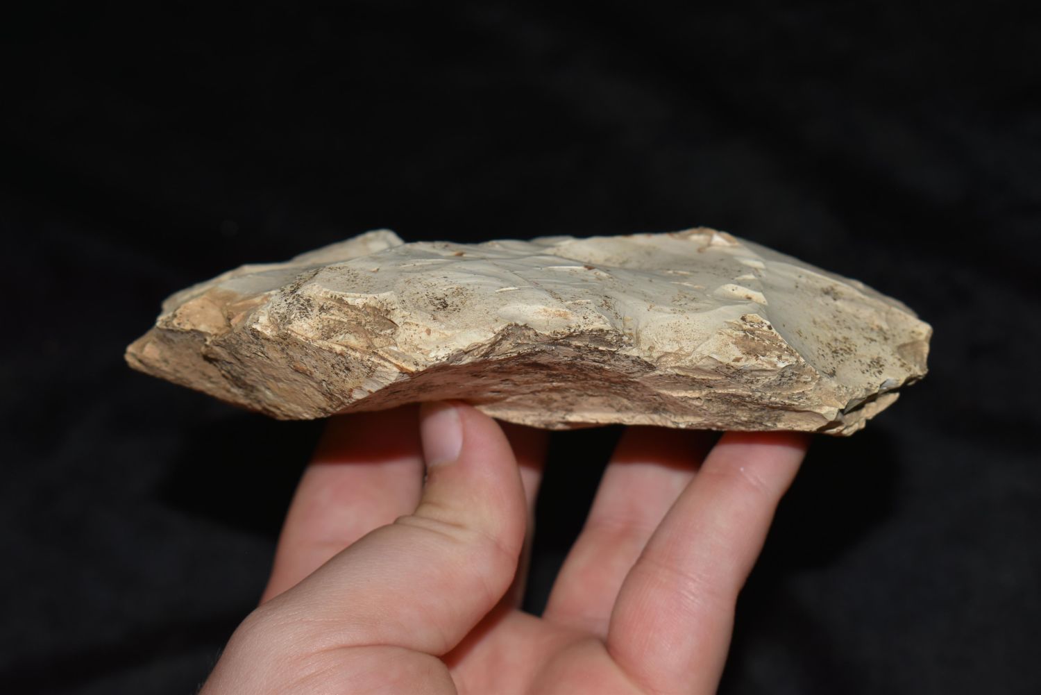 5 3/4" Clovis Platter. This collection contains the personally found relics of Steve Koch, Winchester Illinois. Steve hunted relics his entire life with family and friends. He mainly hunted in the Scott Co., Illinois area, and the majority of his finds came from the Illinois River Valley.
