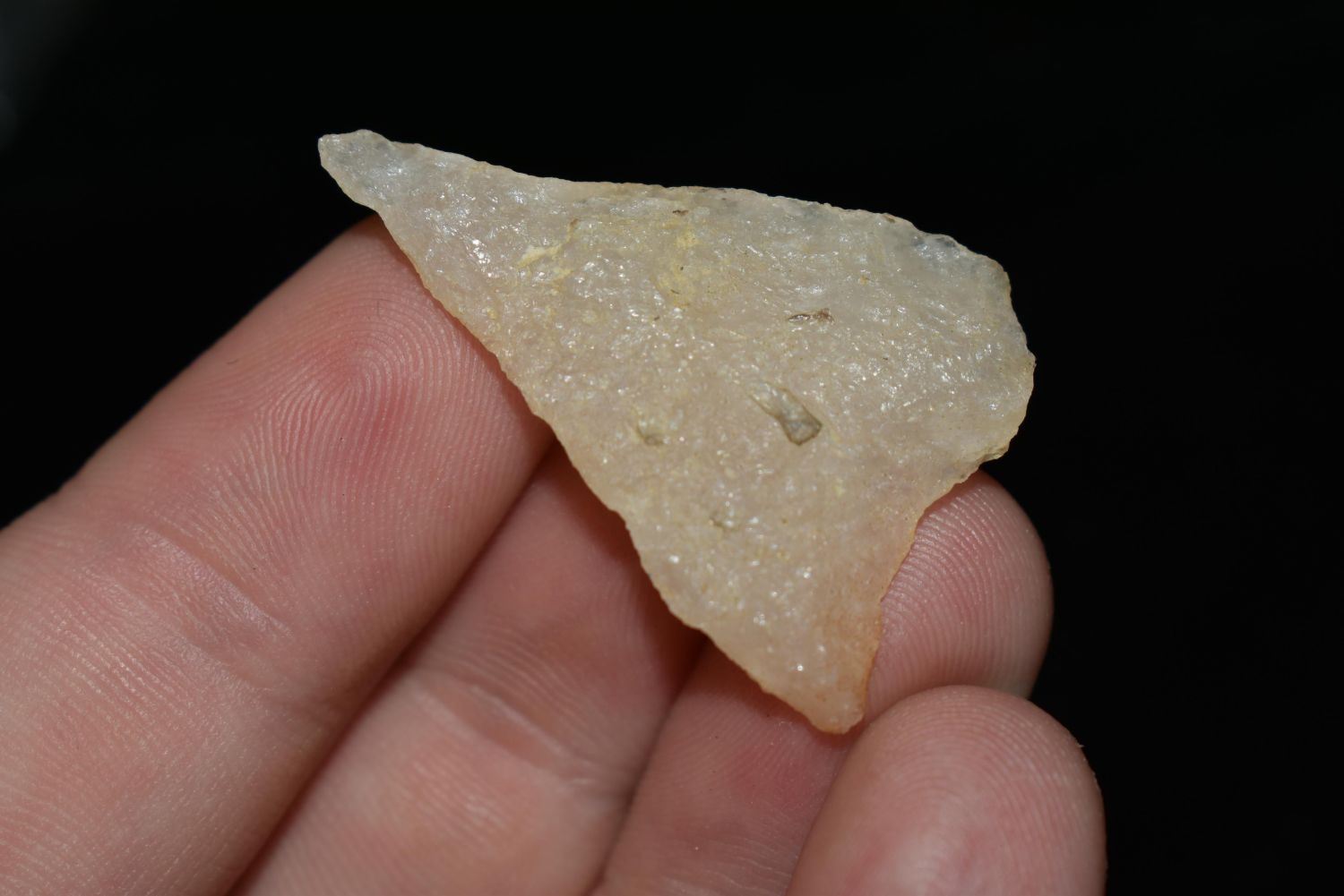 1 3/8" Quartz Triangle found in Eastern North Carolina as Highway 264 was being constructed.