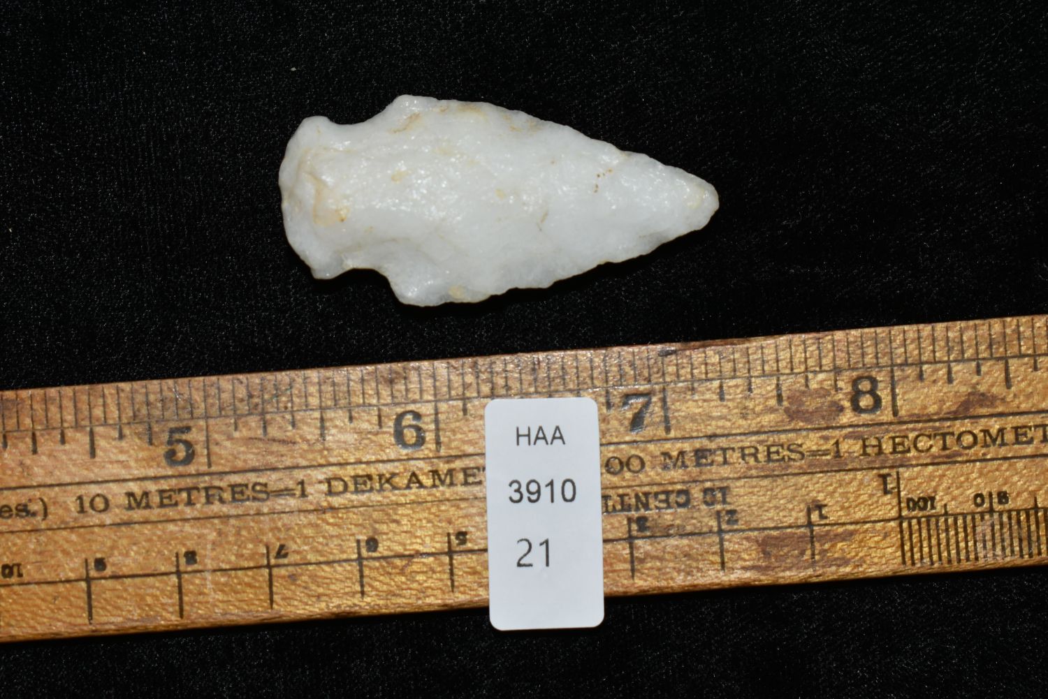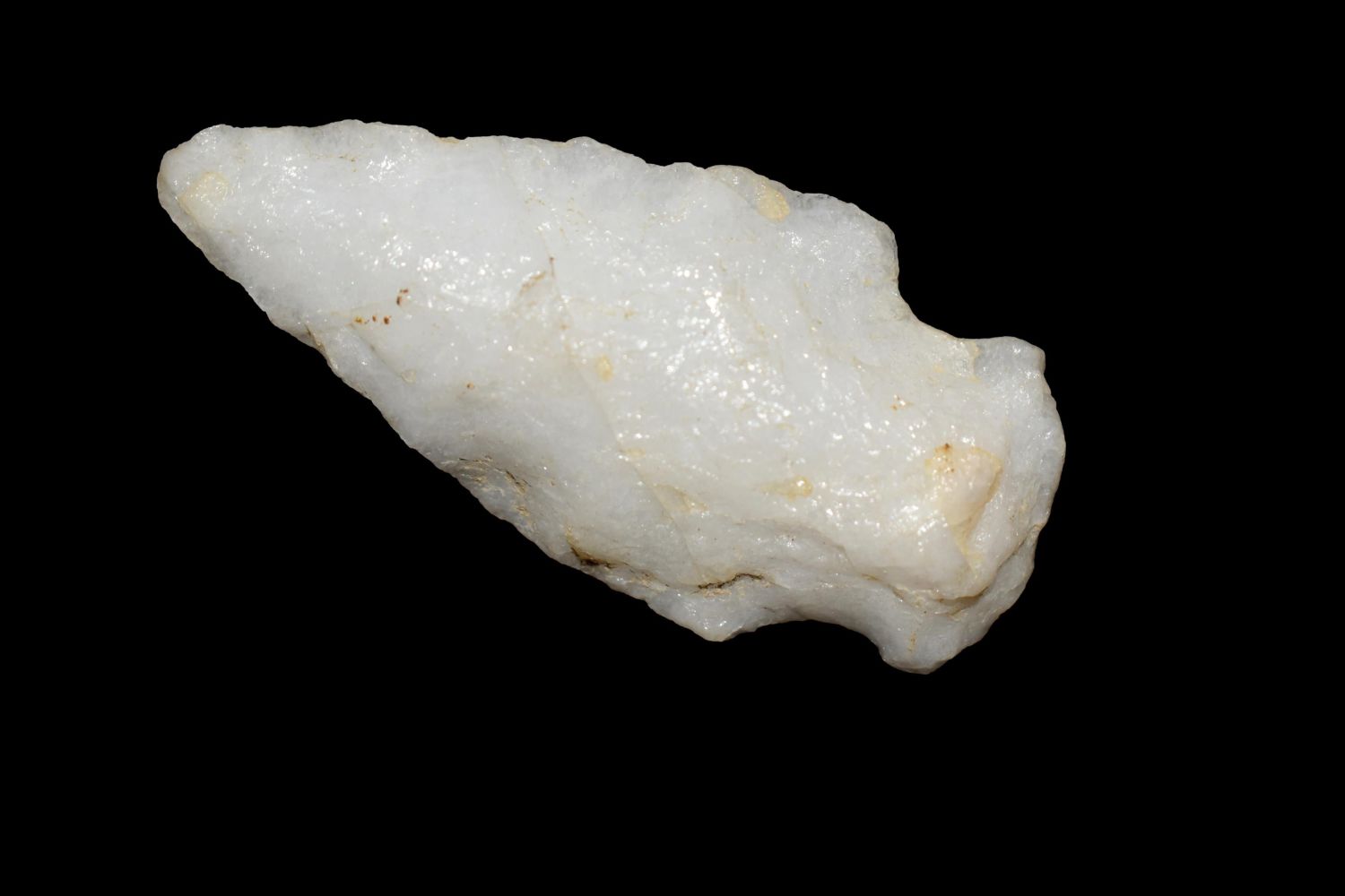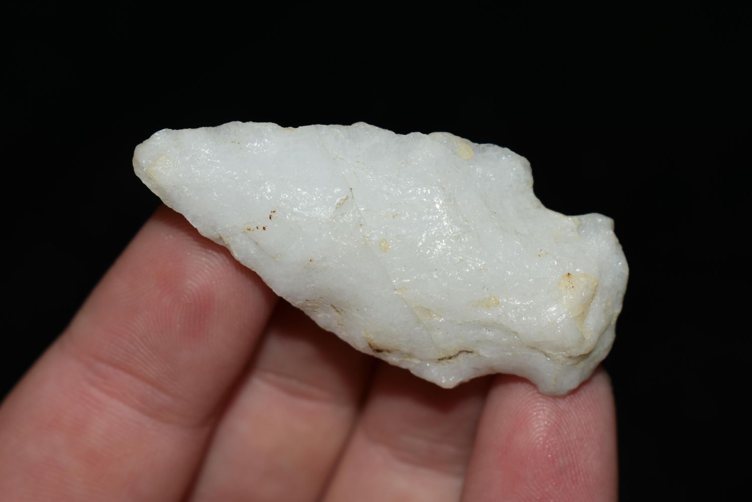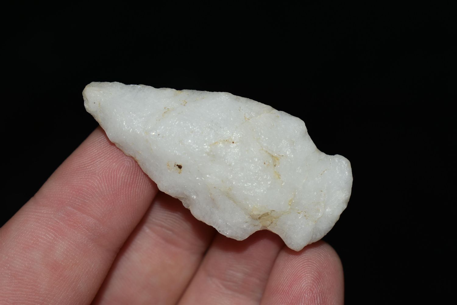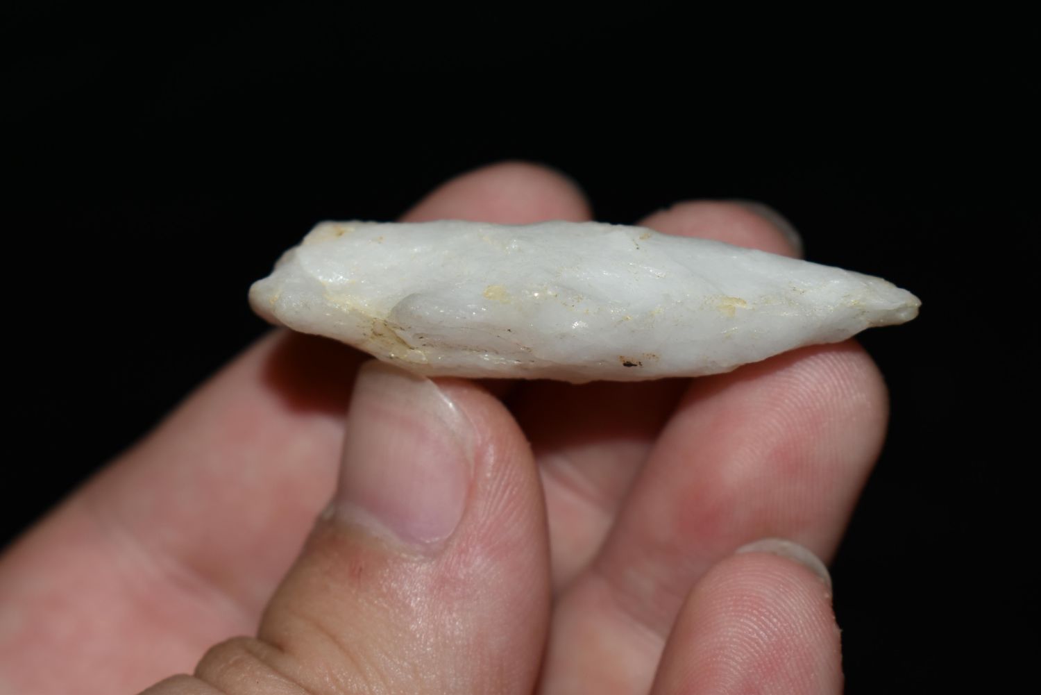1 7/8" Quartz Stemmed Point found in Eastern North Carolina as Highway 264 was being constructed.