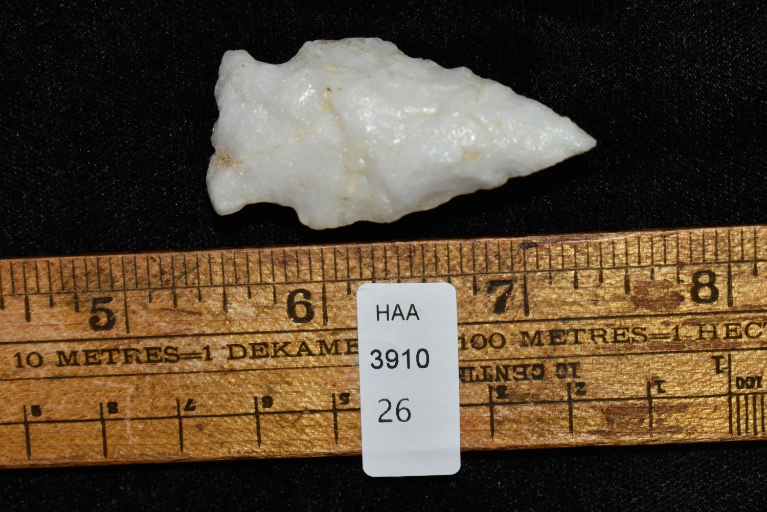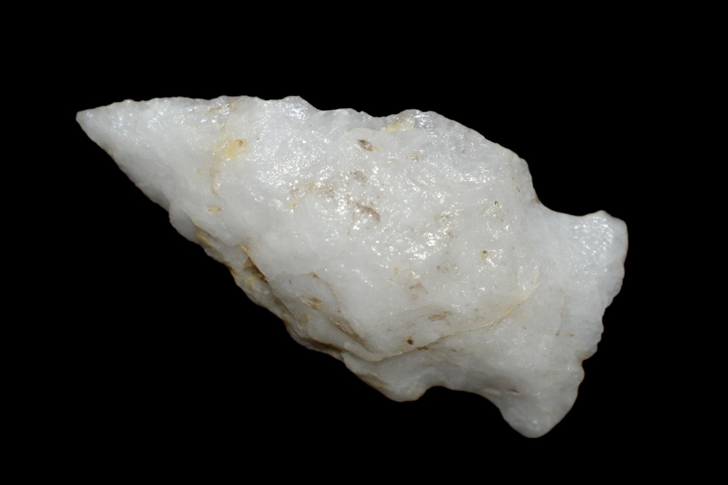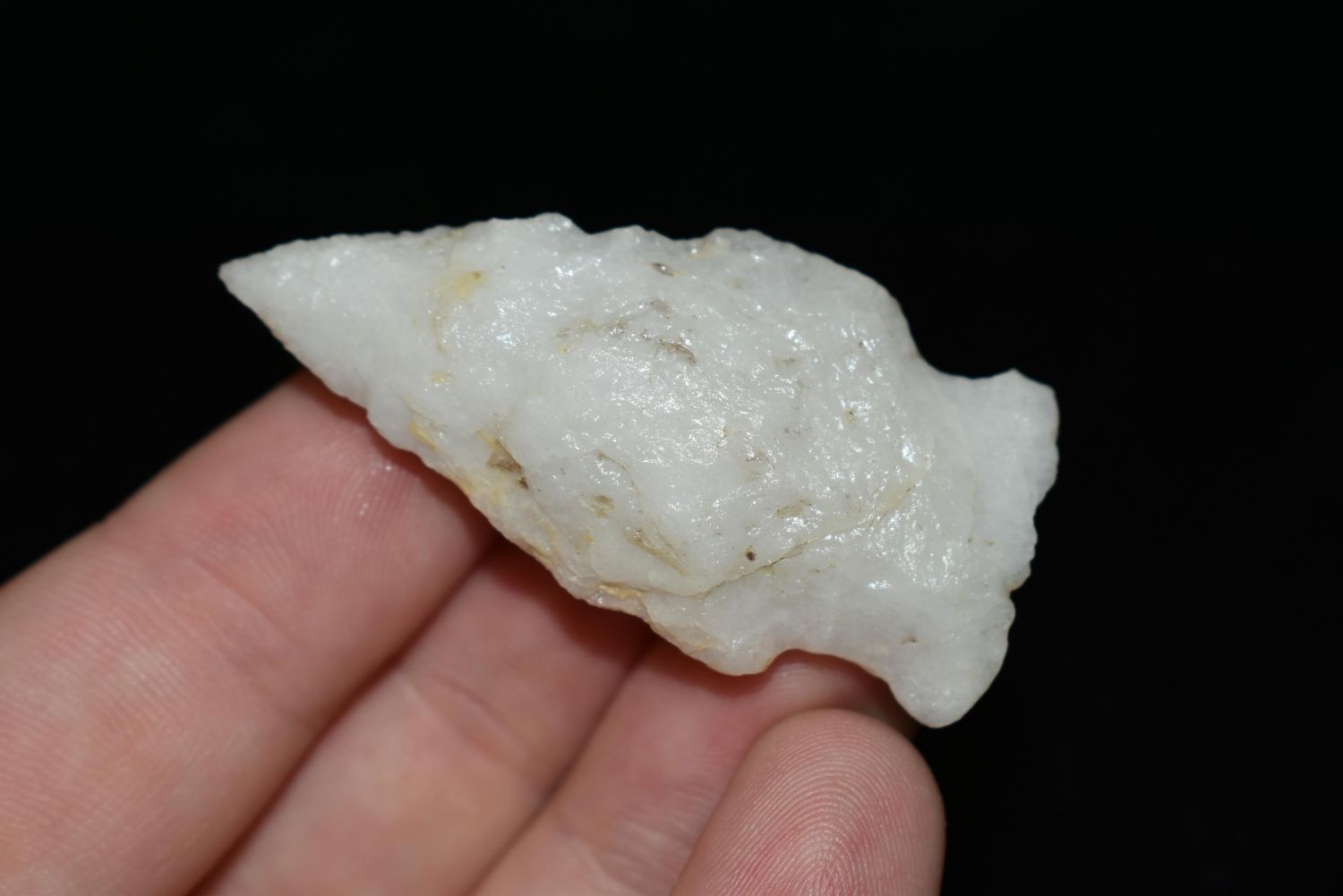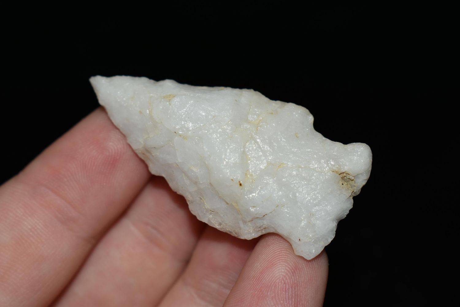 1 7/8" Quartz Stemmed Point found in Eastern North Carolina as Highway 264 was being constructed.