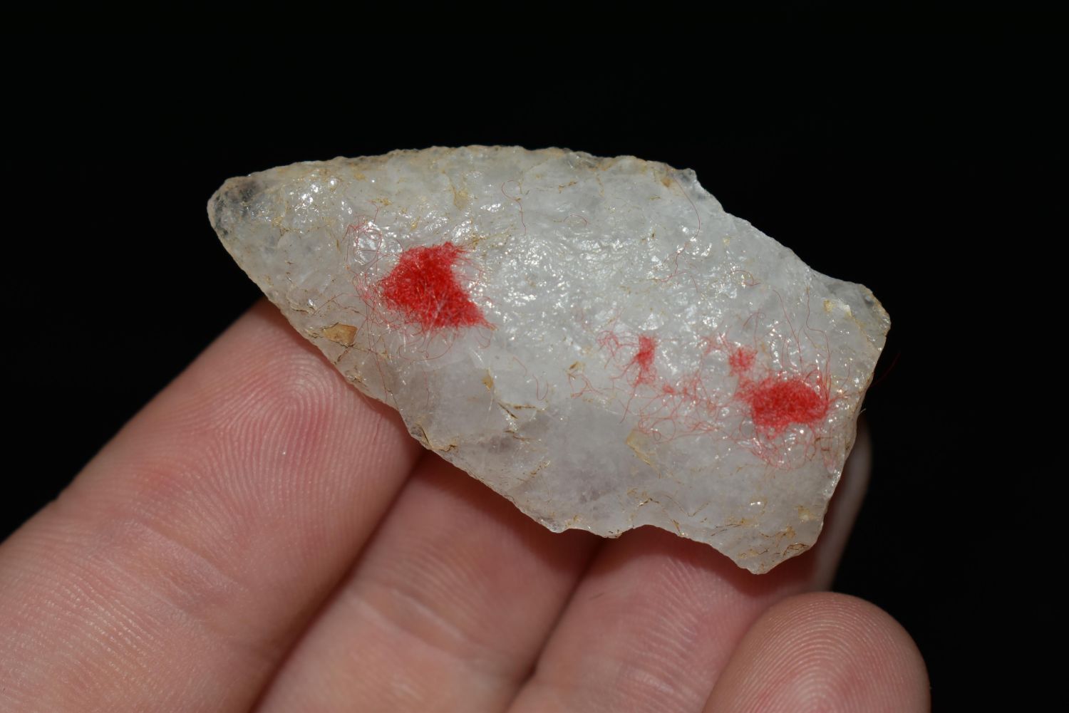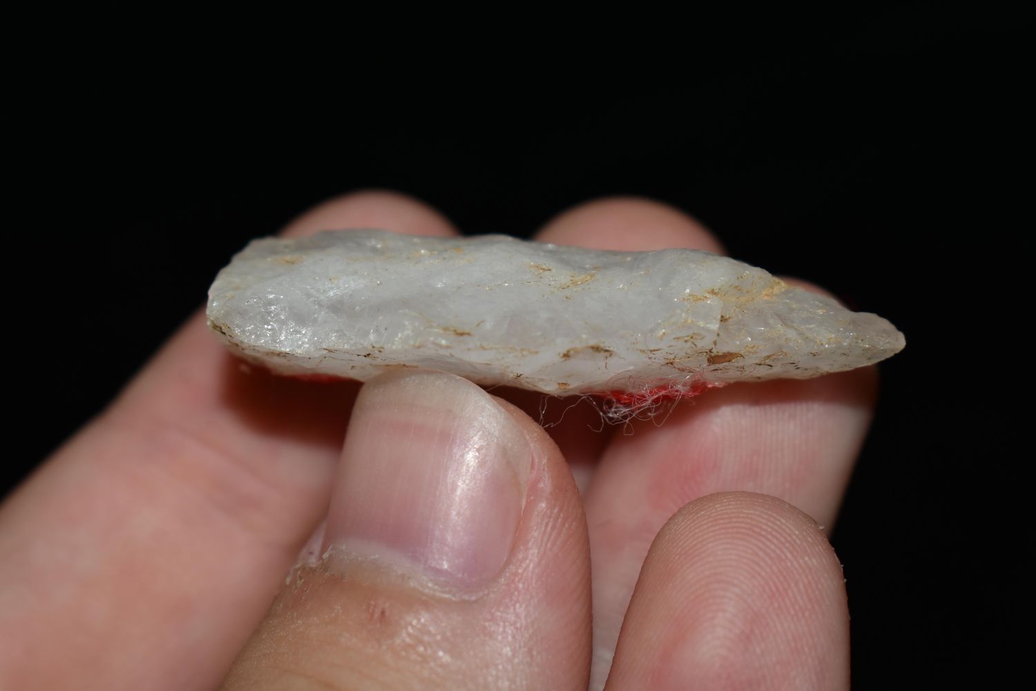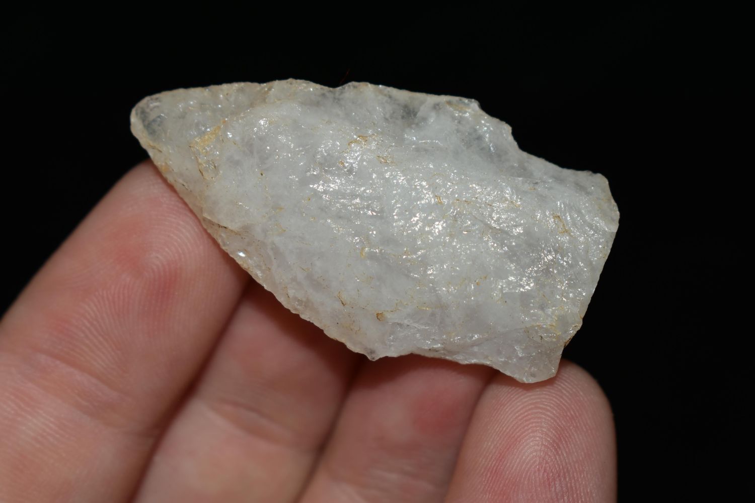 1 5/8" Quartz Stemmed Point found in Eastern North Carolina as Highway 264 was being constructed.