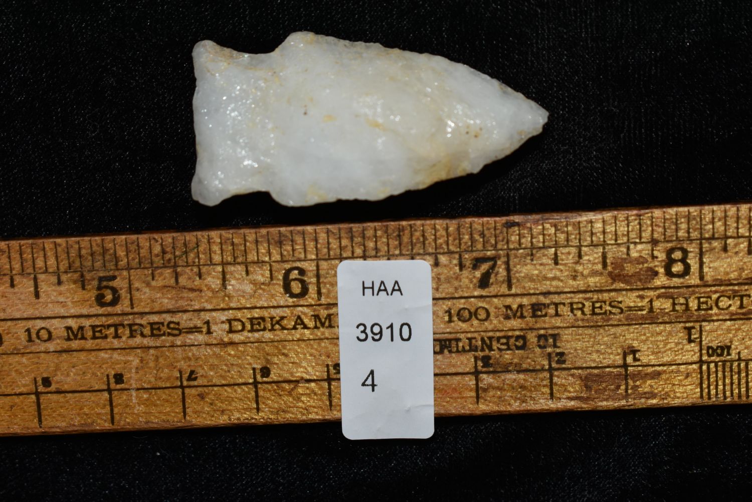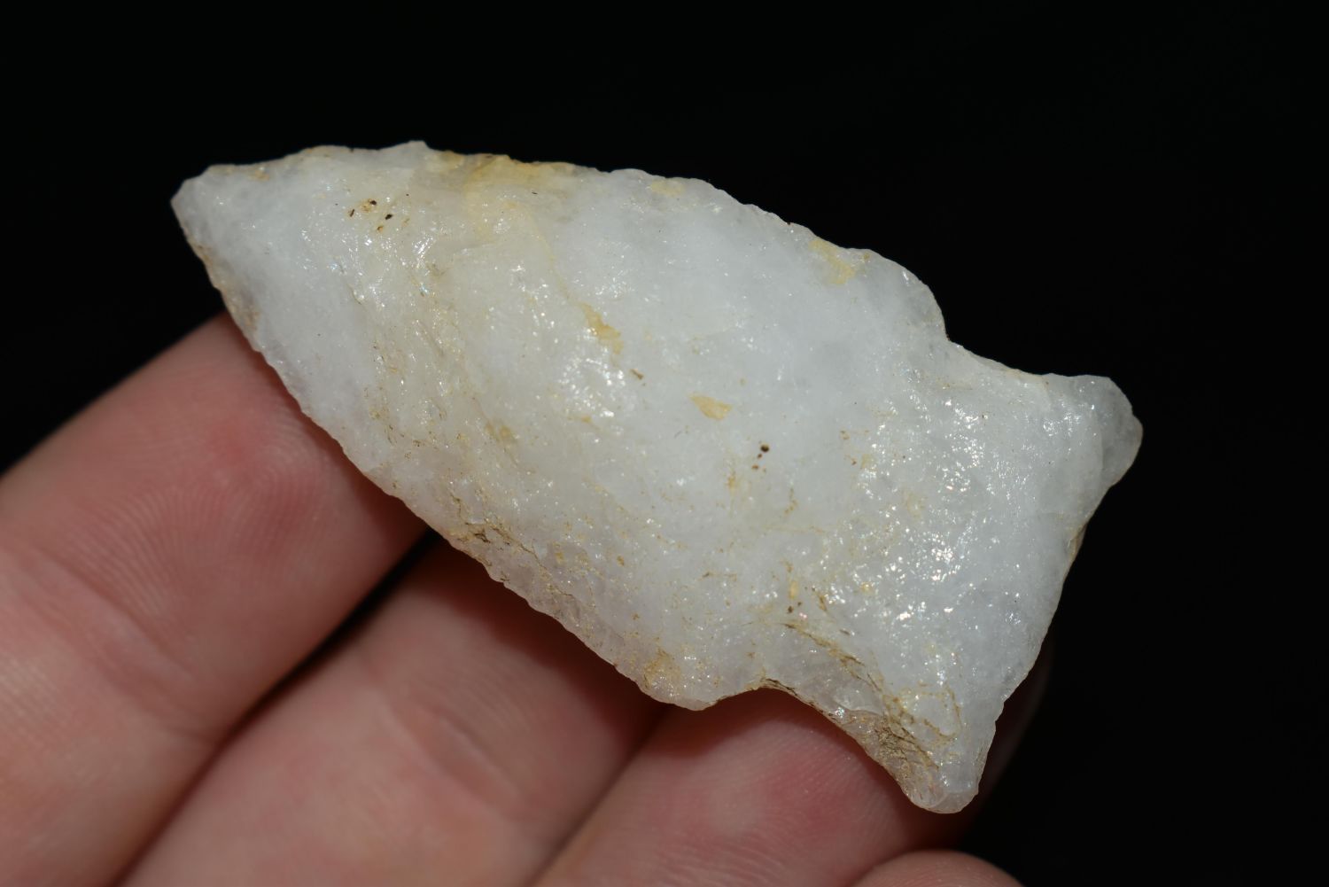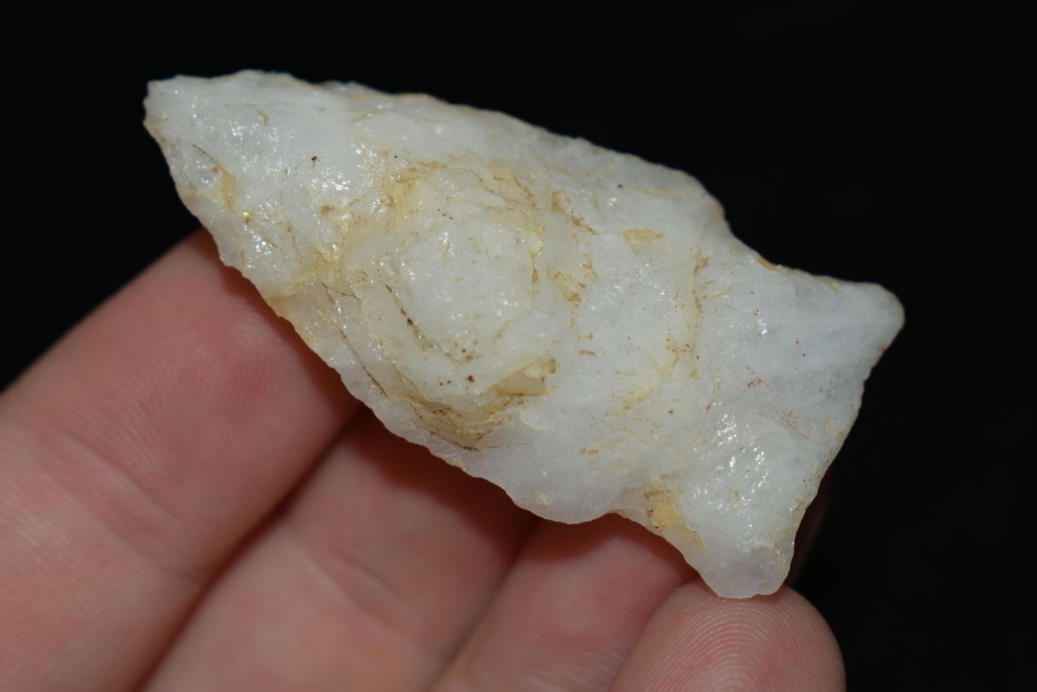 1 7/8" Quartz Stemmed Point found in Eastern North Carolina as Highway 264 was being constructed.