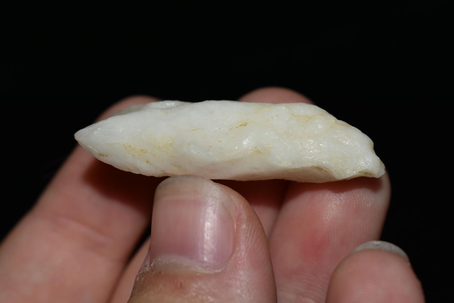 1 5/8" Quartz Corner Notch found in Eastern North Carolina as Highway 264 was being constructed.