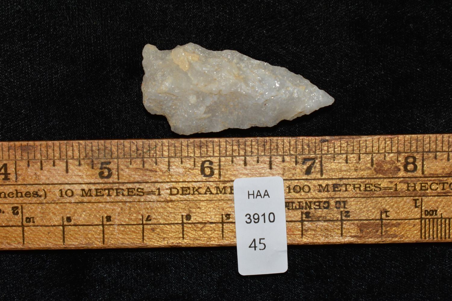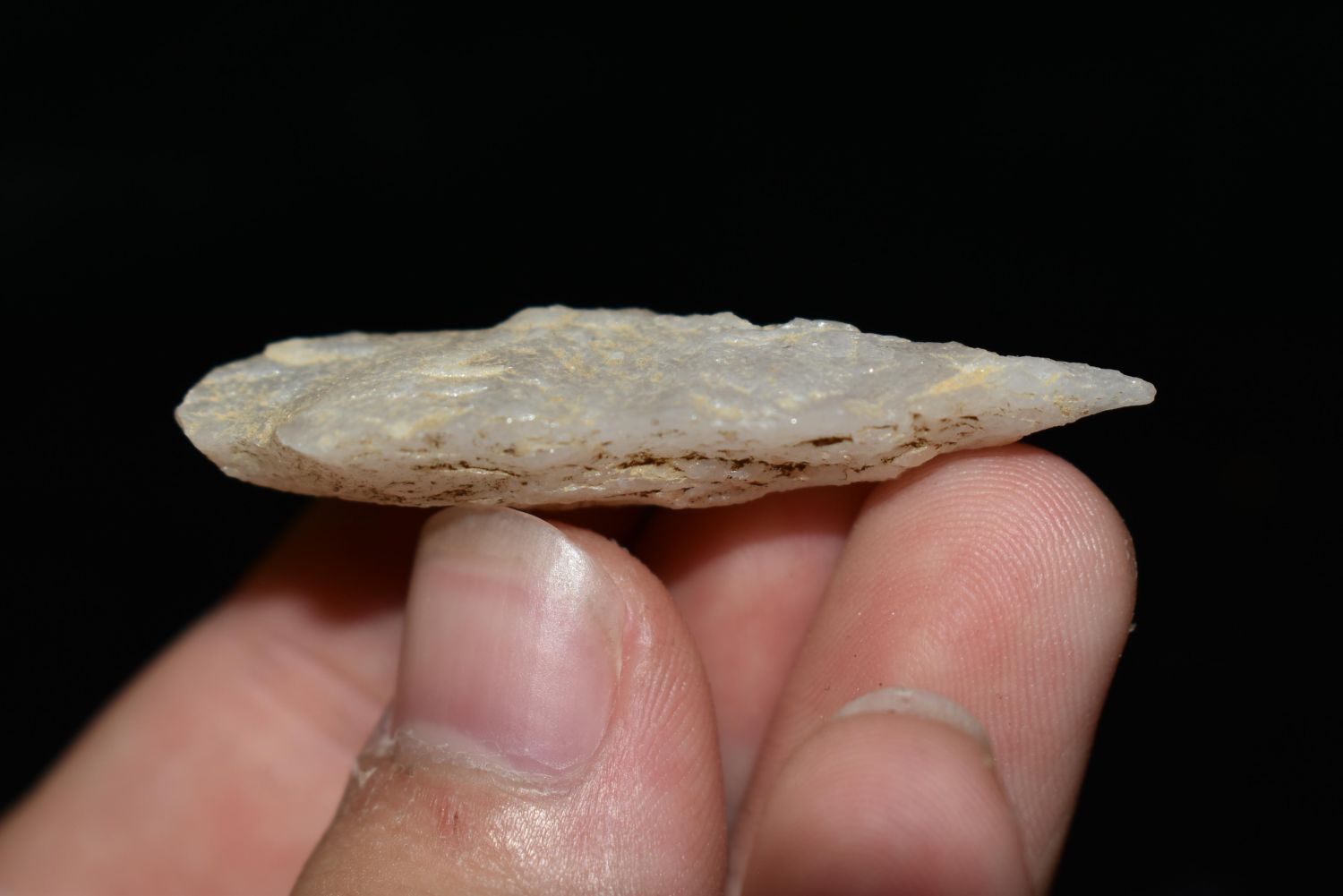 1 7/8" Quartz Corner Notch found in Eastern North Carolina as Highway 264 was being constructed.