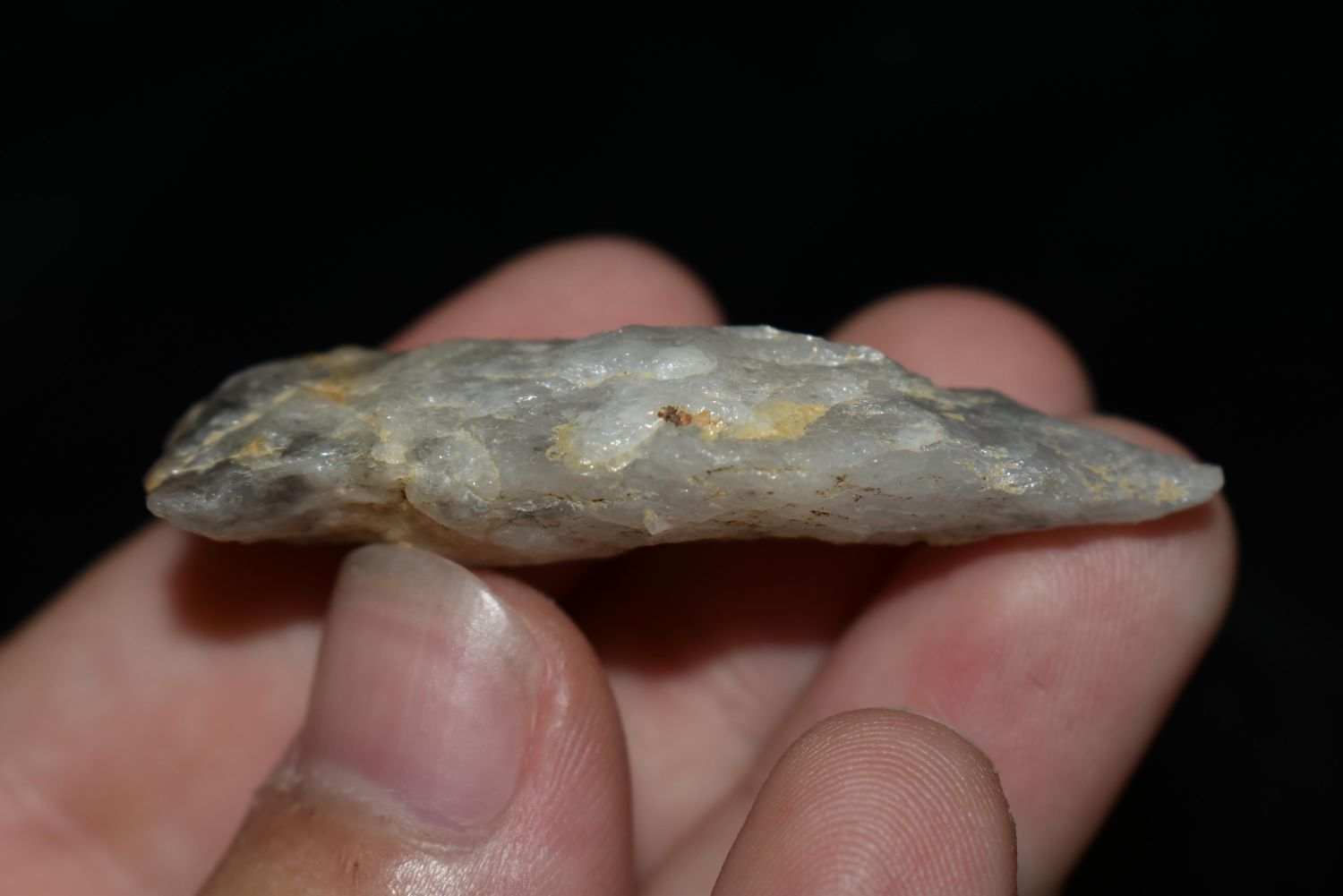 2 1/8" Quartz Stemmed Point found in Eastern North Carolina as Highway 264 was being constructed.