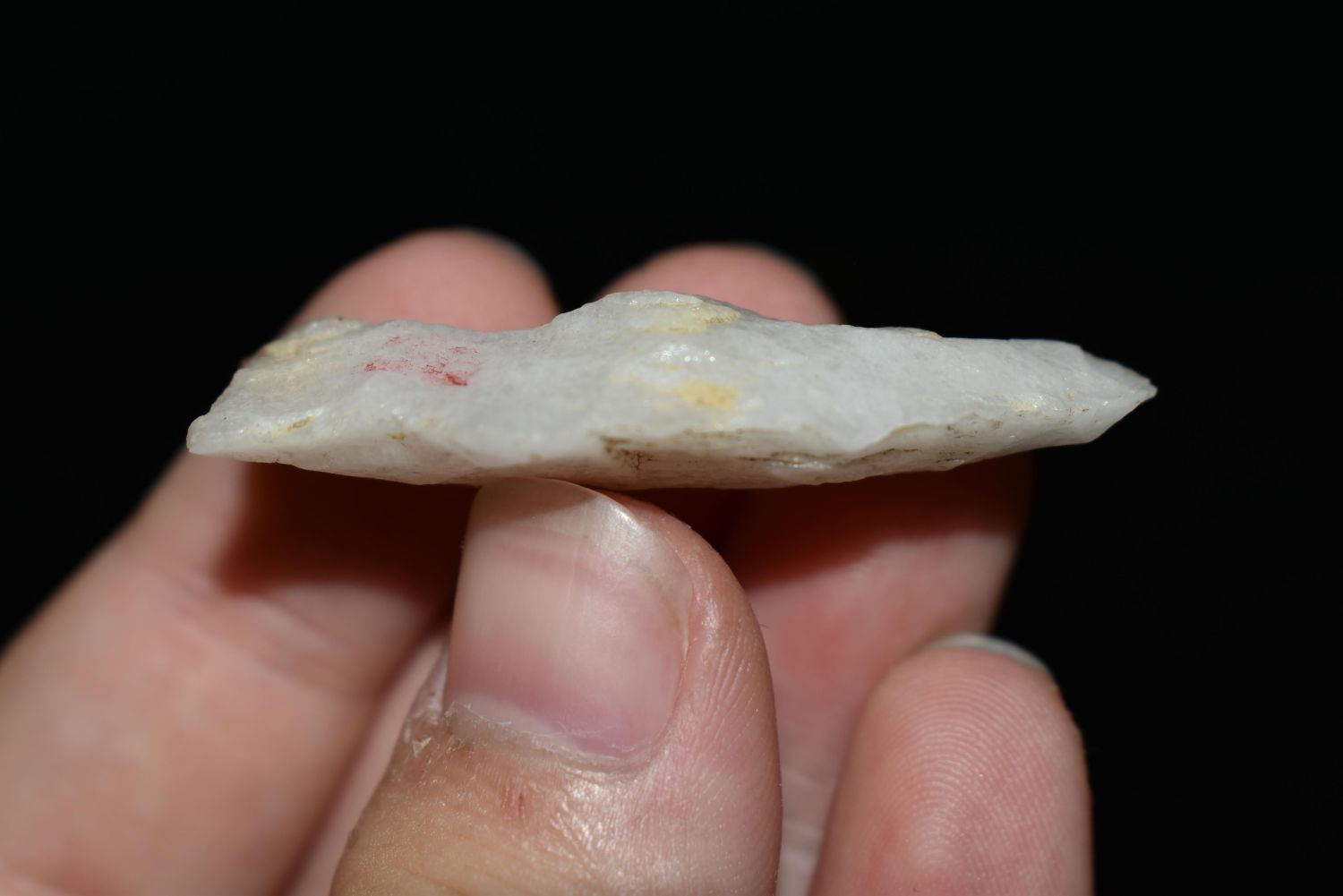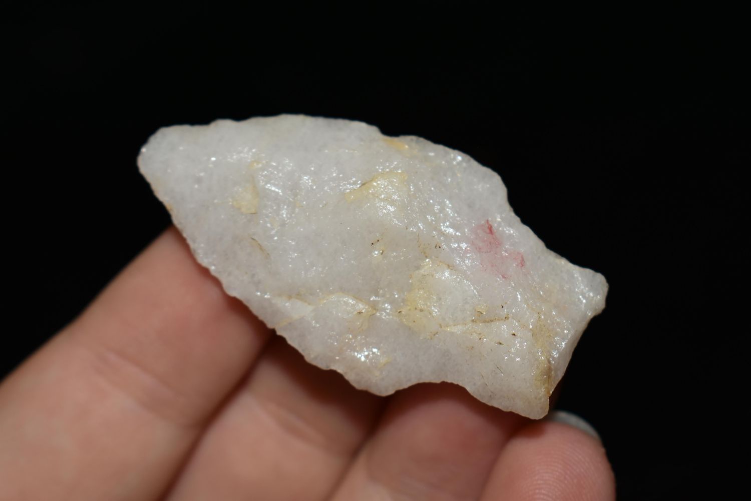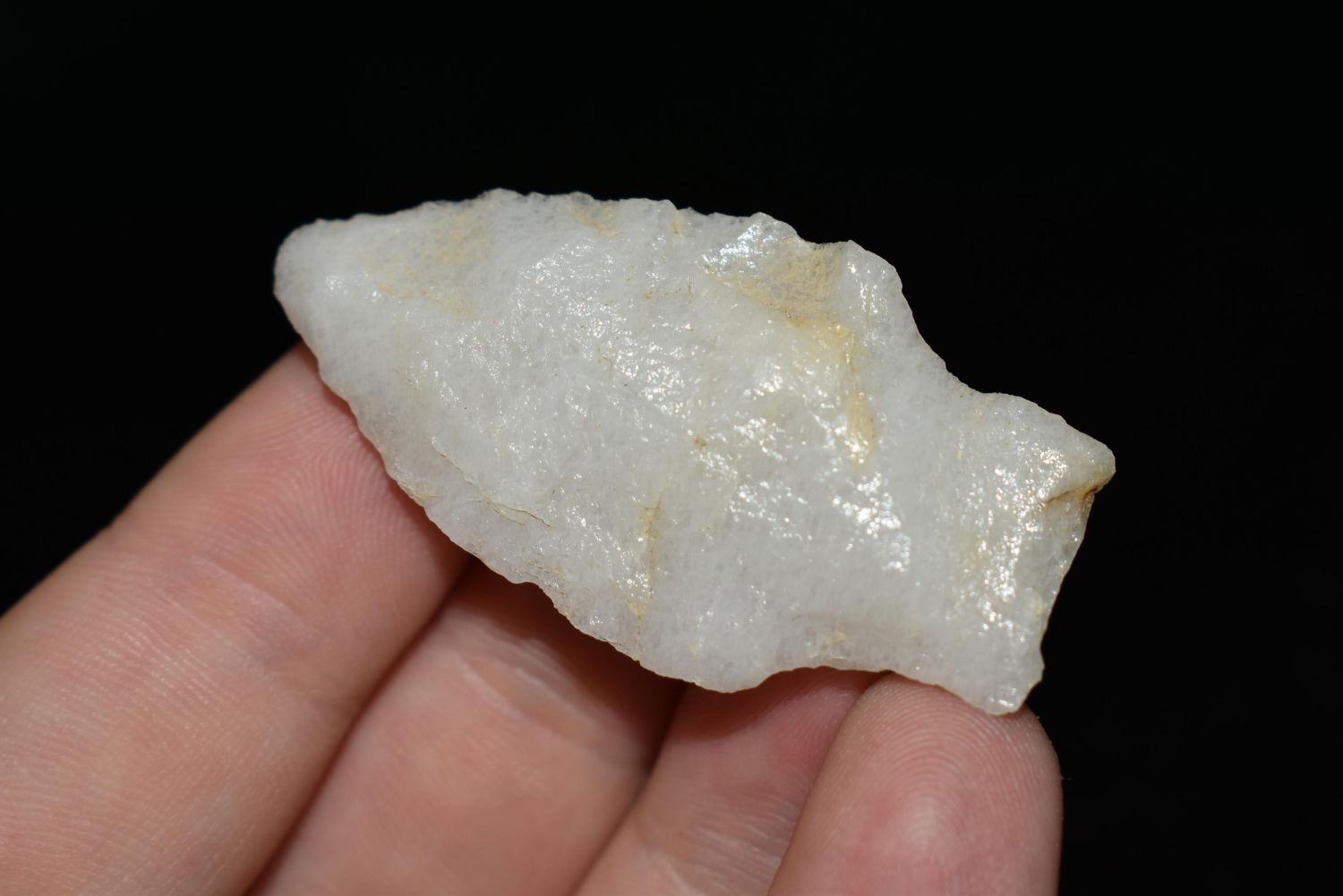 1 7/8" Quartz Stemmed Point found in Eastern North Carolina as Highway 264 was being constructed.