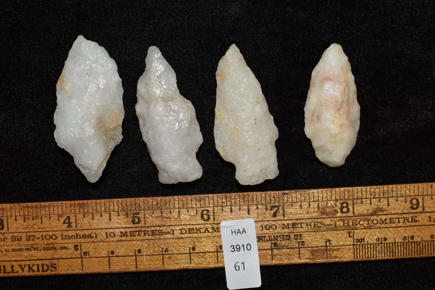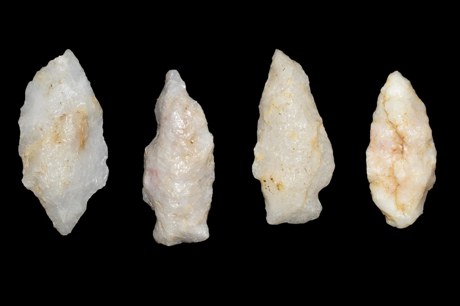 Lot of 4 Quartz Arrowheads found in Eastern North Carolina as Highway 264 was being constructed.