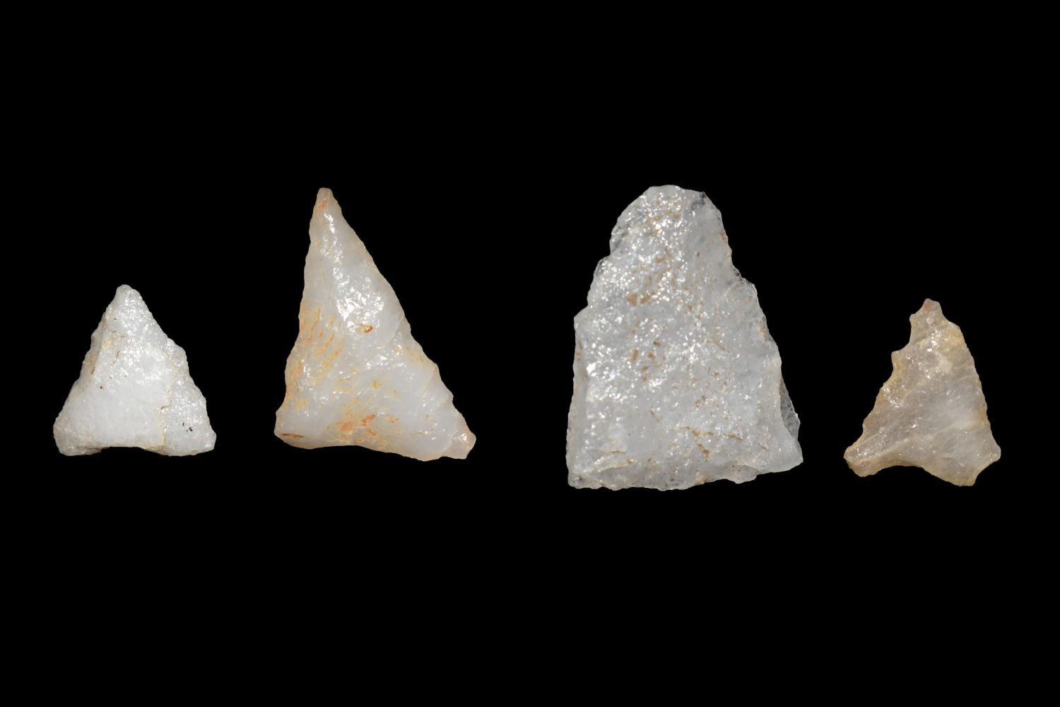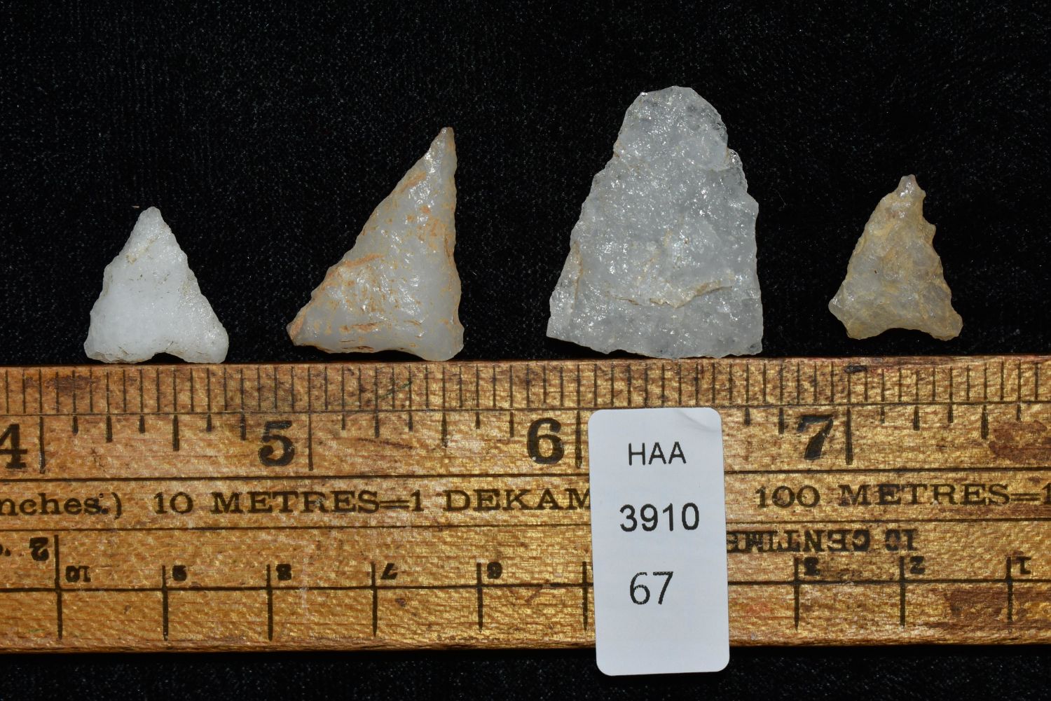 Lot of 4 Quartz Triangles found in Eastern North Carolina as Highway 264 was being constructed.